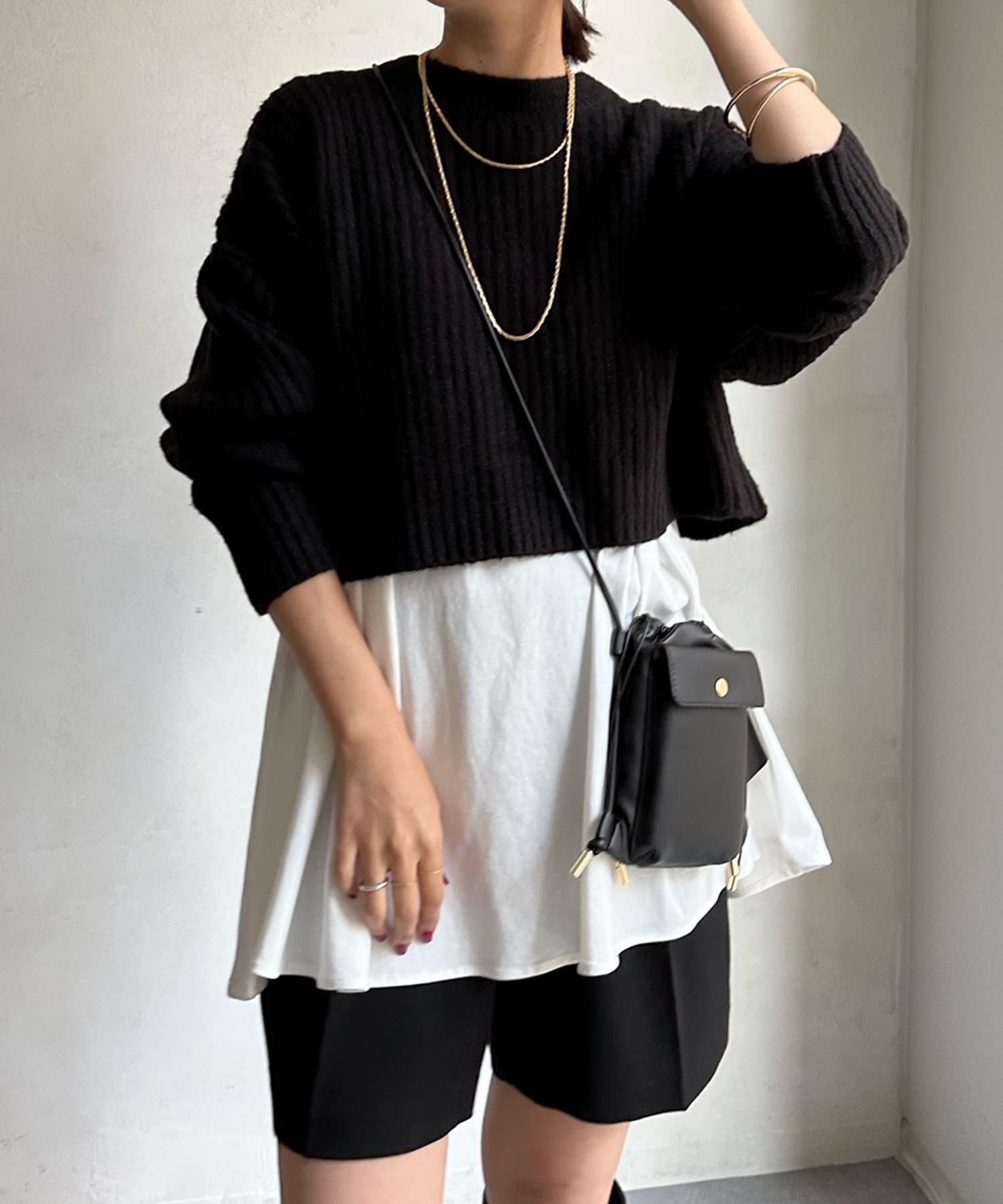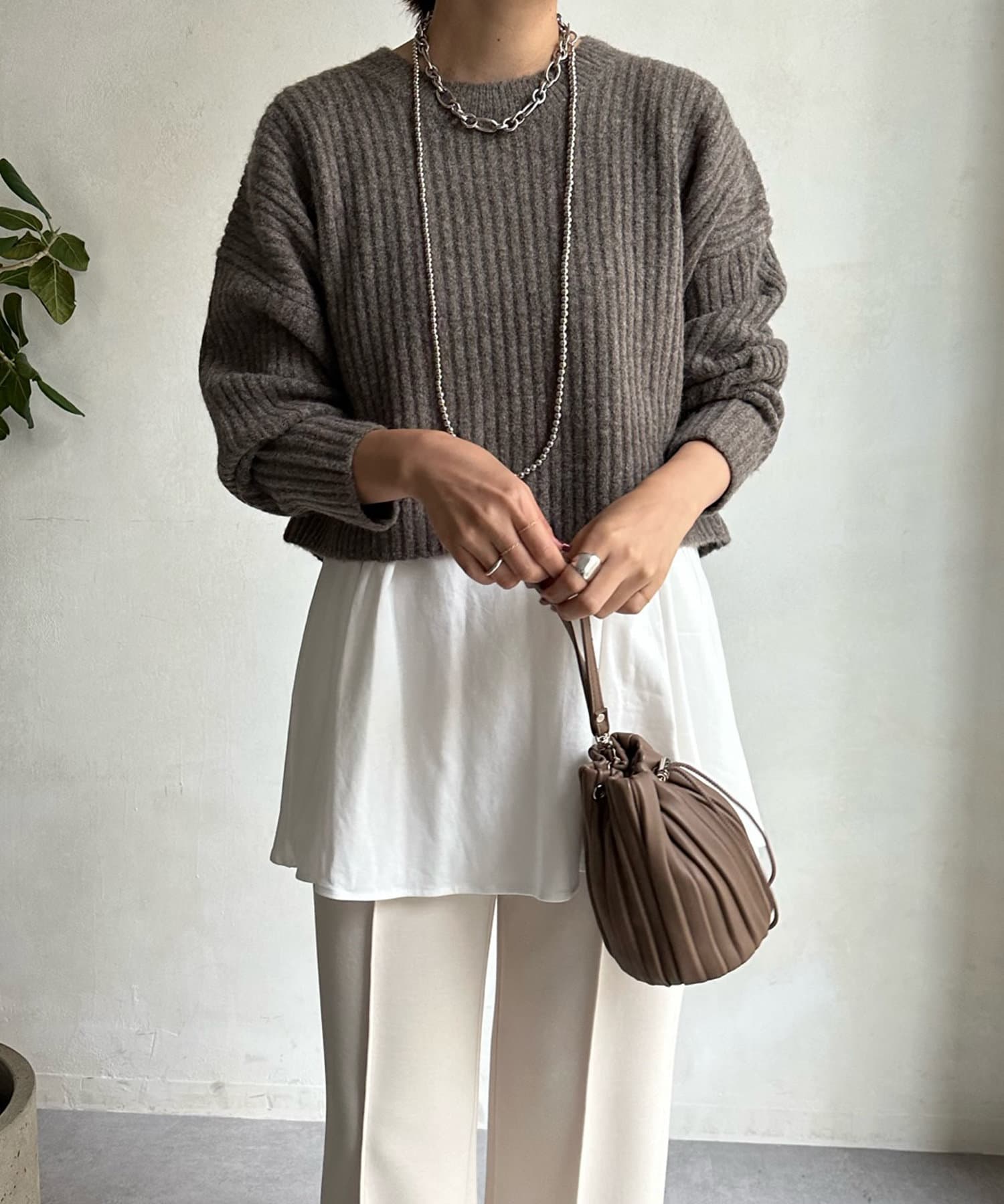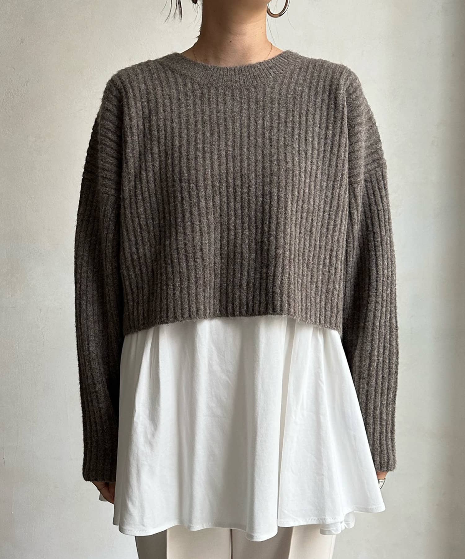 TOP > DOUDOU > レディース > トップス > ニット/セーター > ヤクショート丈プルオーバー+インナーセット