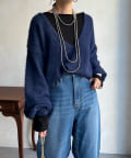 ゆるっと着られるサイジングながらも、お顔周りをすっきりと見せてくれる深Vネックがトレンドライクな印象に。カットソーなどをレイヤードして着られるので、着こなしの幅がぐっと広がります。