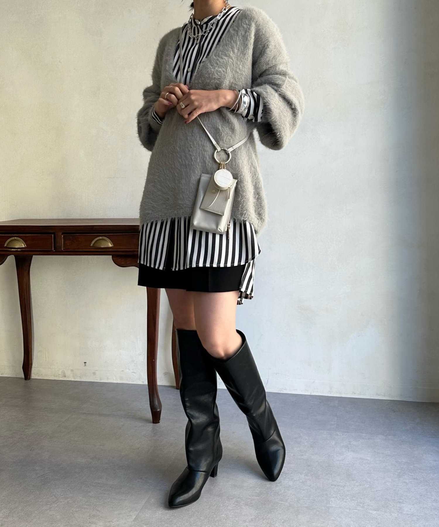 また、長すぎない着丈で、合わせるボトムも選ばずに着回していただけますよ。
