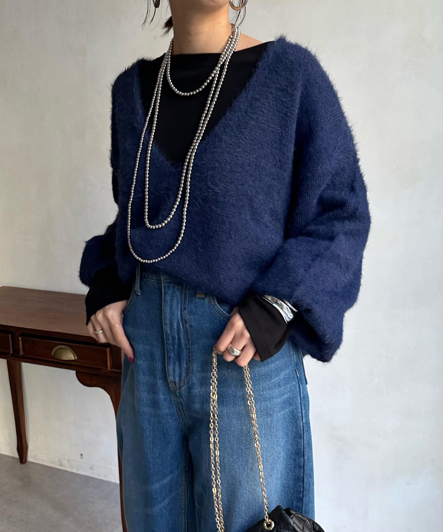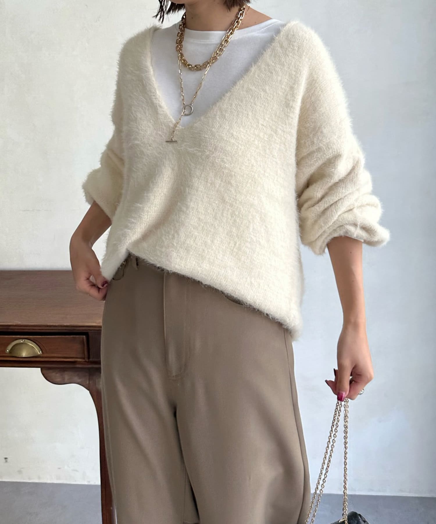 【DouDou】シャギー深Vプルオーバー