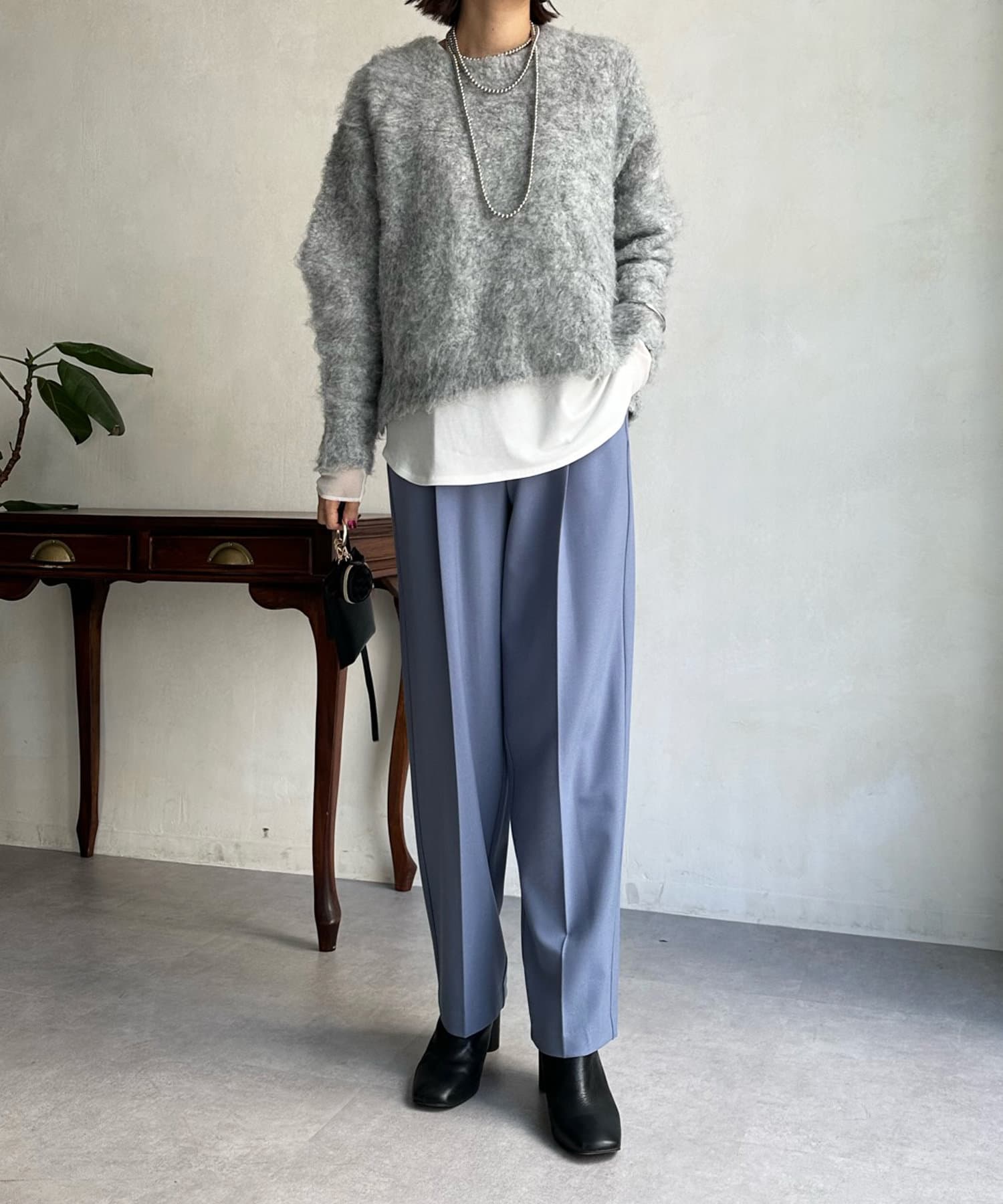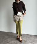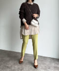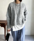 表情豊かなメランジニットのカラーリングがポイントになってくれるので、きれいめなボトムと合わせてもシンプルになり過ぎず、簡単に秋冬のムードを取り入れていただけます。