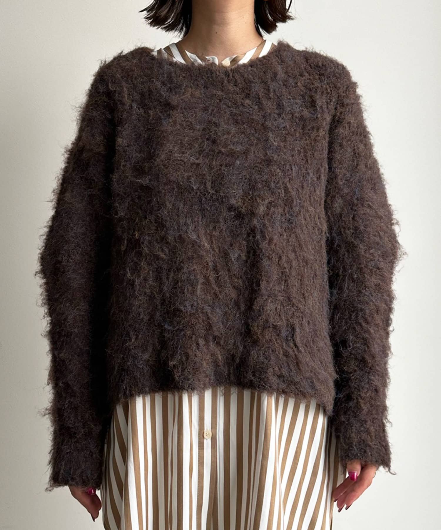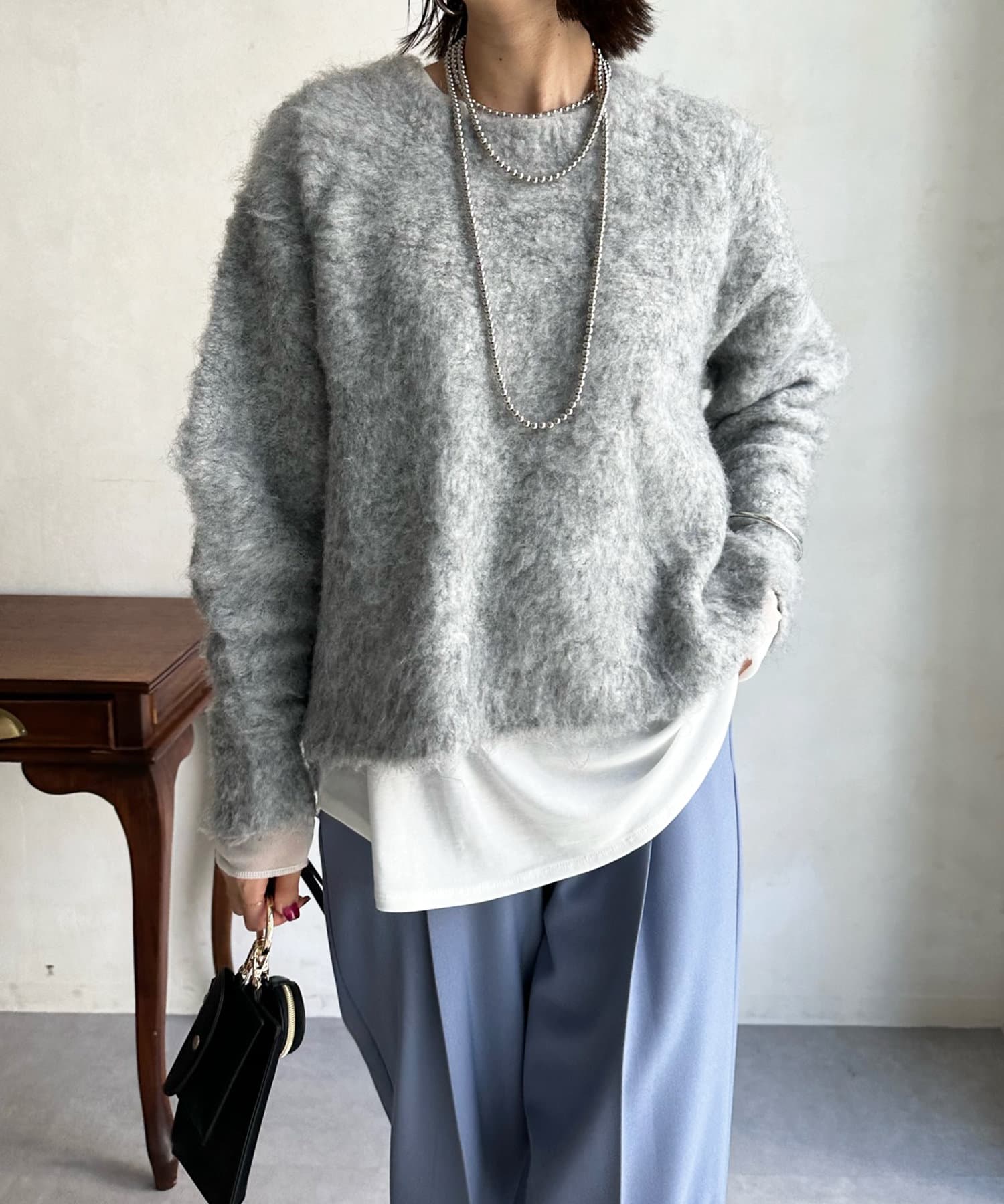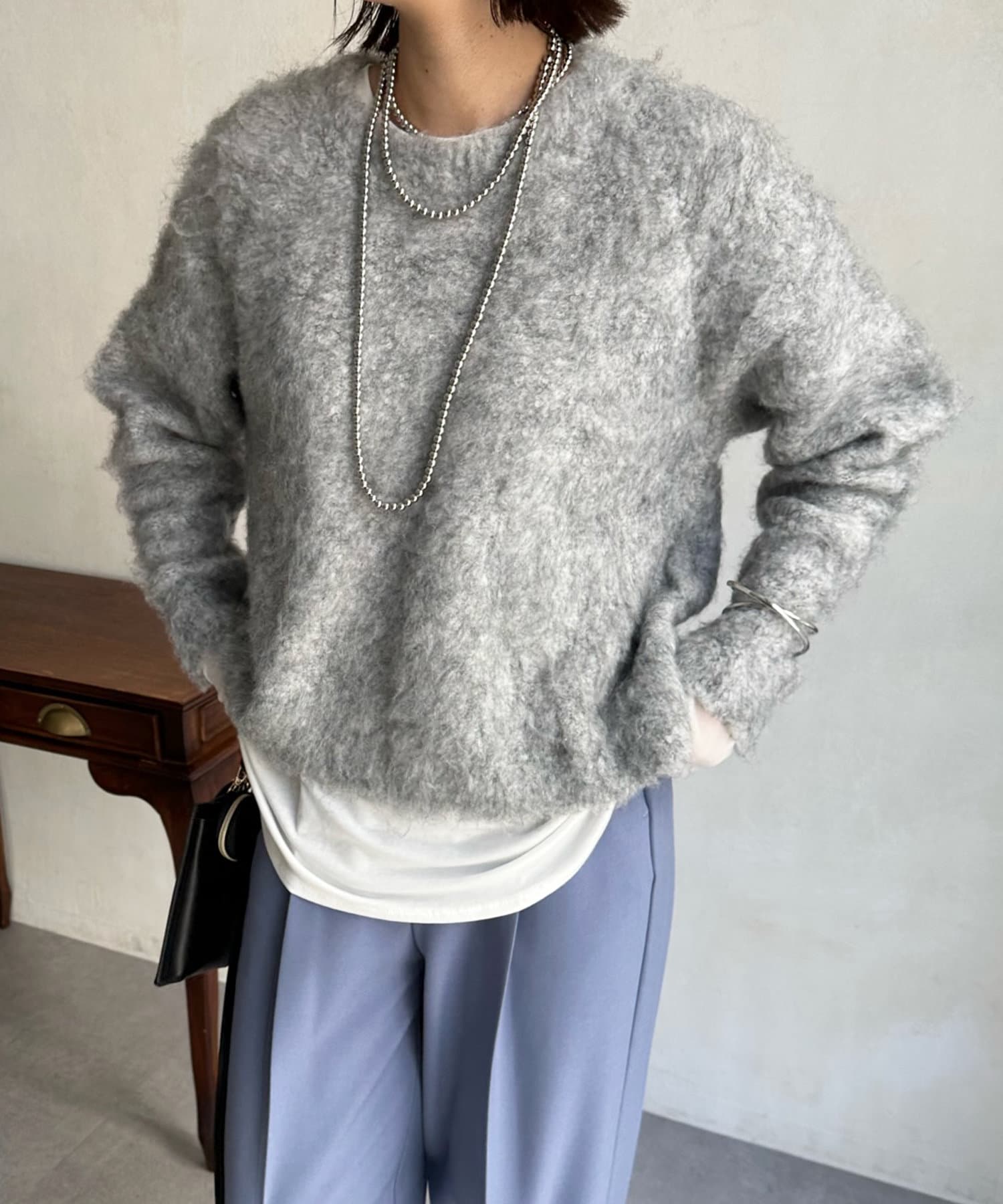 トレンド感漂うシャギーニットでスタイリングの主役に