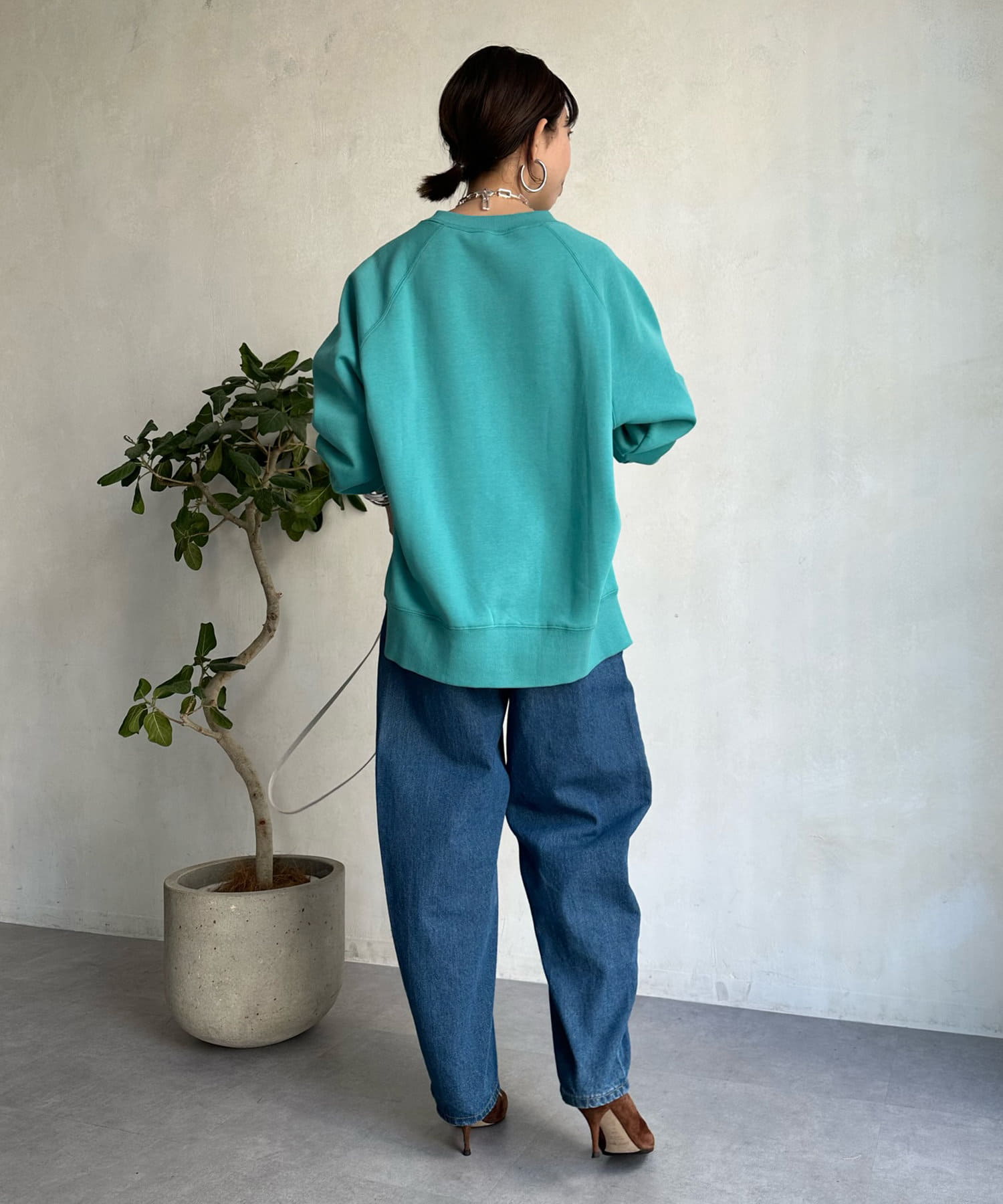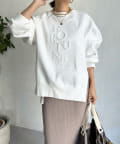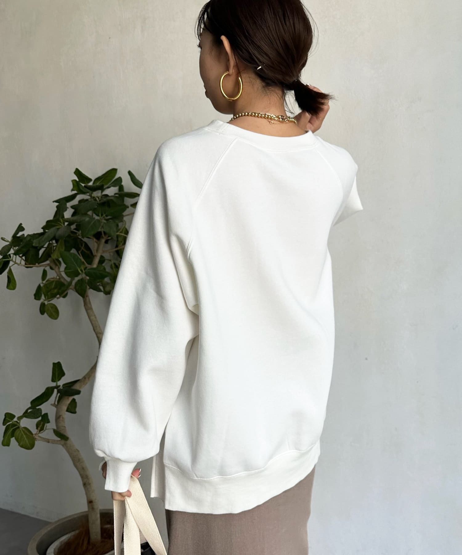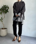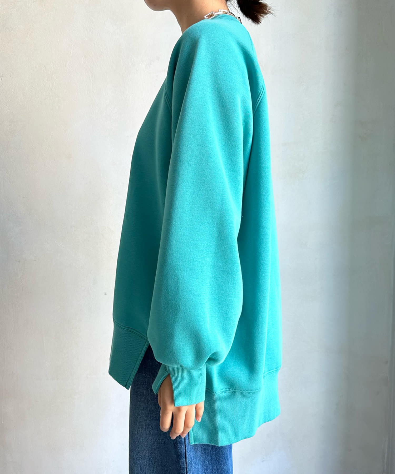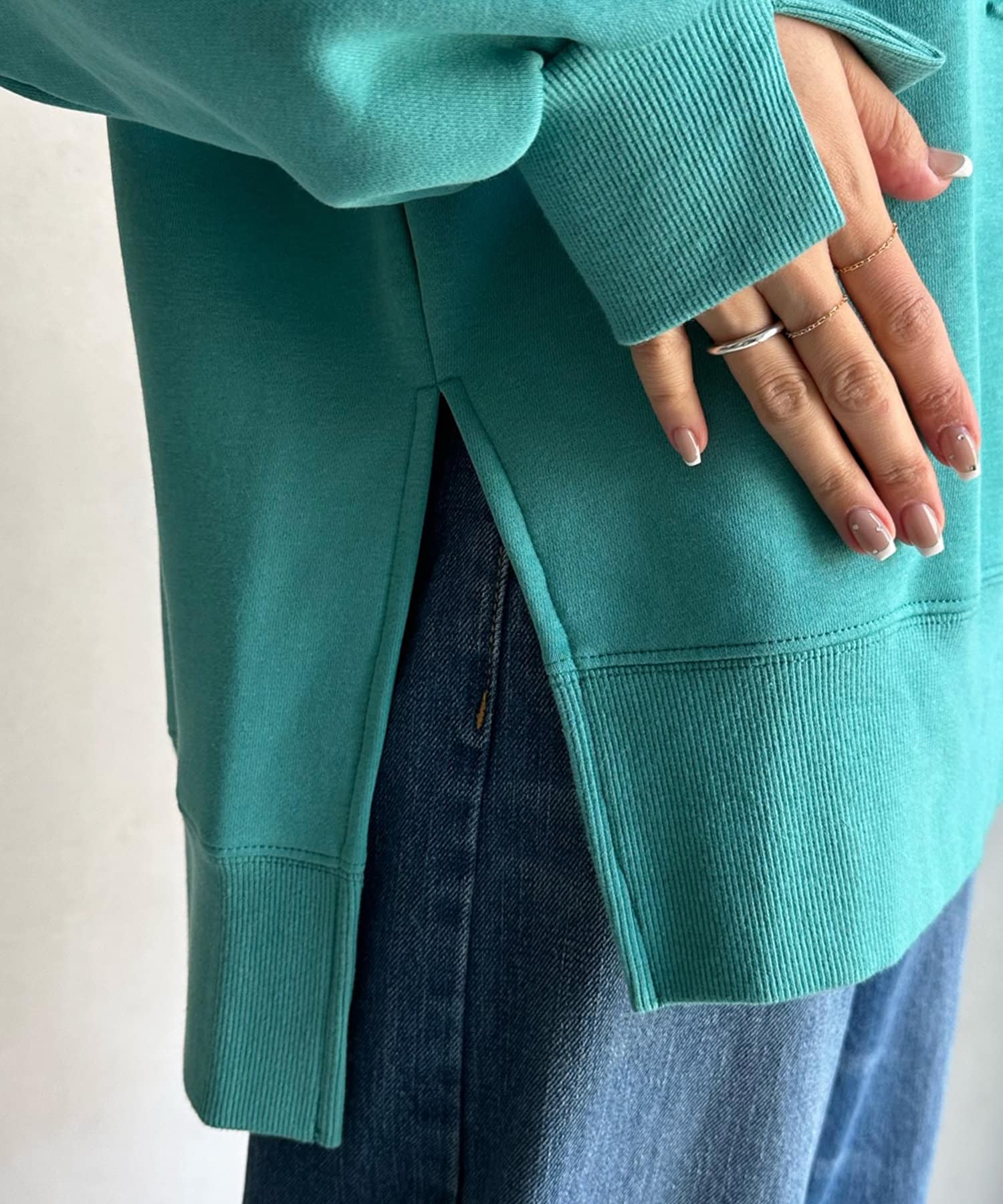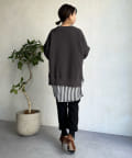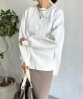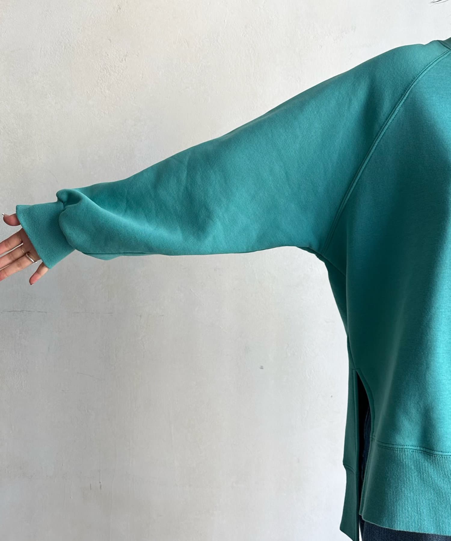 程よくゆとりのあるシルエットで身体のラインを拾いにくく、また、袖口のスリットがさり気ないワンポイントとなってくれますよ。