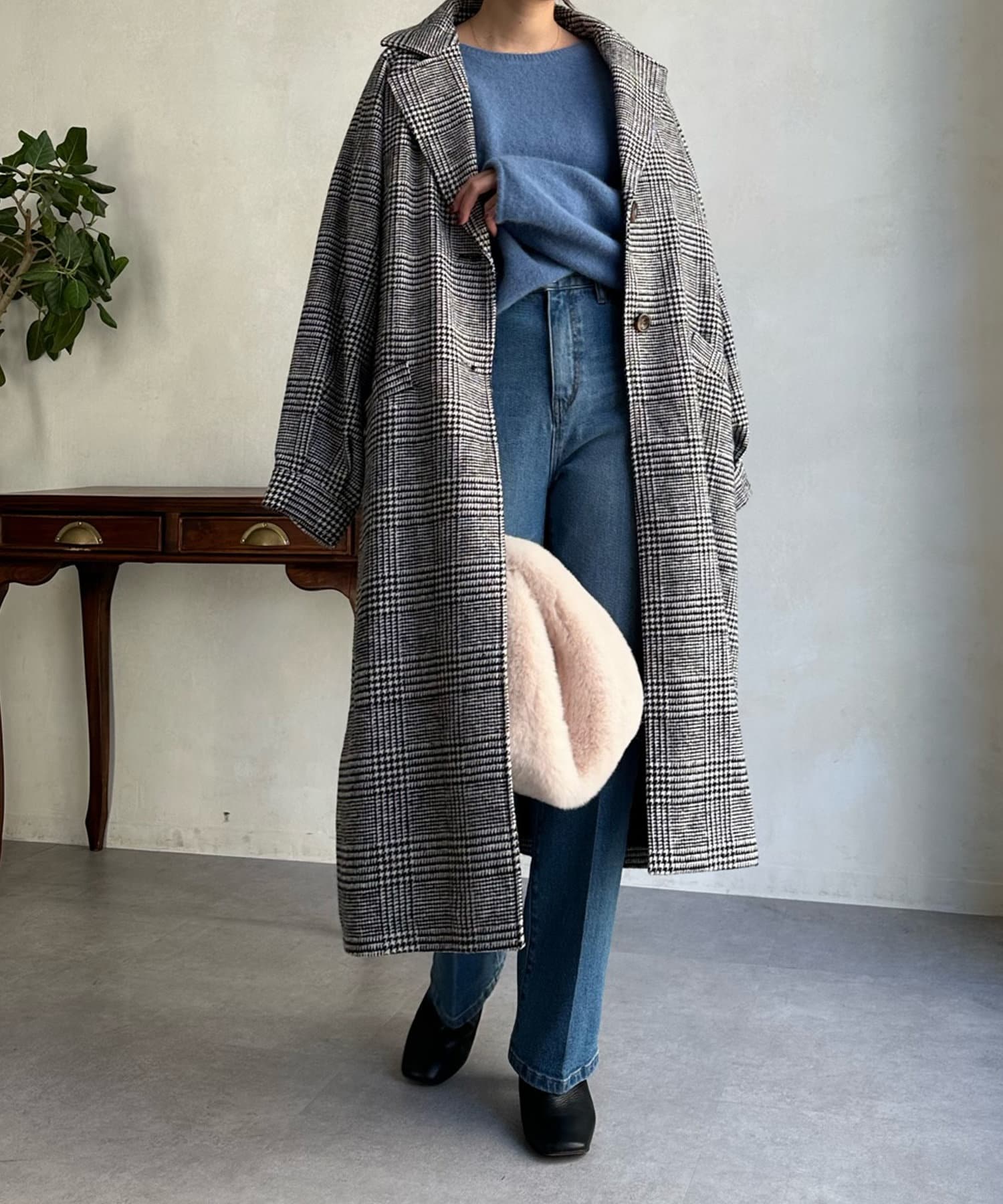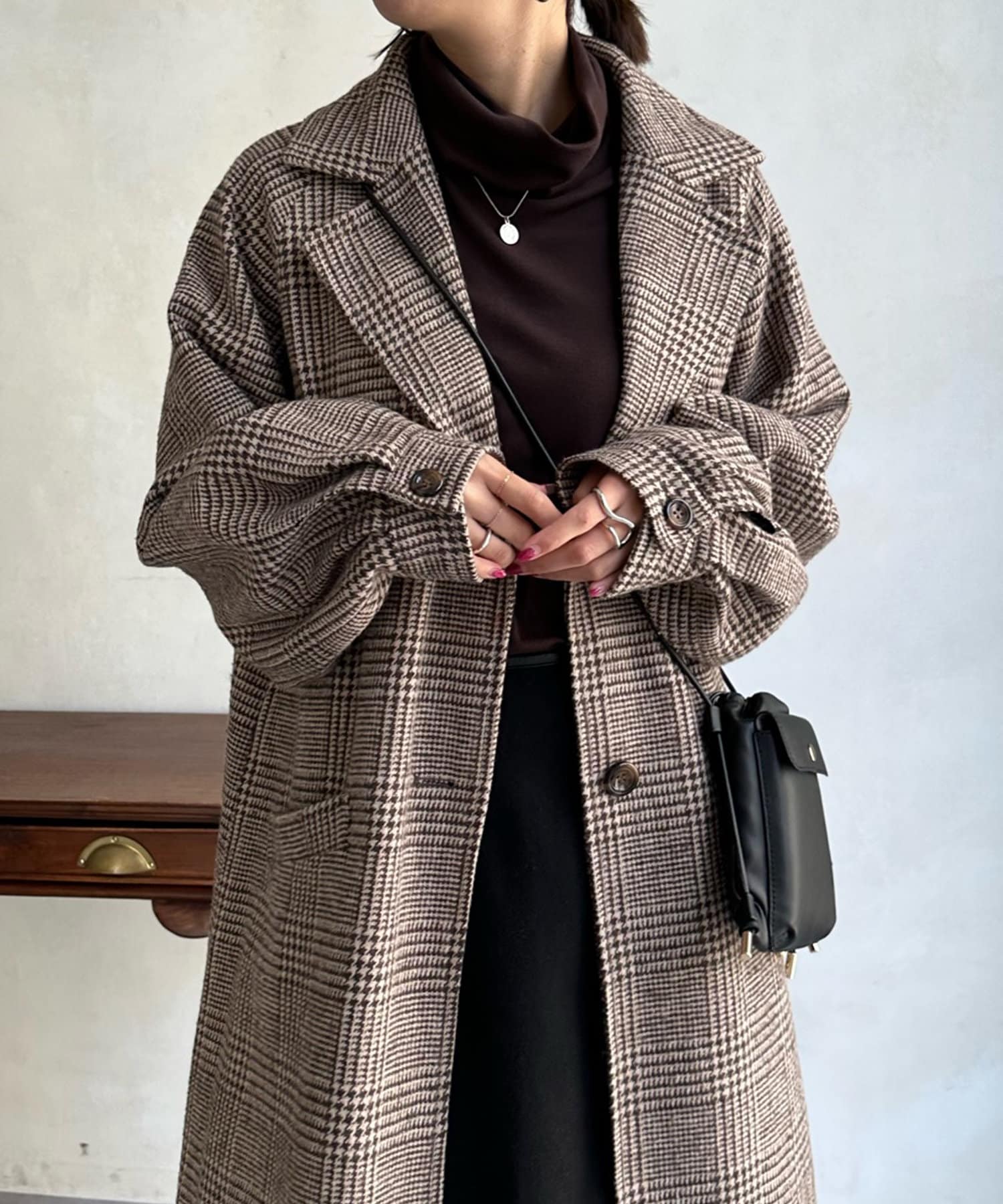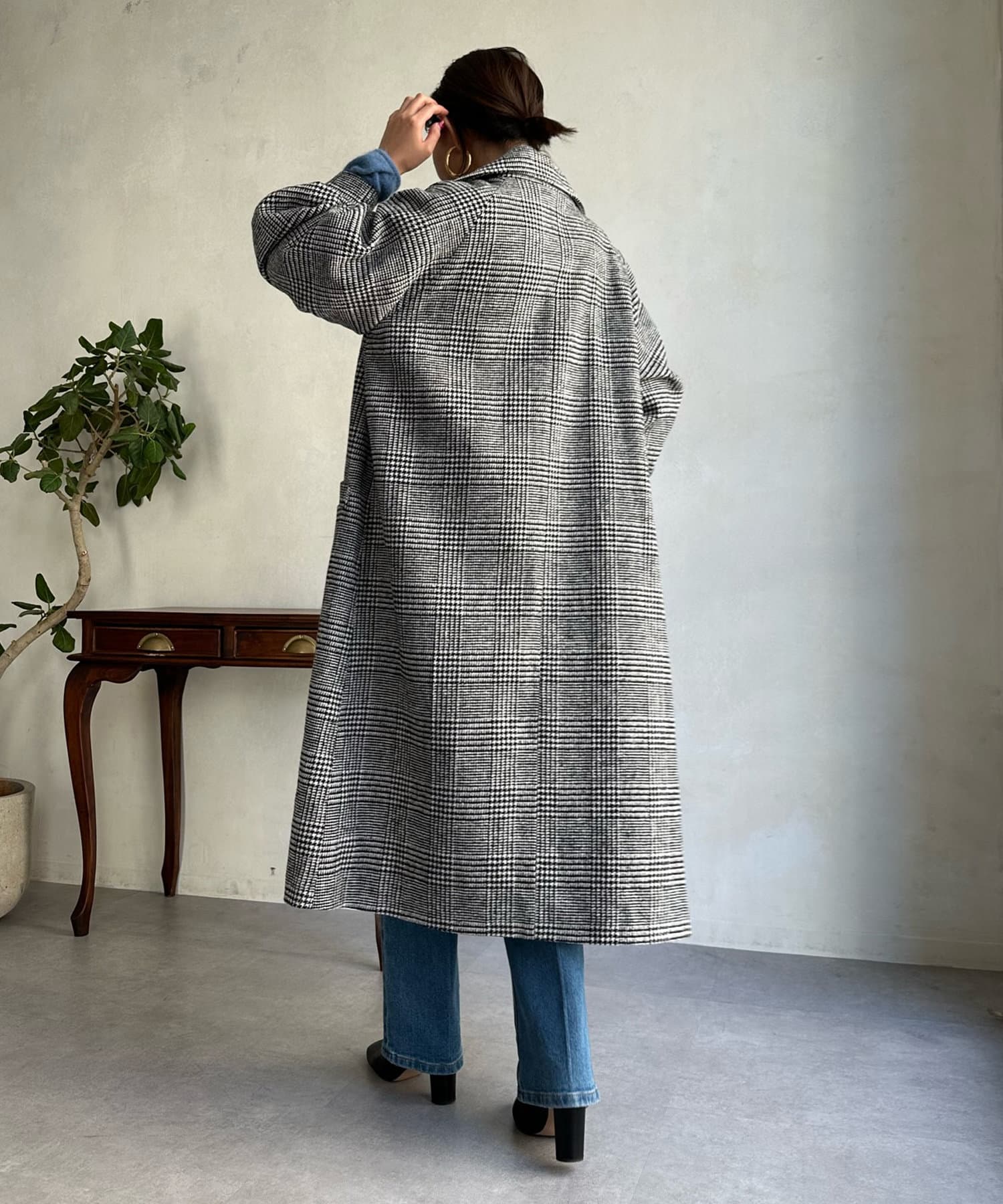 【WEB限定】チェック柄ボリューム袖ラグランコート