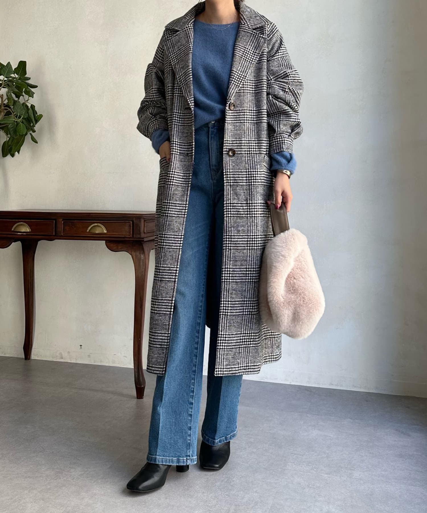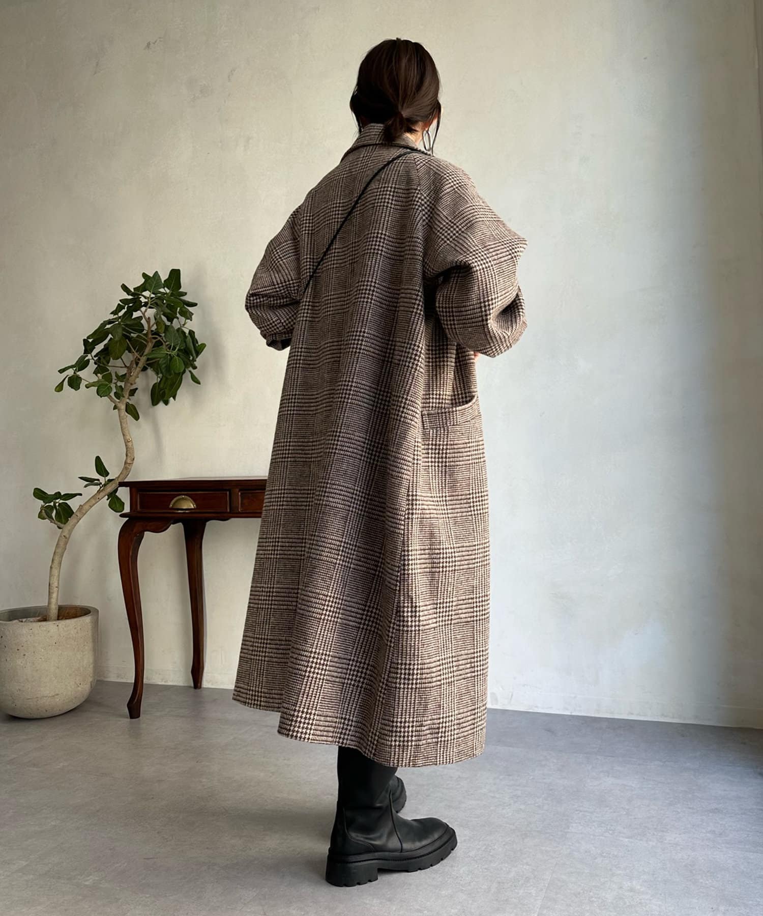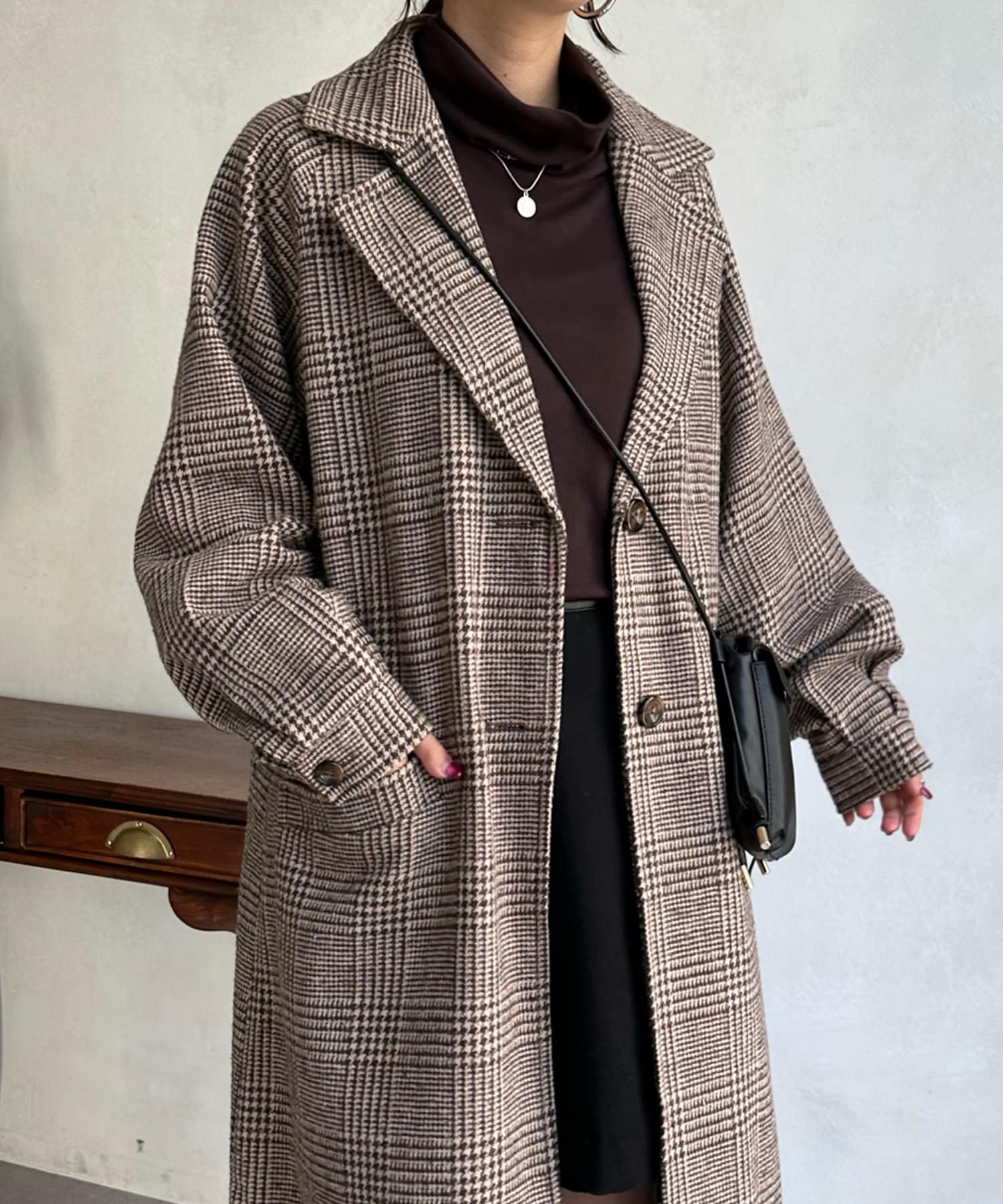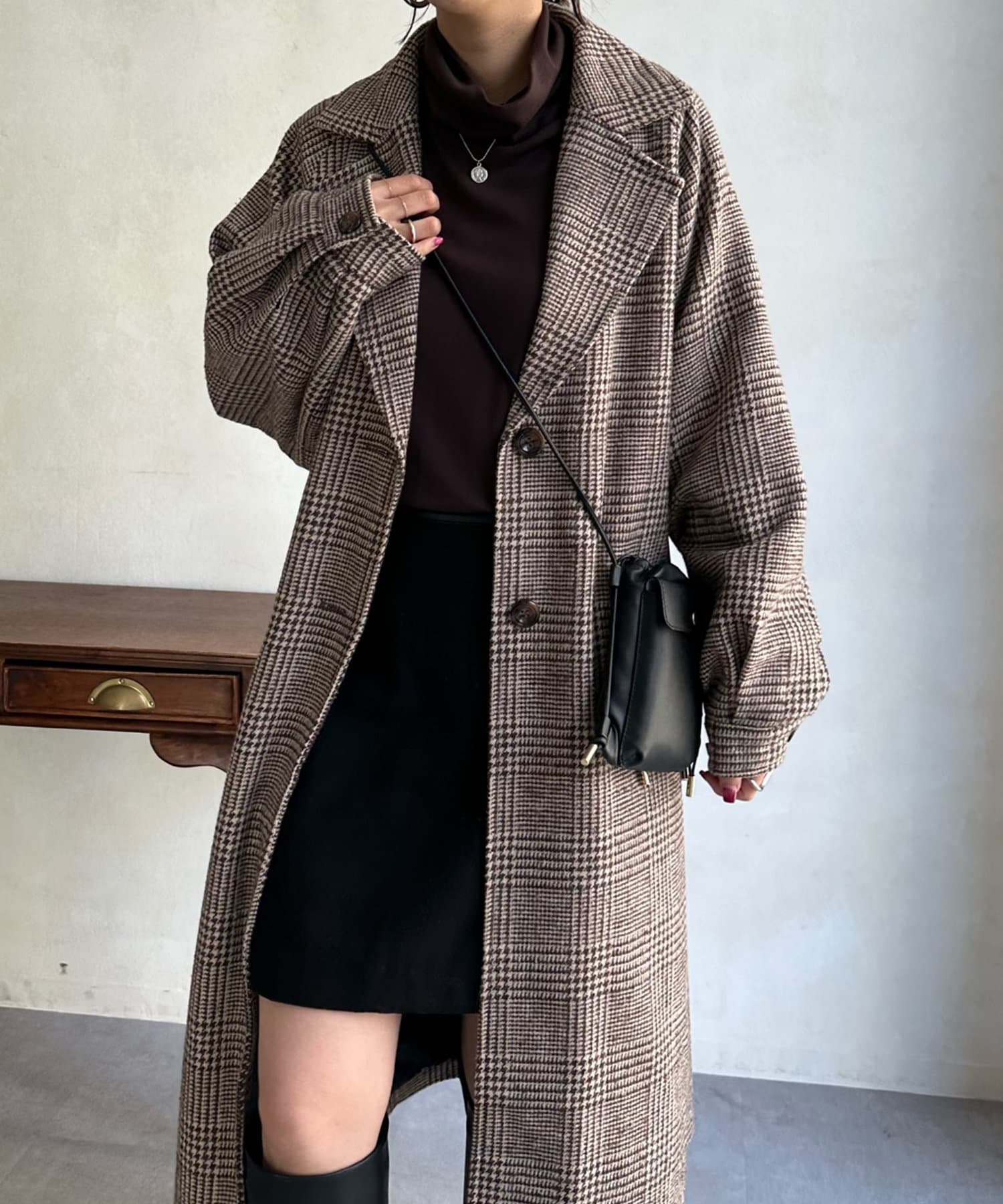 【WEB限定】チェック柄ボリューム袖ラグランコート