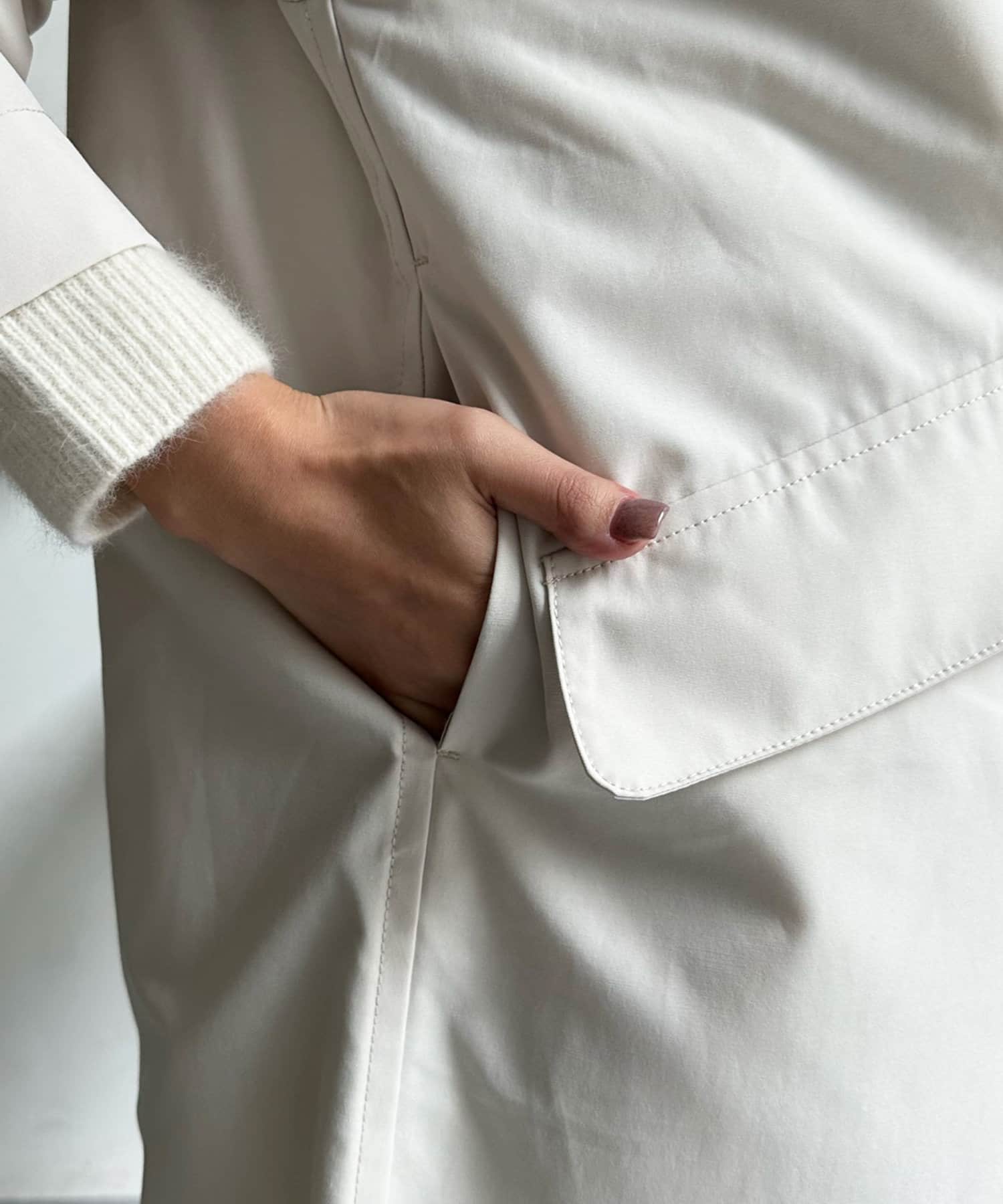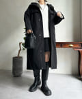 適度なハリの生地がキレイなシルエットを演出してくれるモードな雰囲気のロングコート。