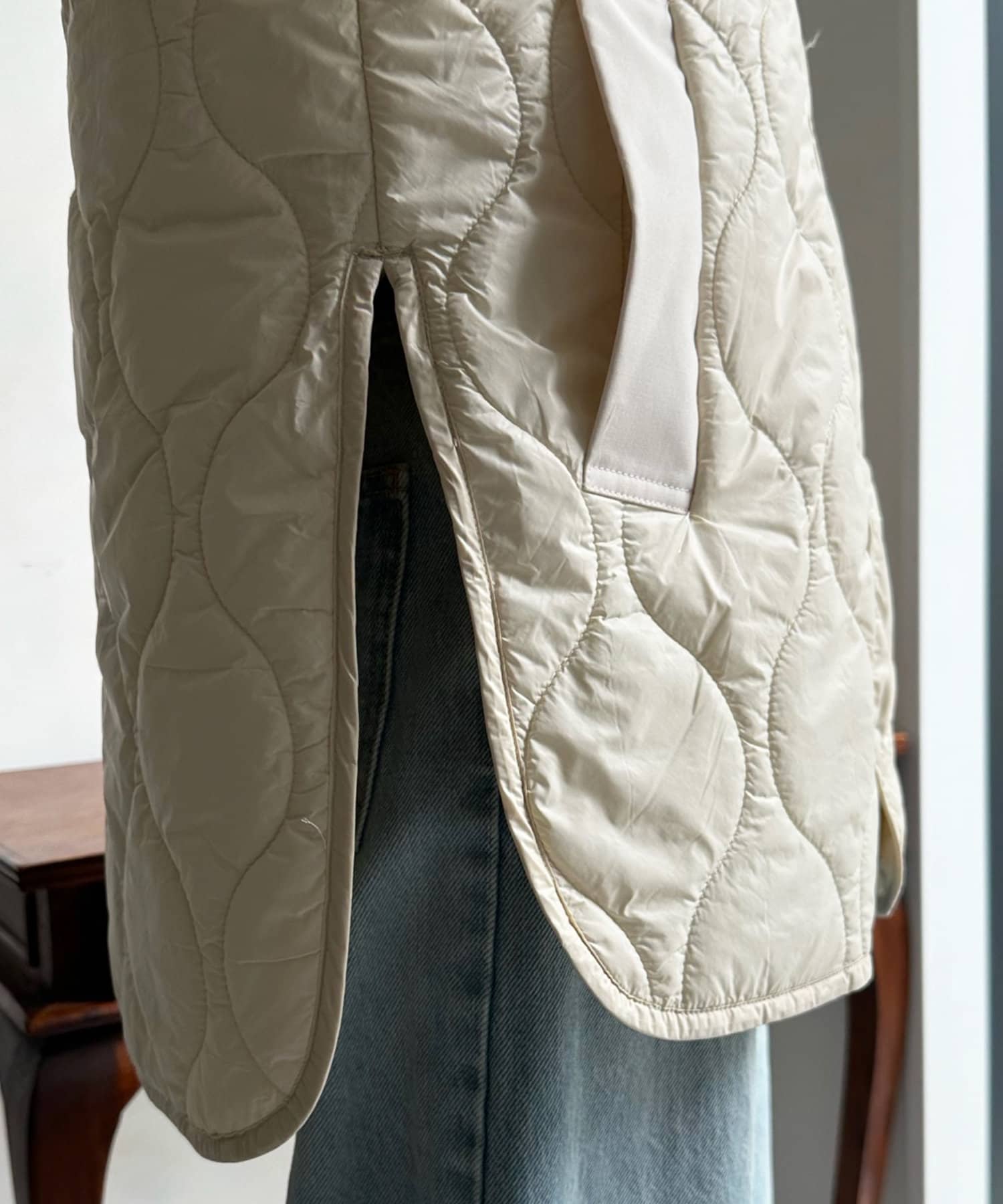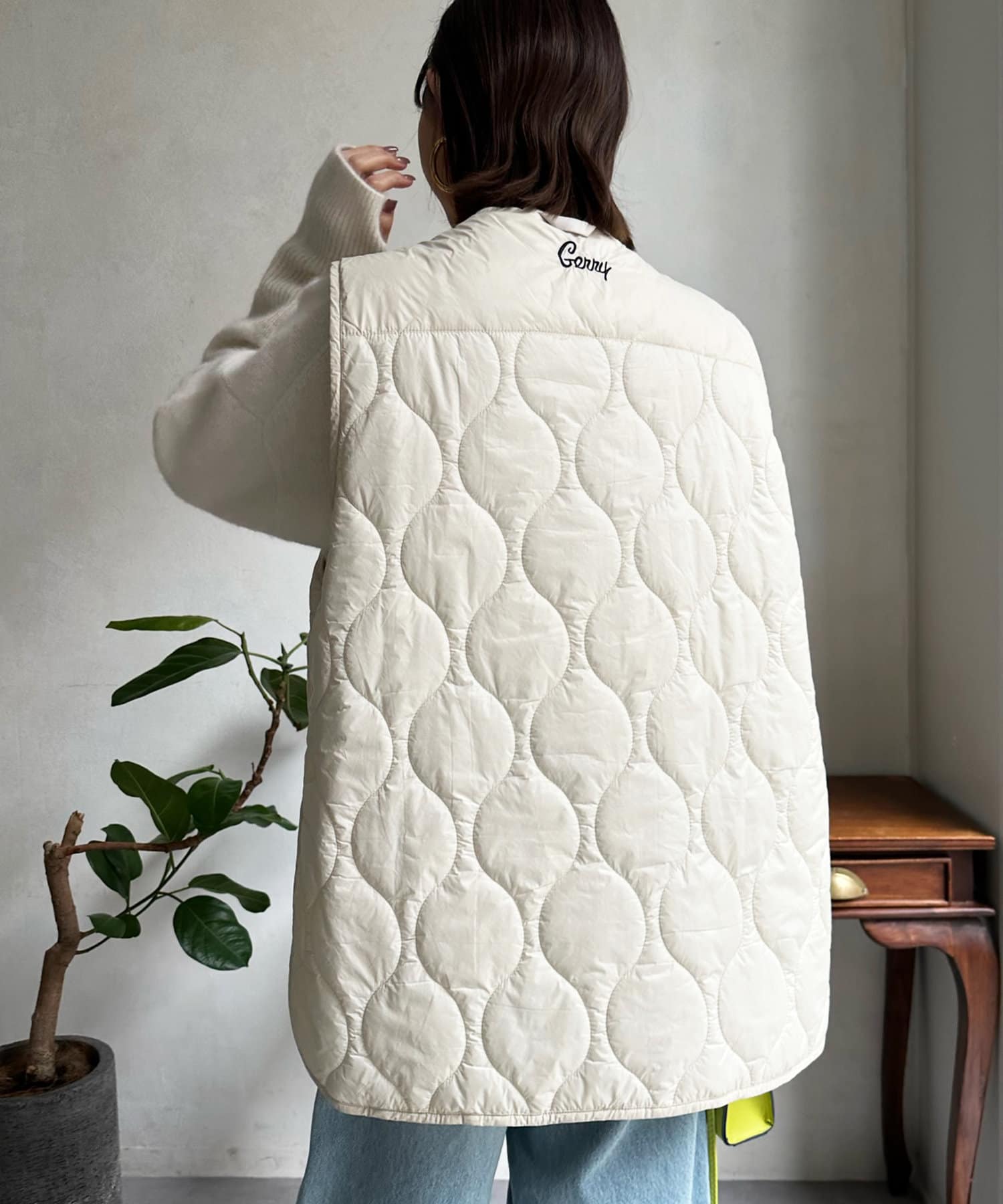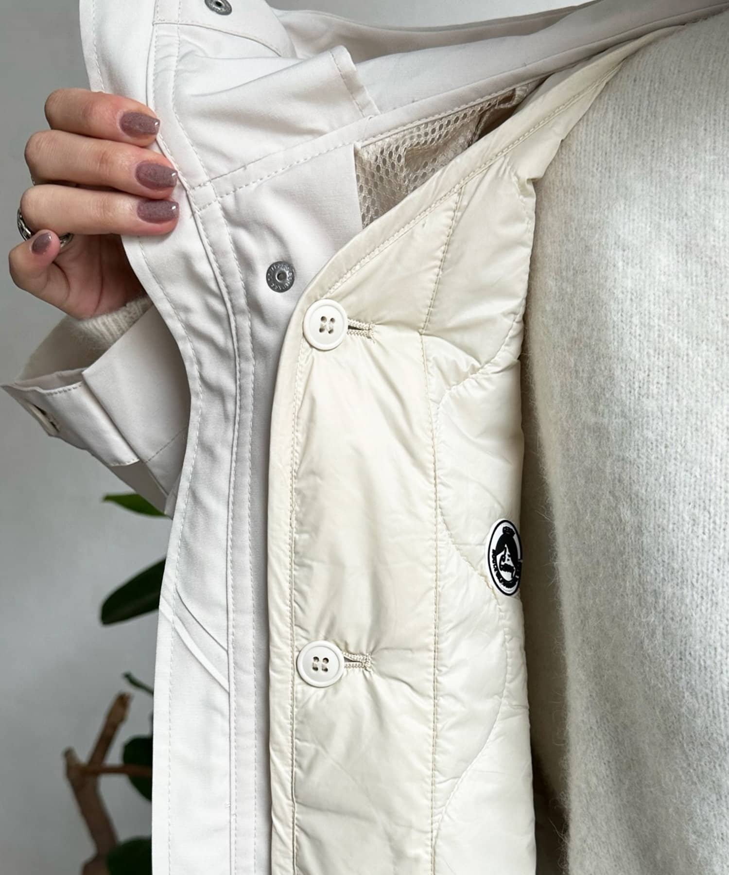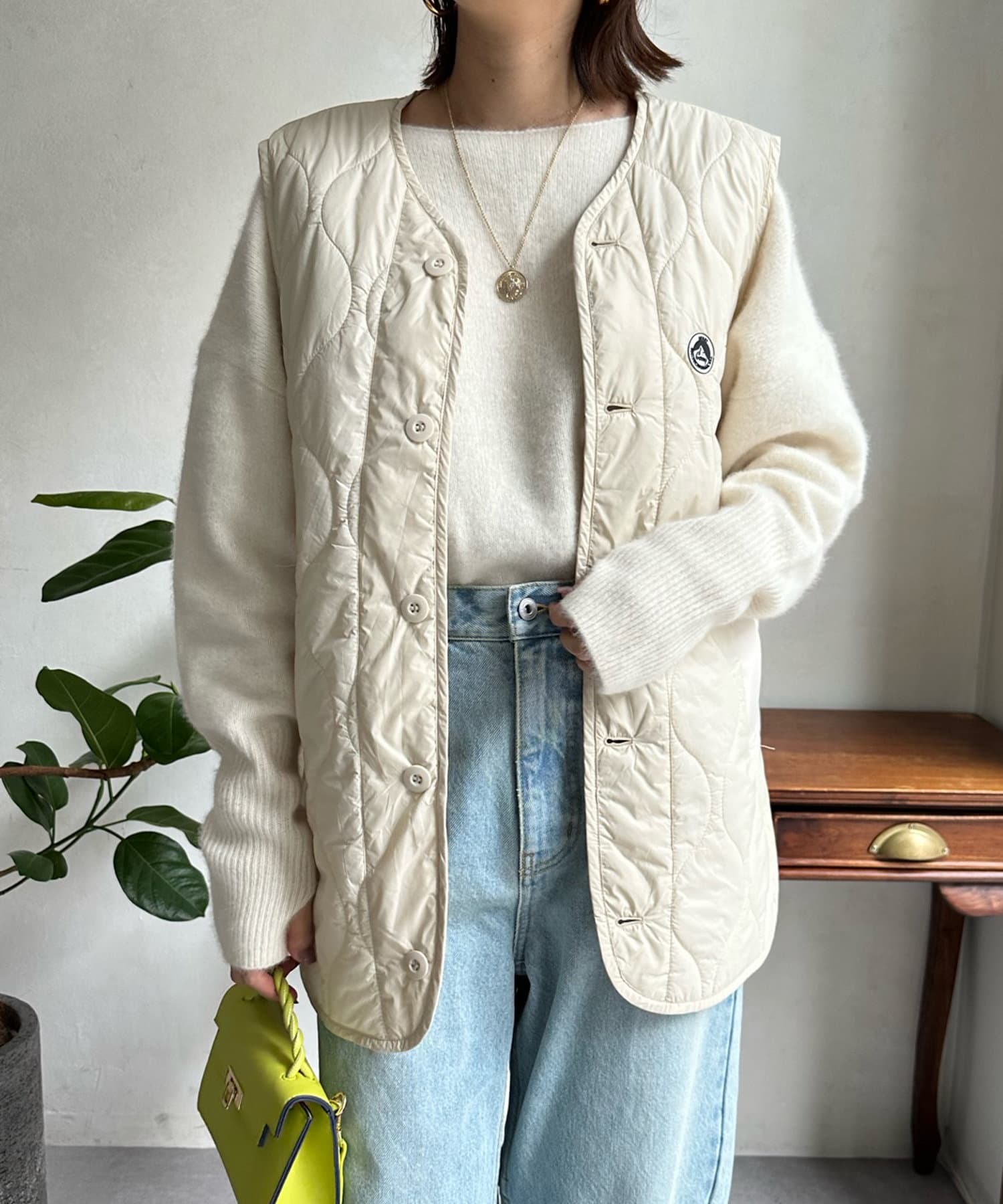 内側にはキルトベストのライナーが備わっており、コートとベストをそれぞれ単体で着るだけでなく、コートの上にベストをレイヤードする4WAYスタイルを提案。