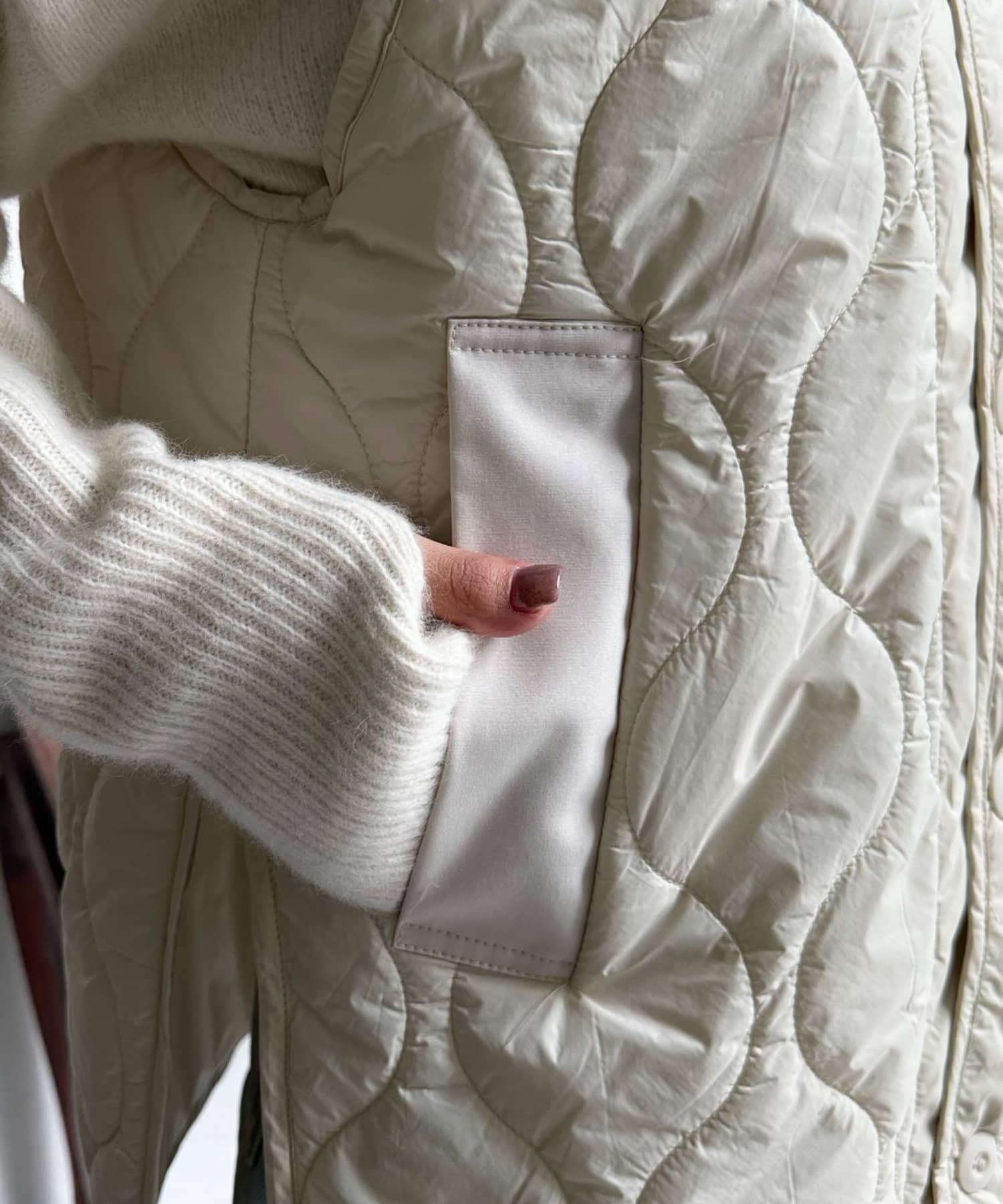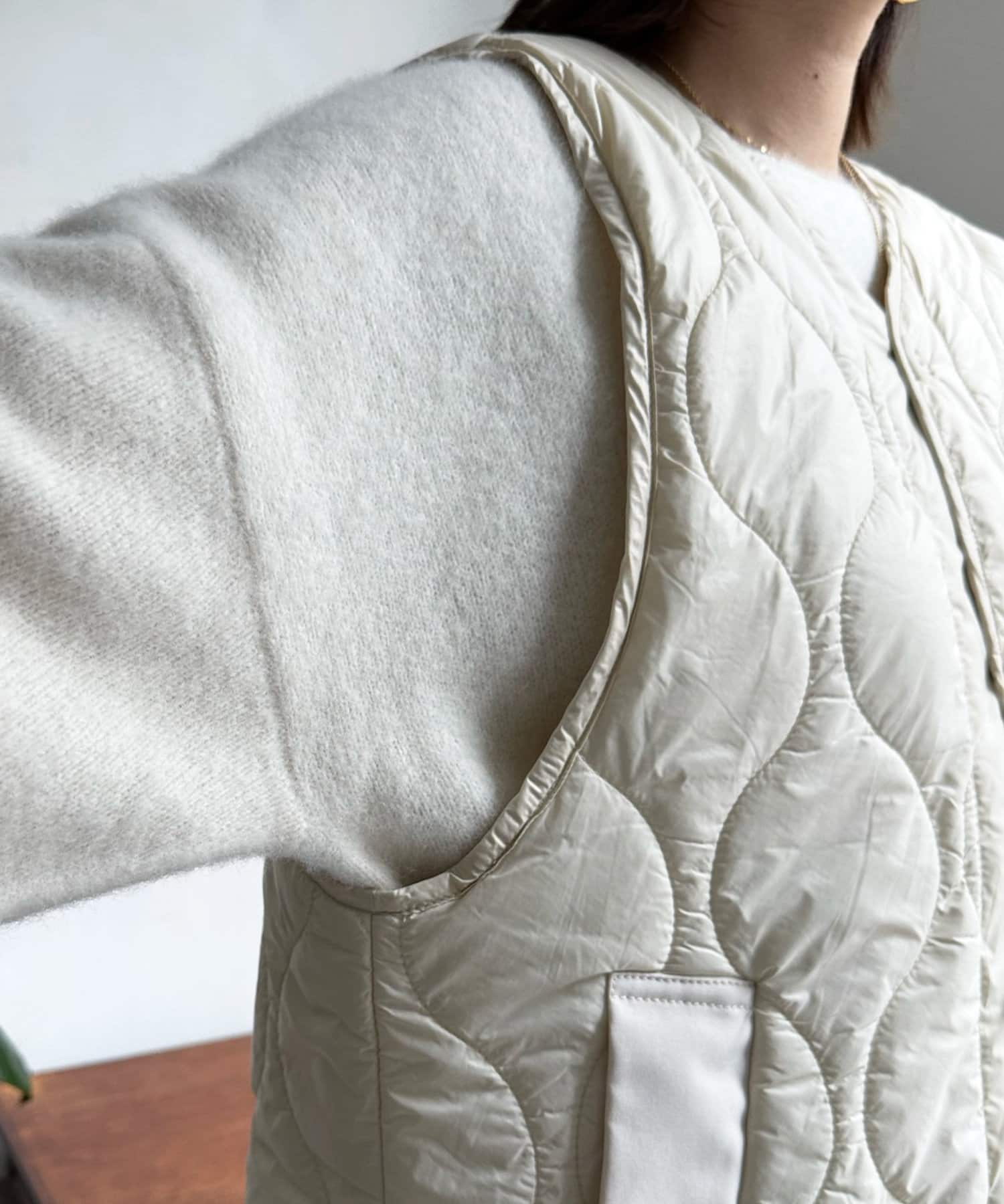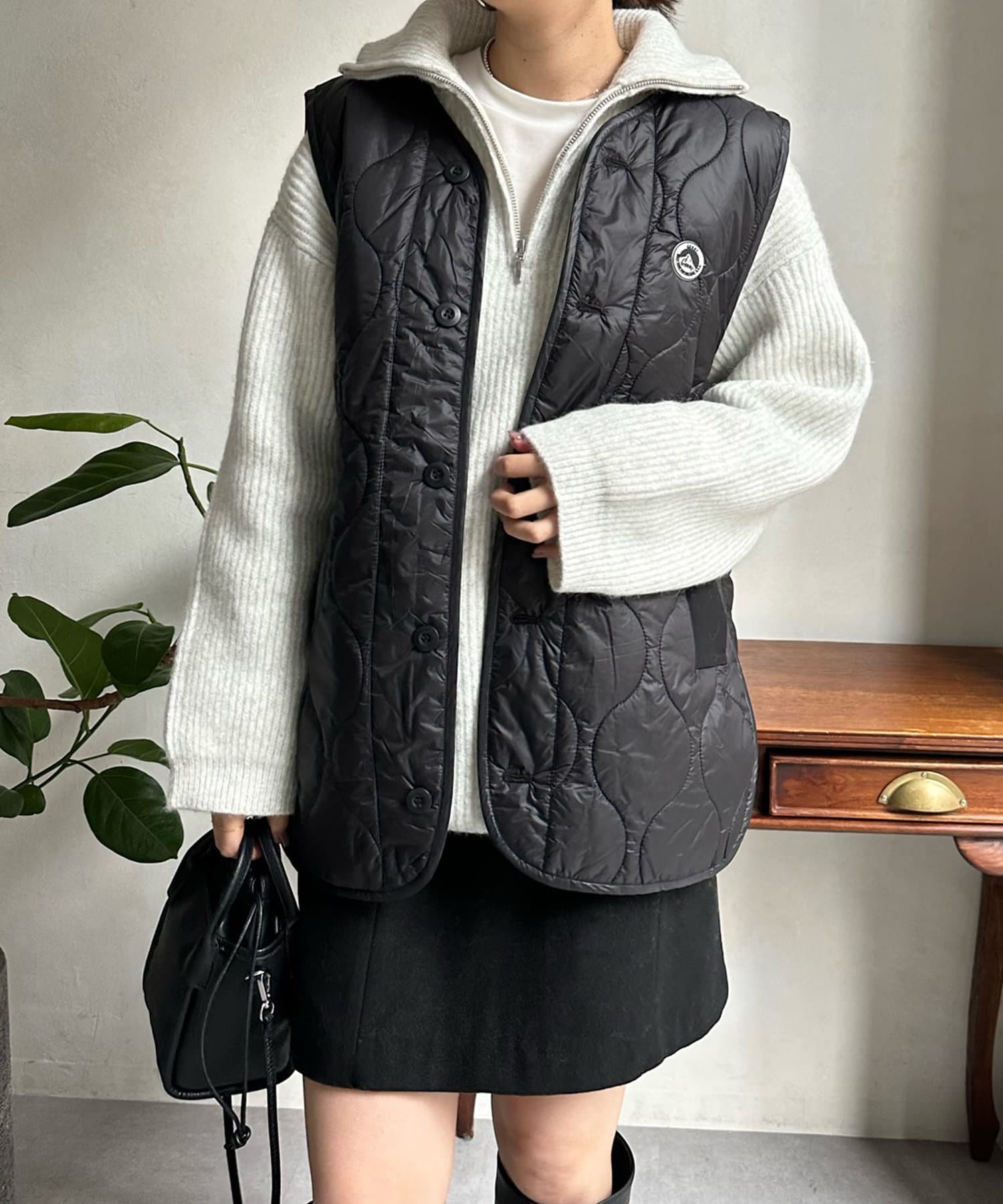 内側にはキルトベストのライナーが備わっており、コートとベストをそれぞれ単体で着るだけでなく、コートの上にベストをレイヤードする4WAYスタイルを提案。