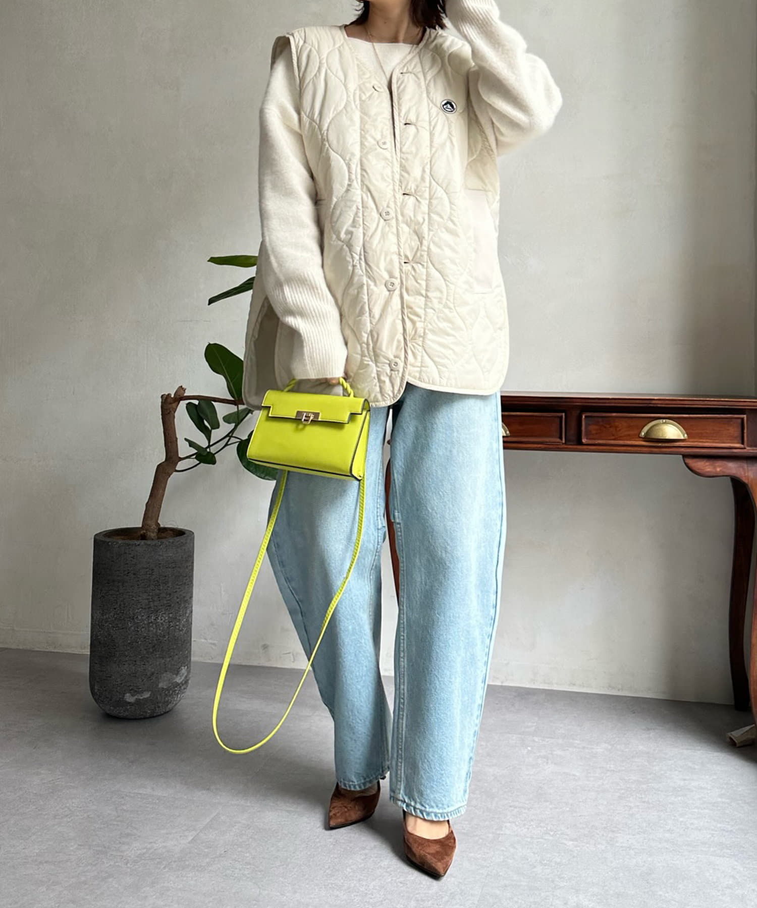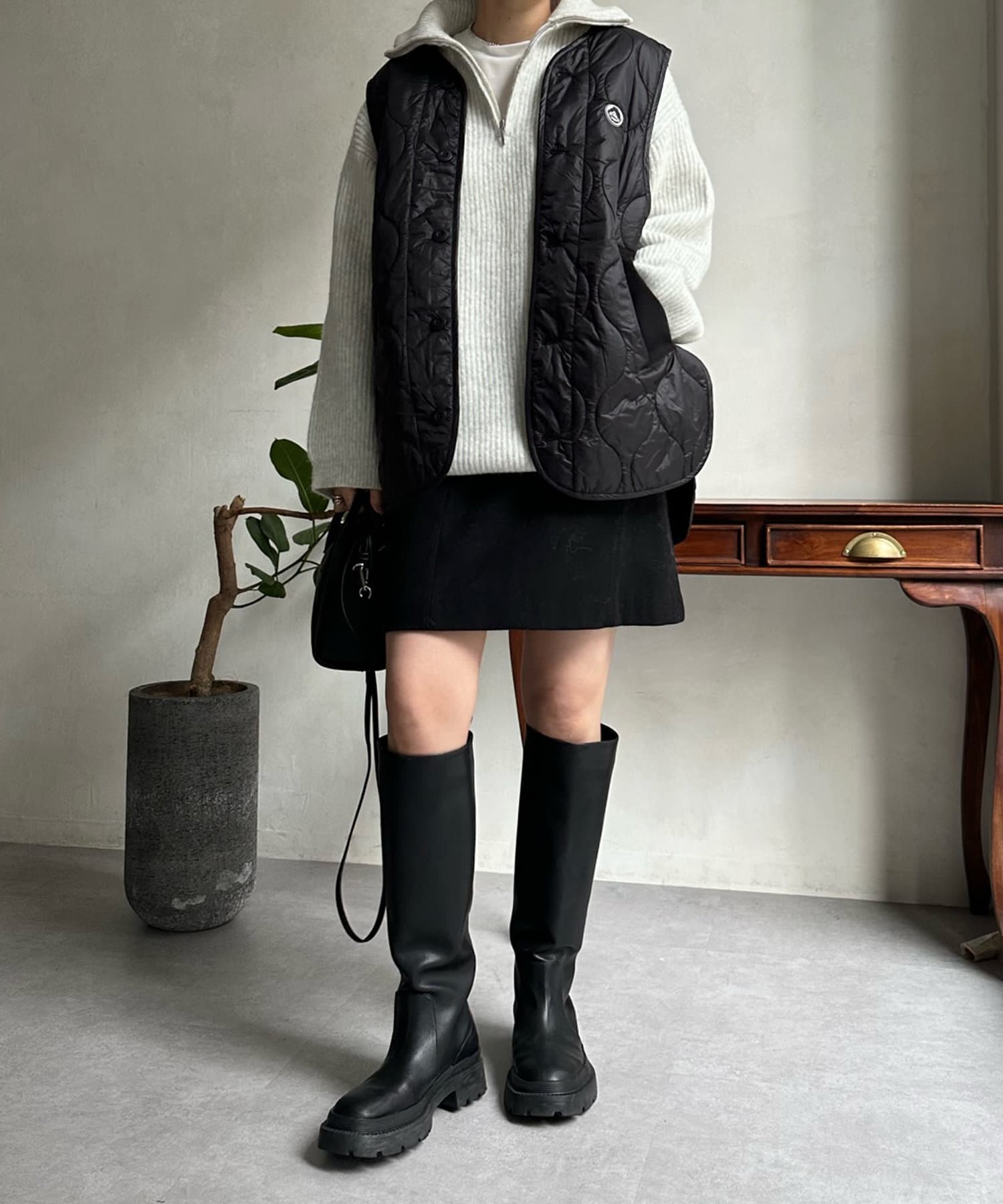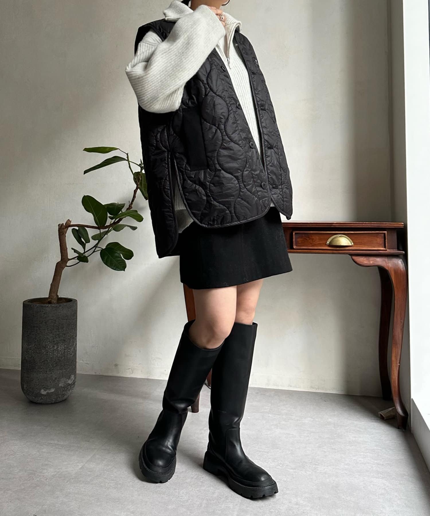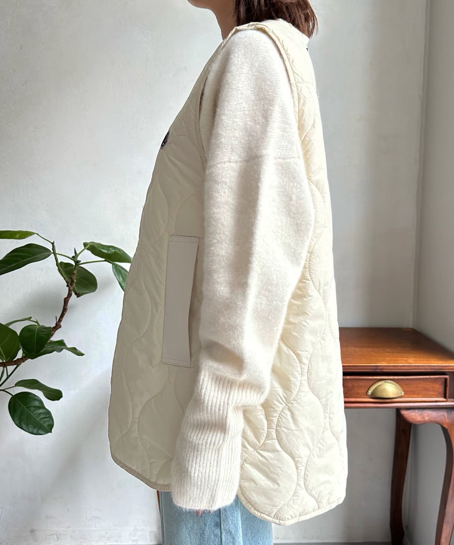 内側にはキルトベストのライナーが備わっており、コートとベストをそれぞれ単体で着るだけでなく、コートの上にベストをレイヤードする4WAYスタイルを提案。