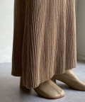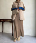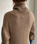 シルエットは、緩やかな台形になっているため身体のラインを拾いすぎず、また、リブ編みの縦ラインがすっきり見せを叶えてくれます。