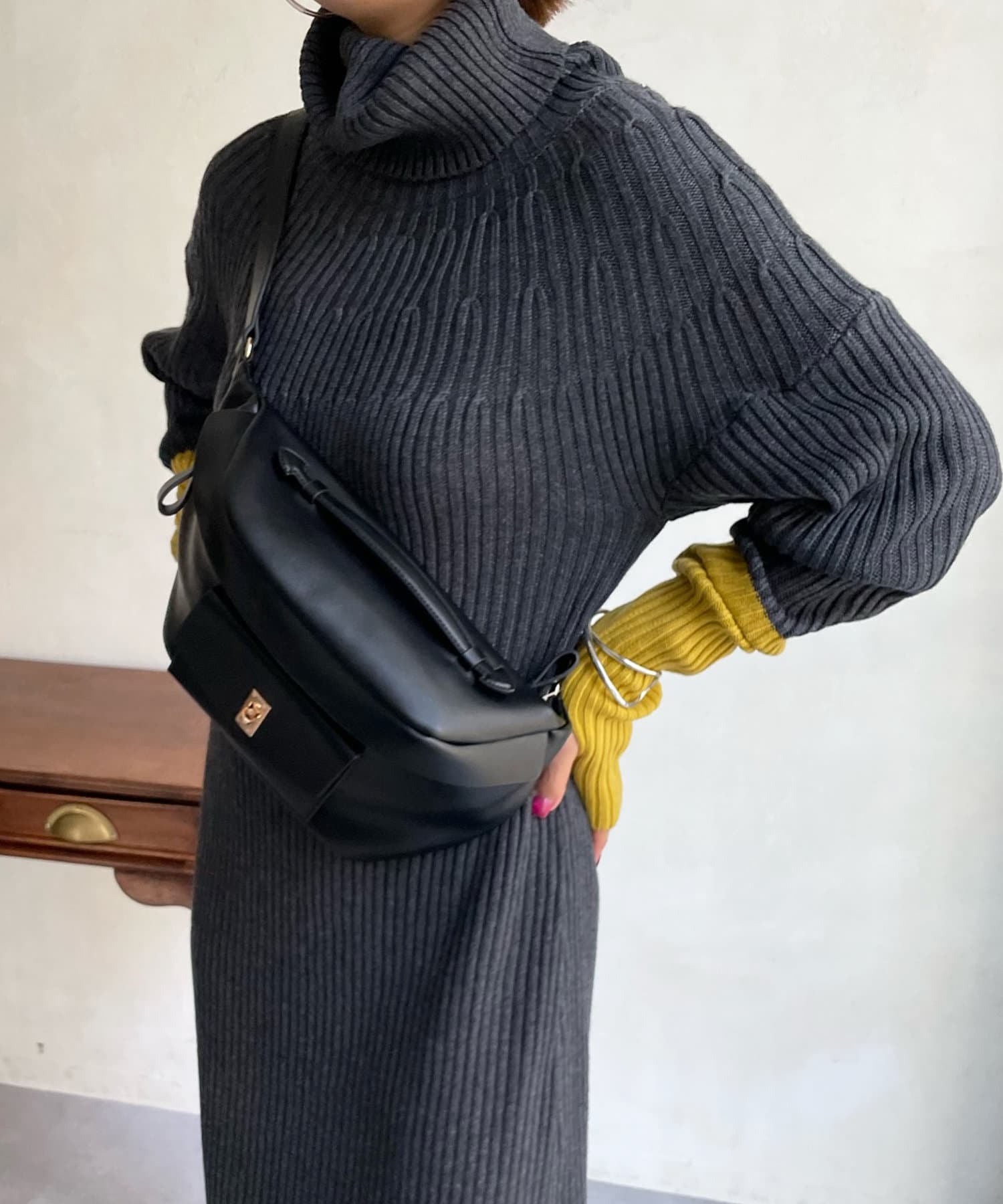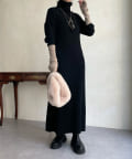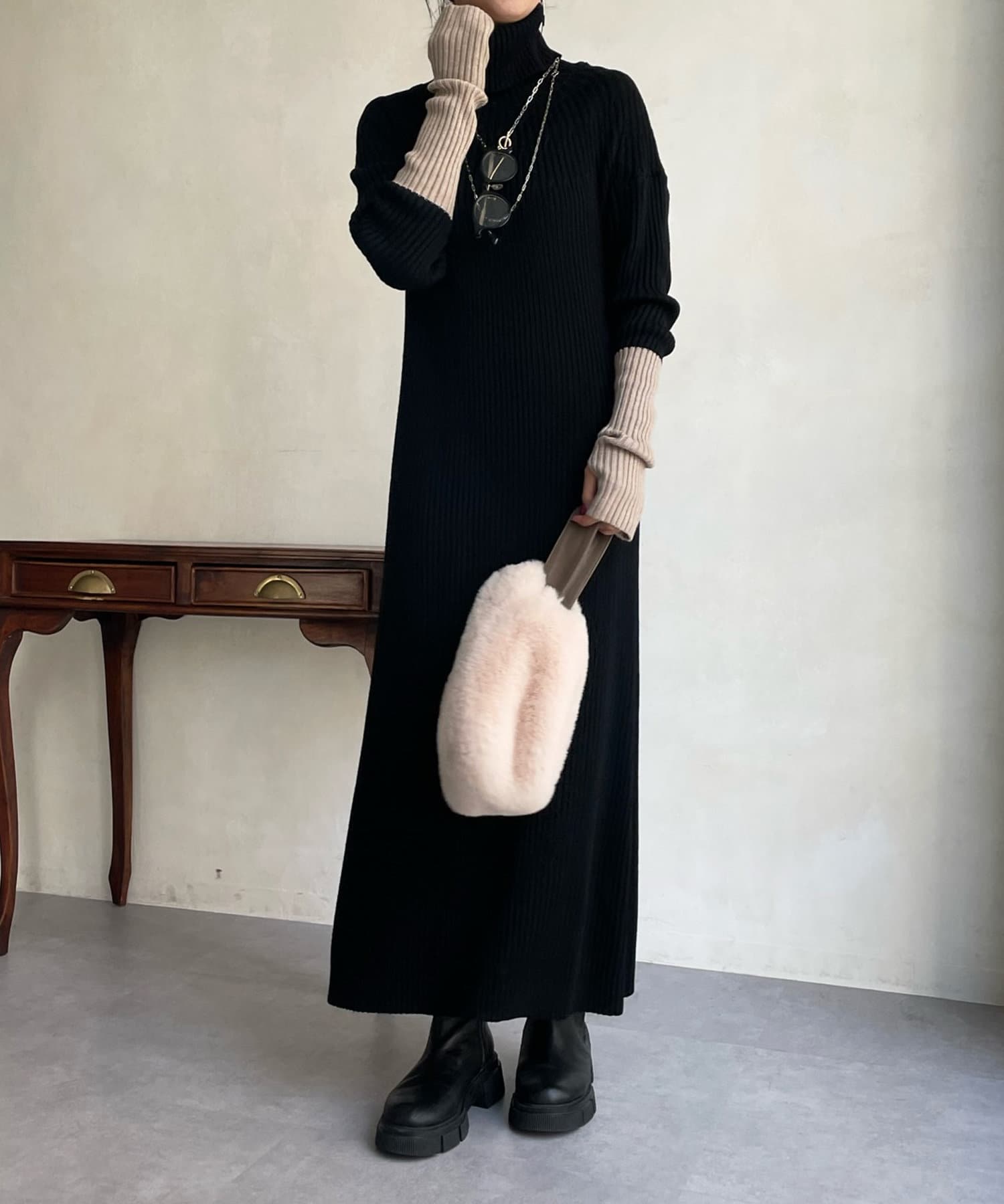• DOUDOU(ドゥドゥ) 【WEB限定】袖配色タートルニットワンピース