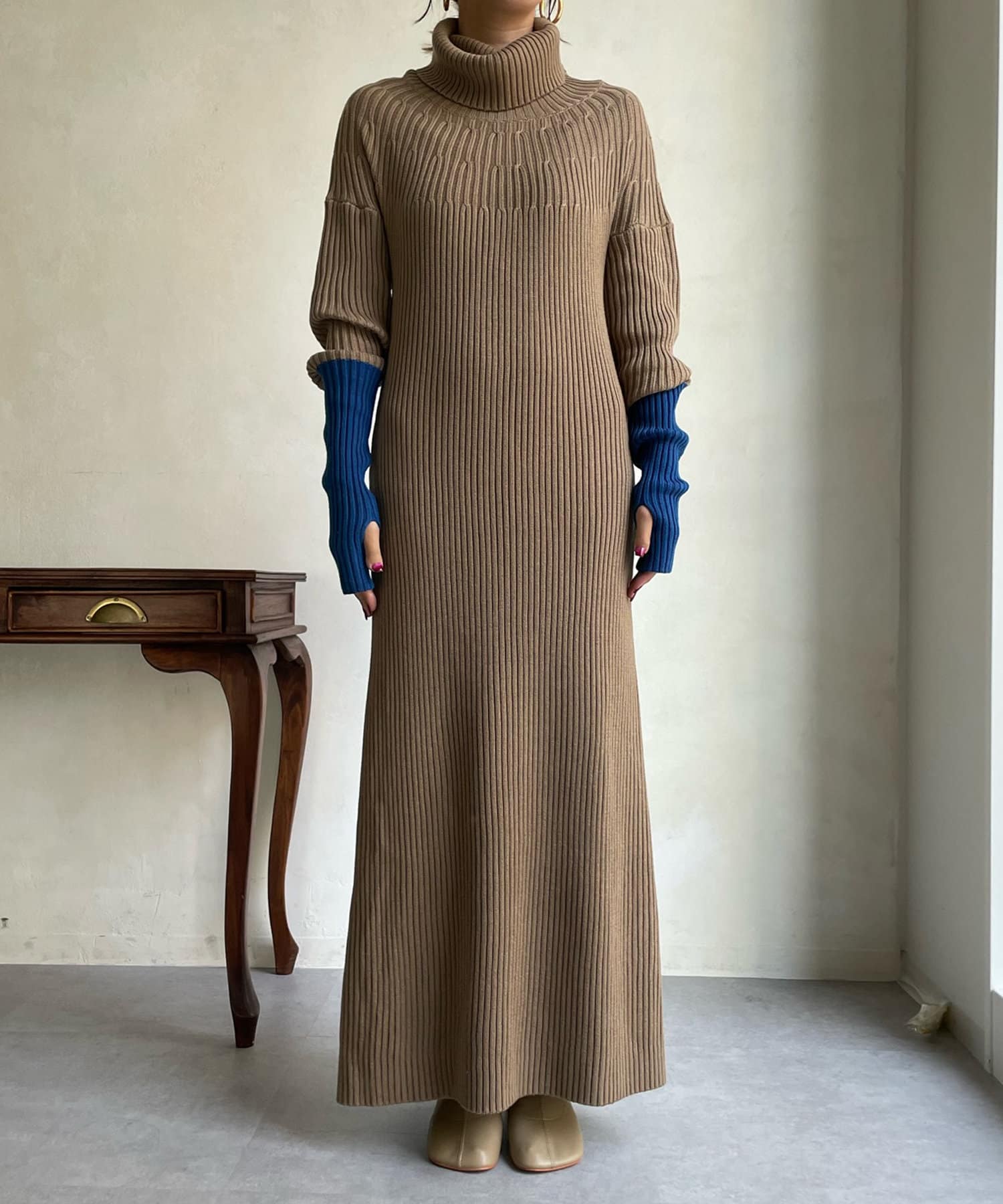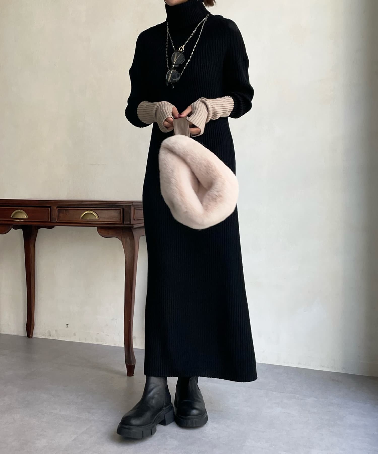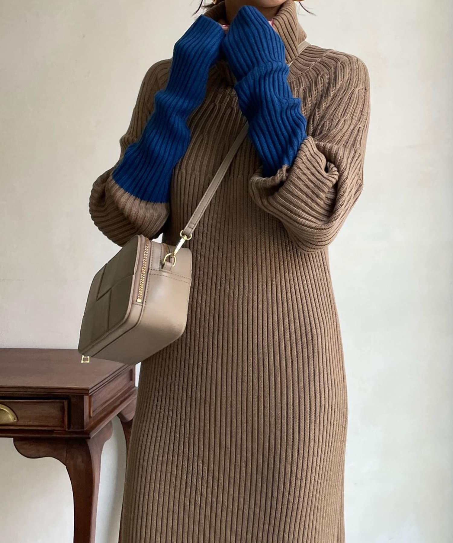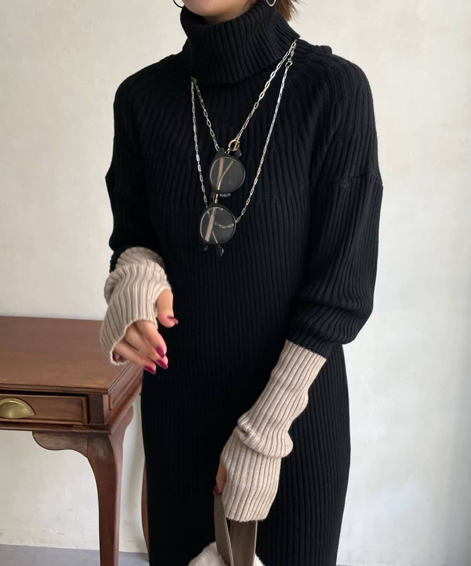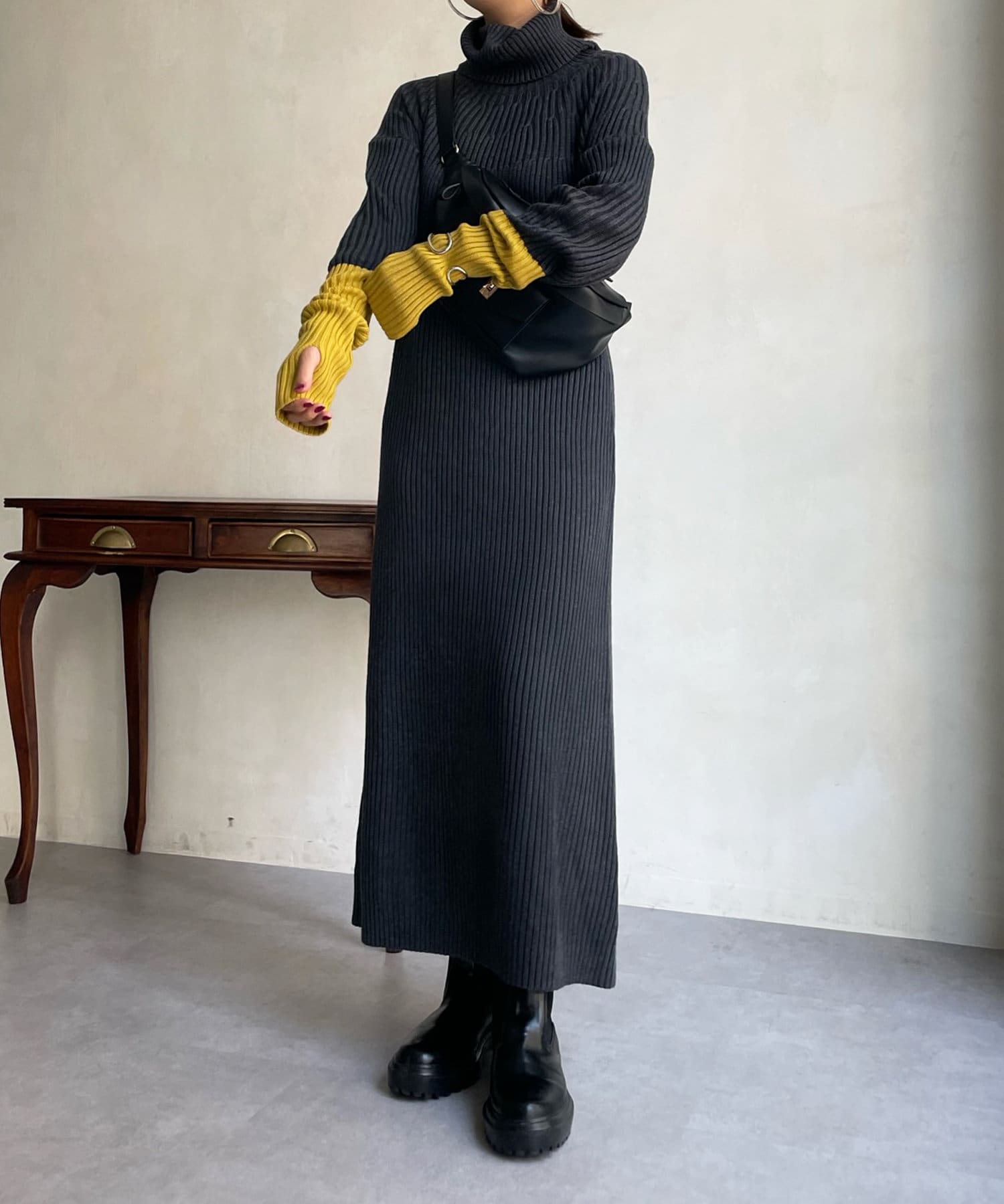 DOUDOU(ドゥドゥ) 【WEB限定】袖配色タートルニットワンピース