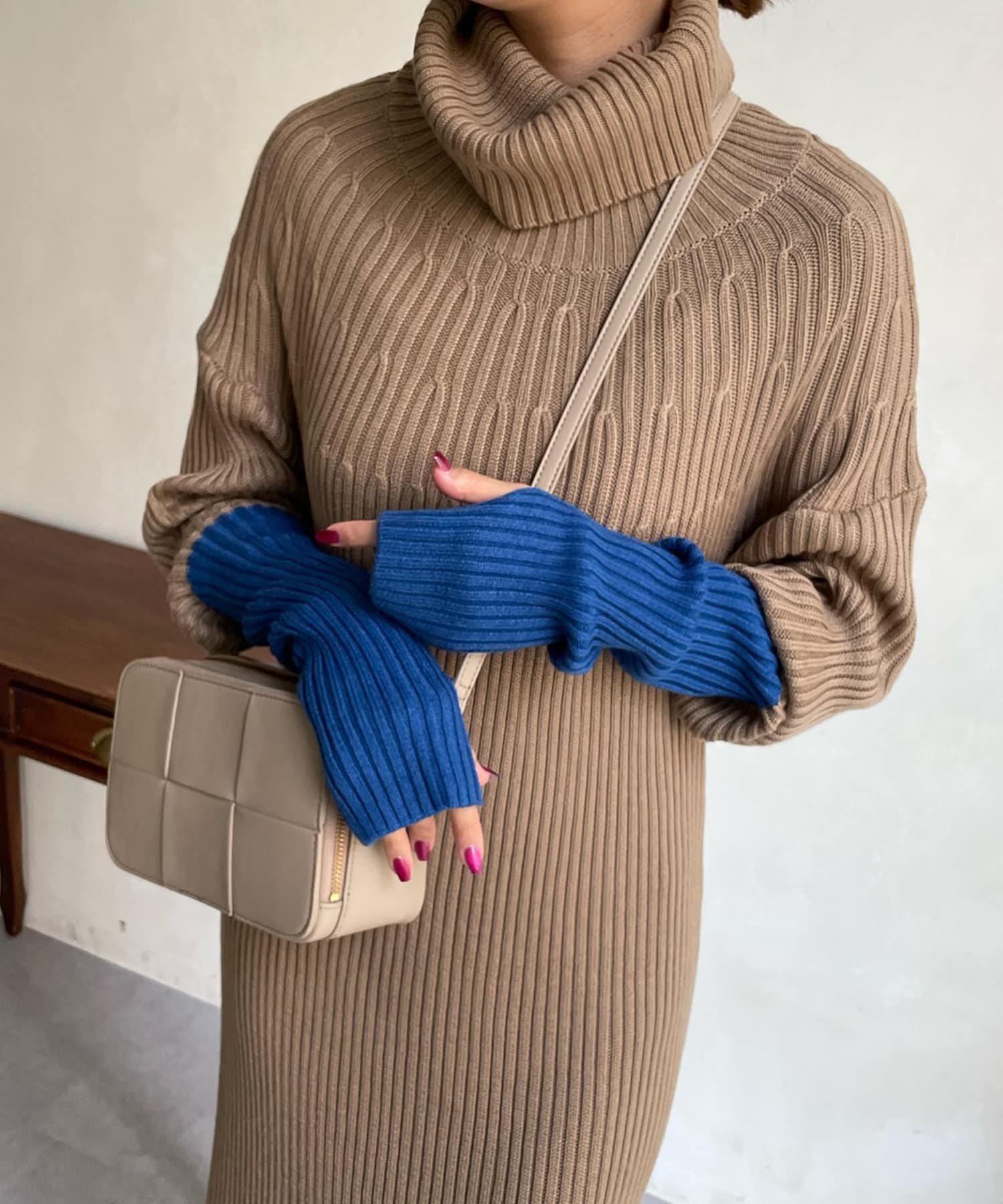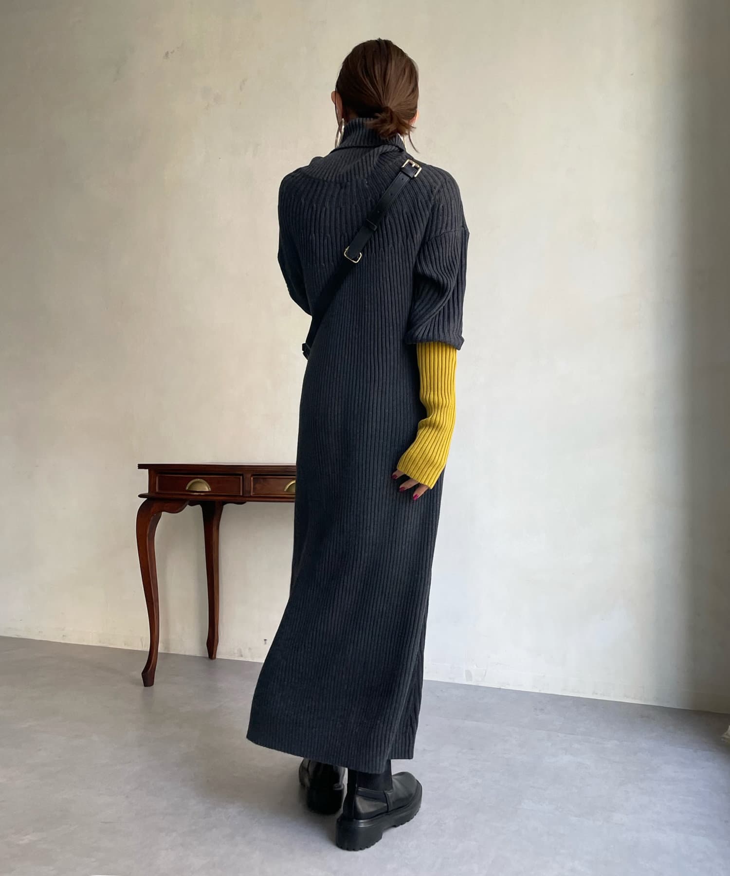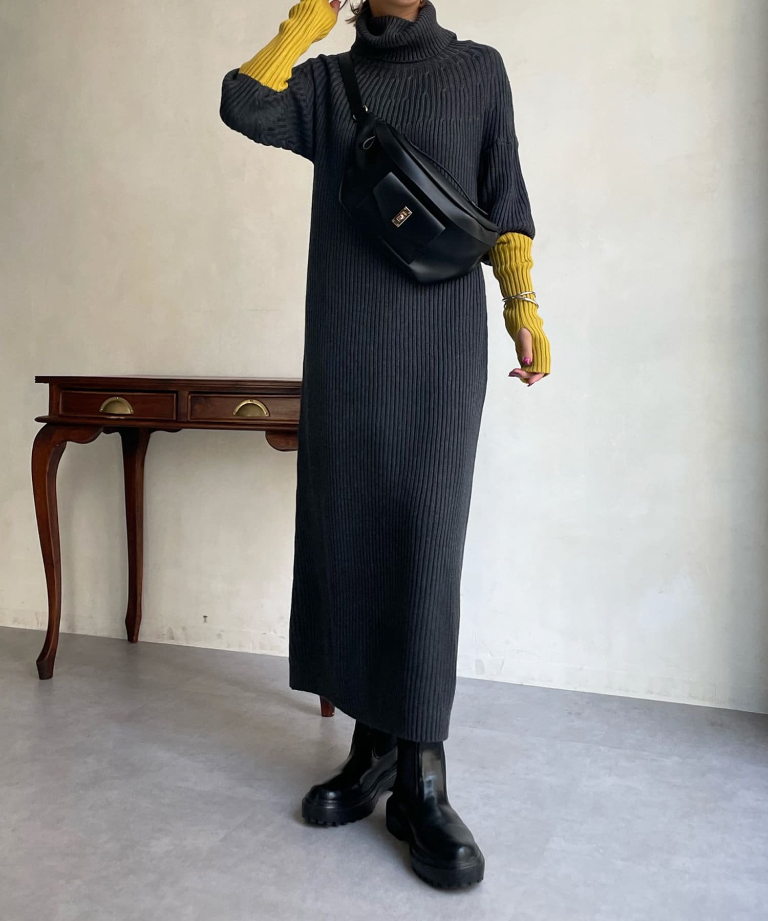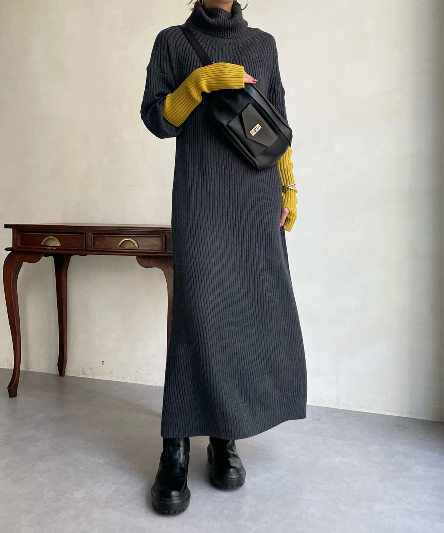 DOUDOU(ドゥドゥ) 【WEB限定】袖配色タートルニットワンピース