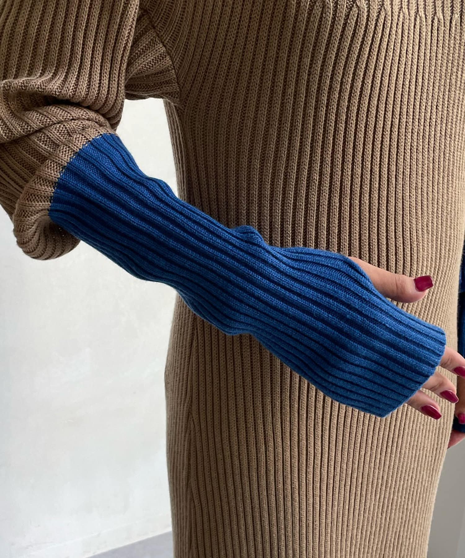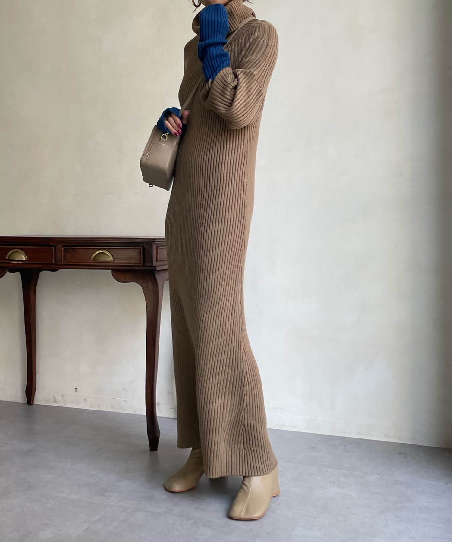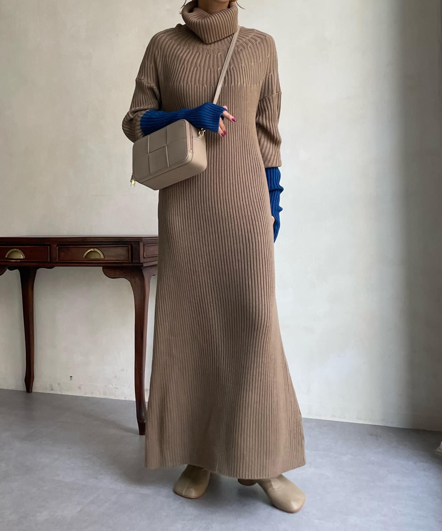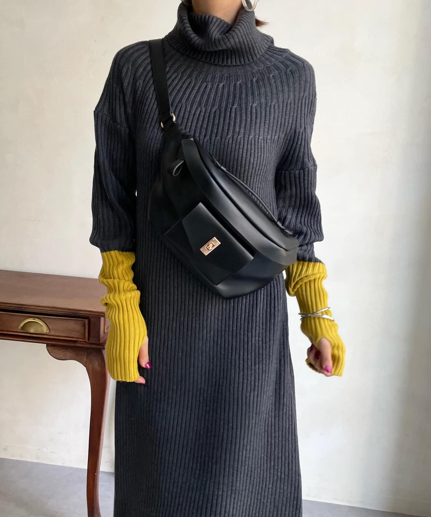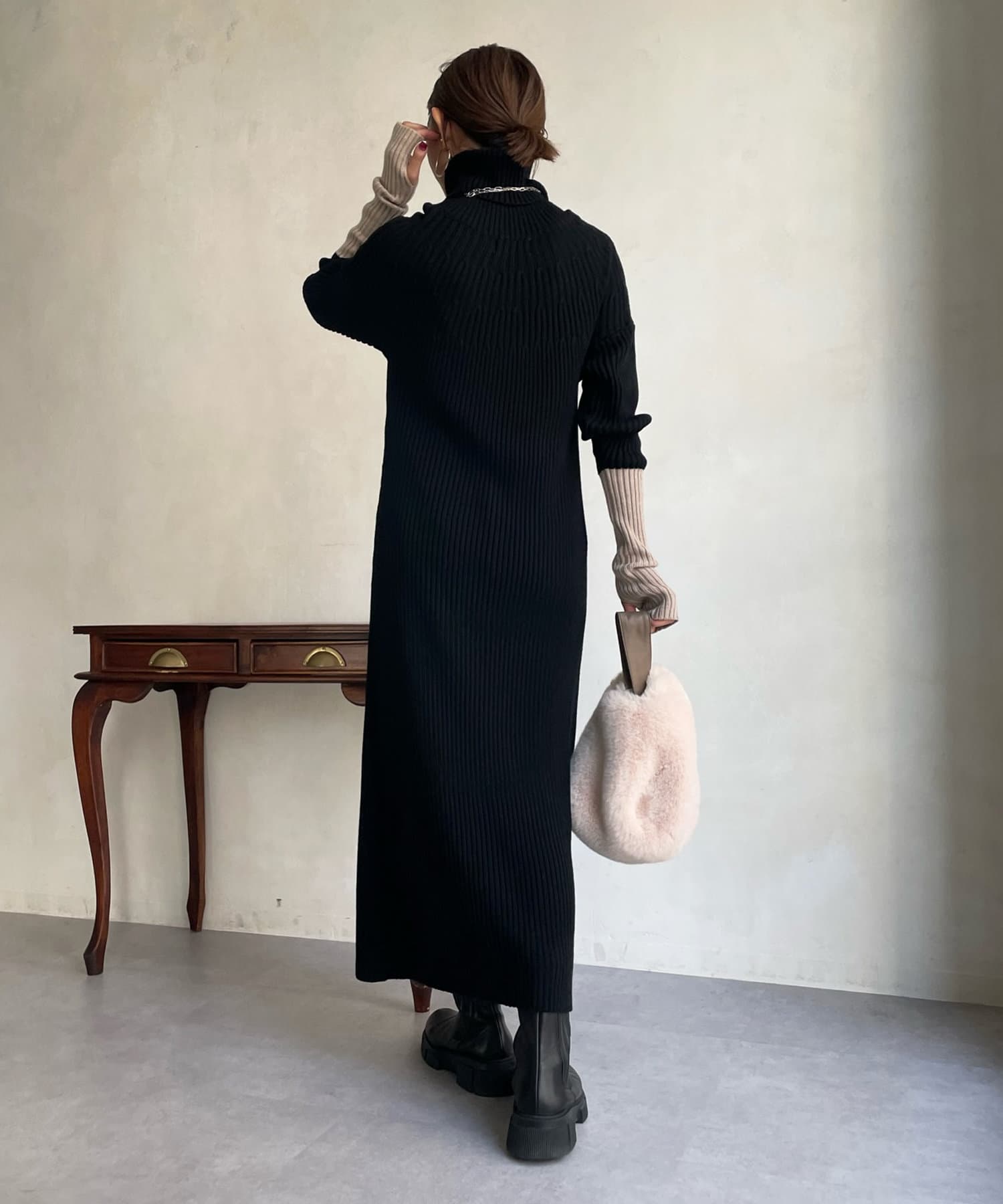 DOUDOU(ドゥドゥ) 【WEB限定】袖配色タートルニットワンピース