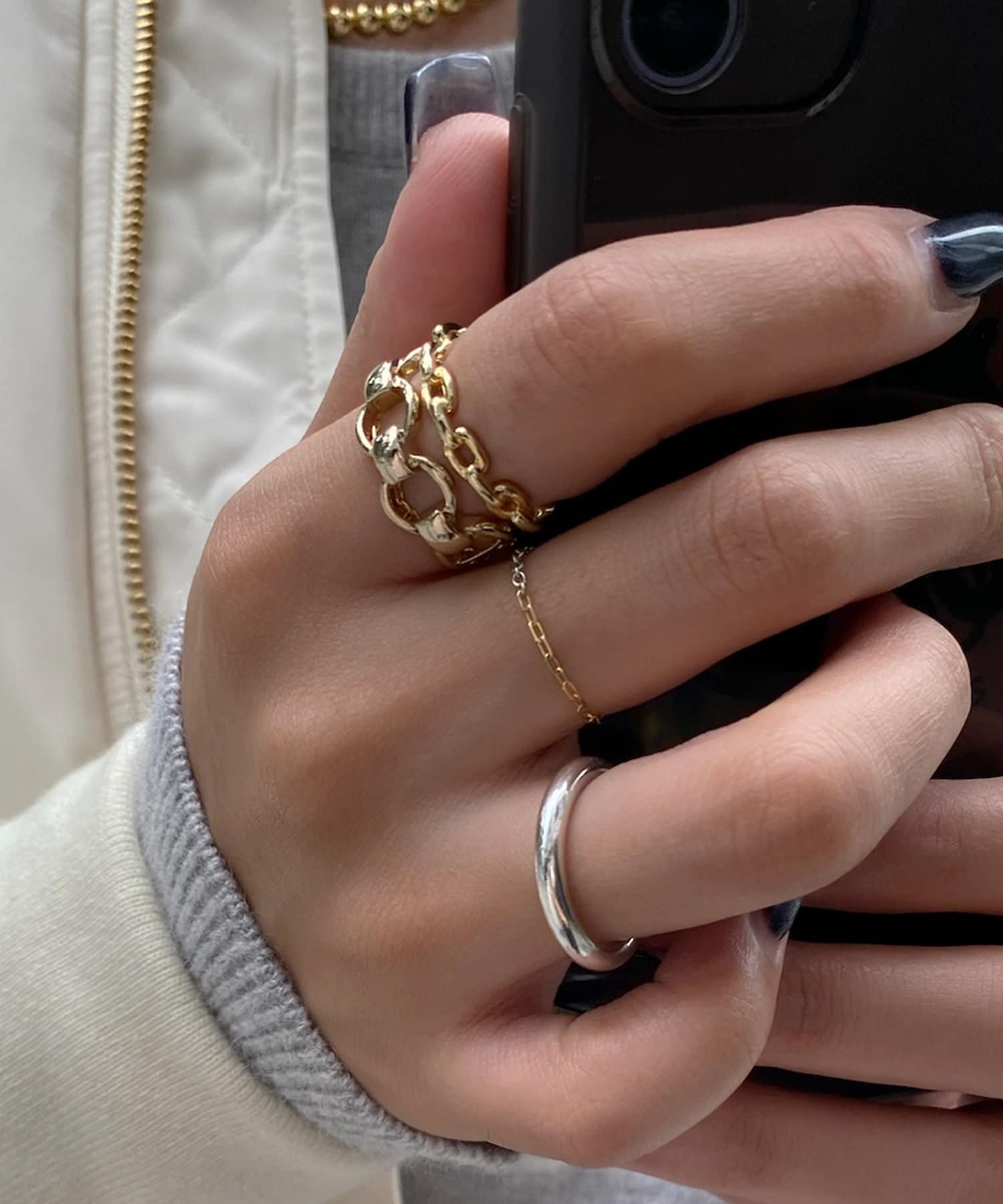 異なるデザインを組み合わせたセットリング。