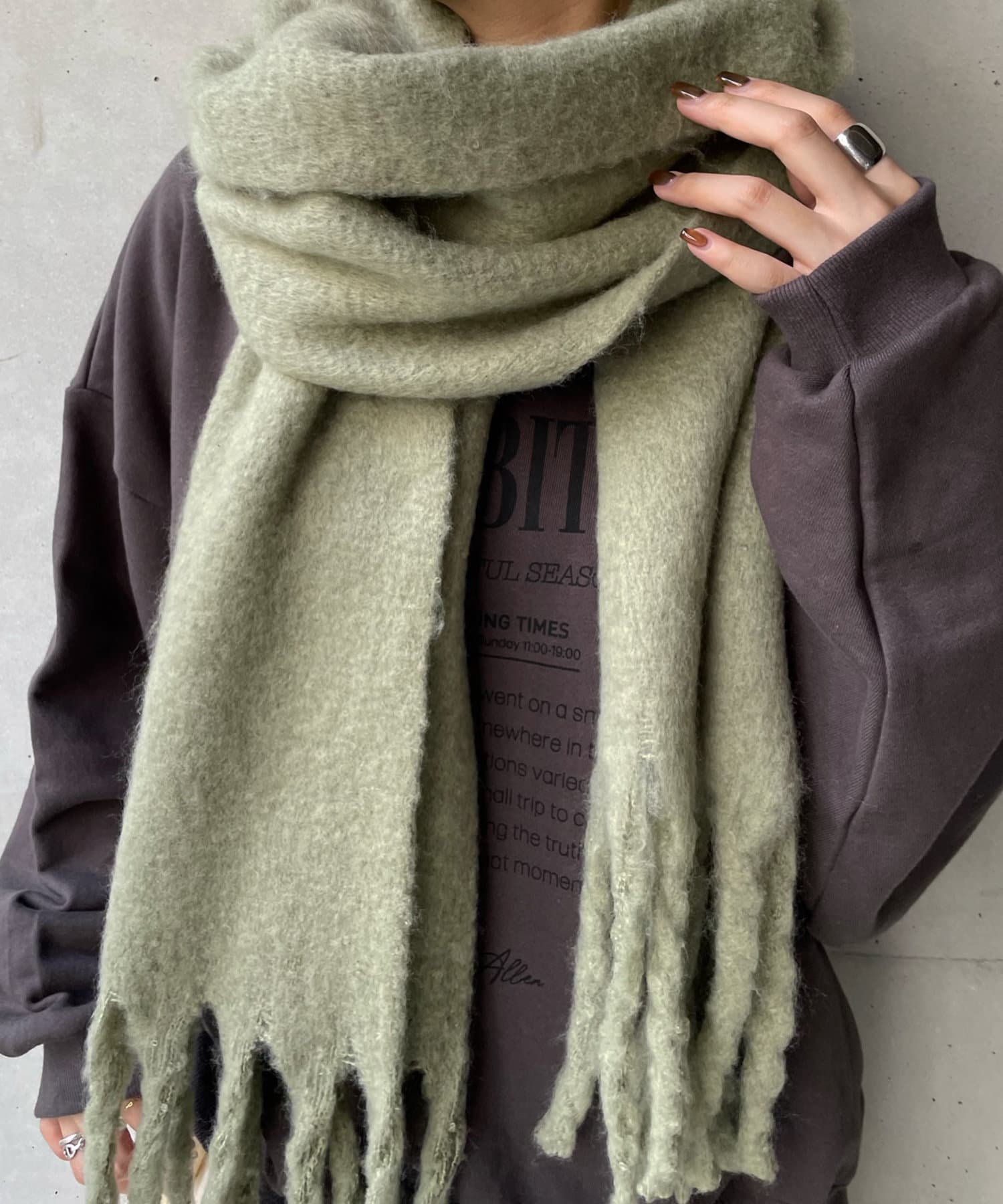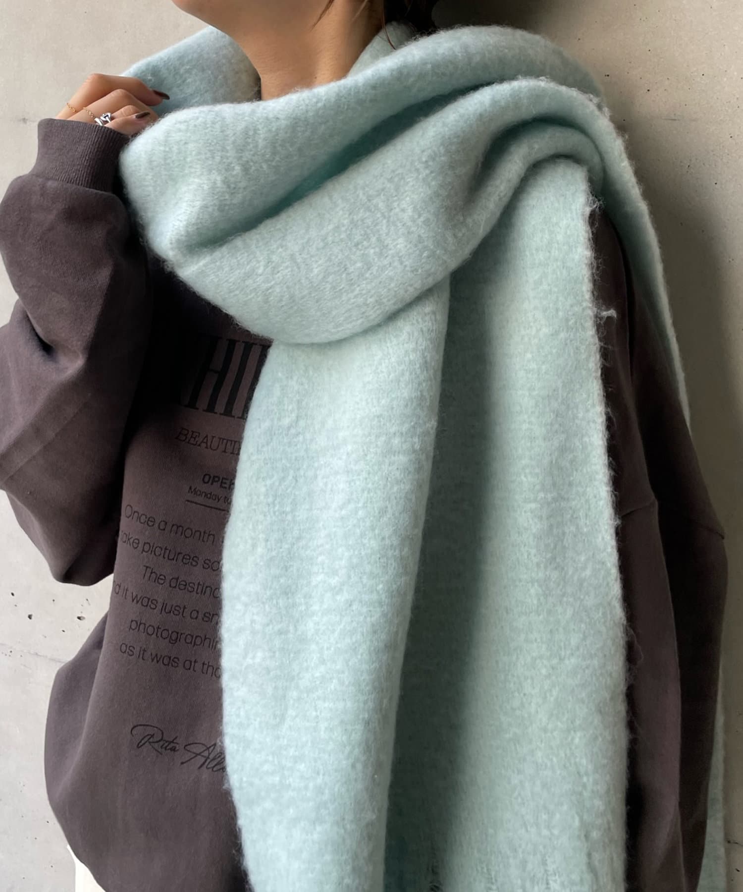 ふっくらと空気を含んだボリューム感が魅力的なストール。