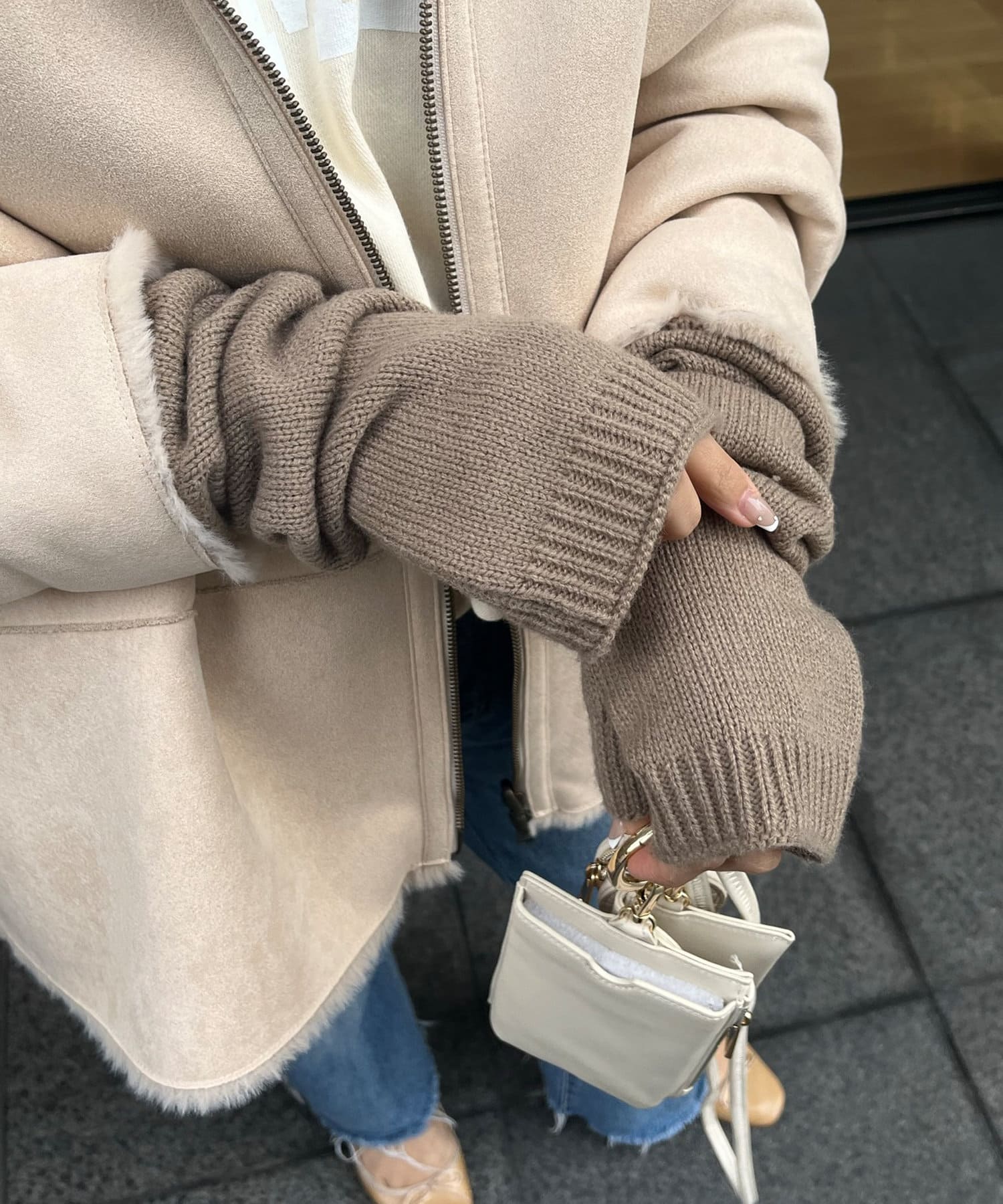 手の甲をしっかりと覆ってくれるアームウォーマーは今年マストの小物。