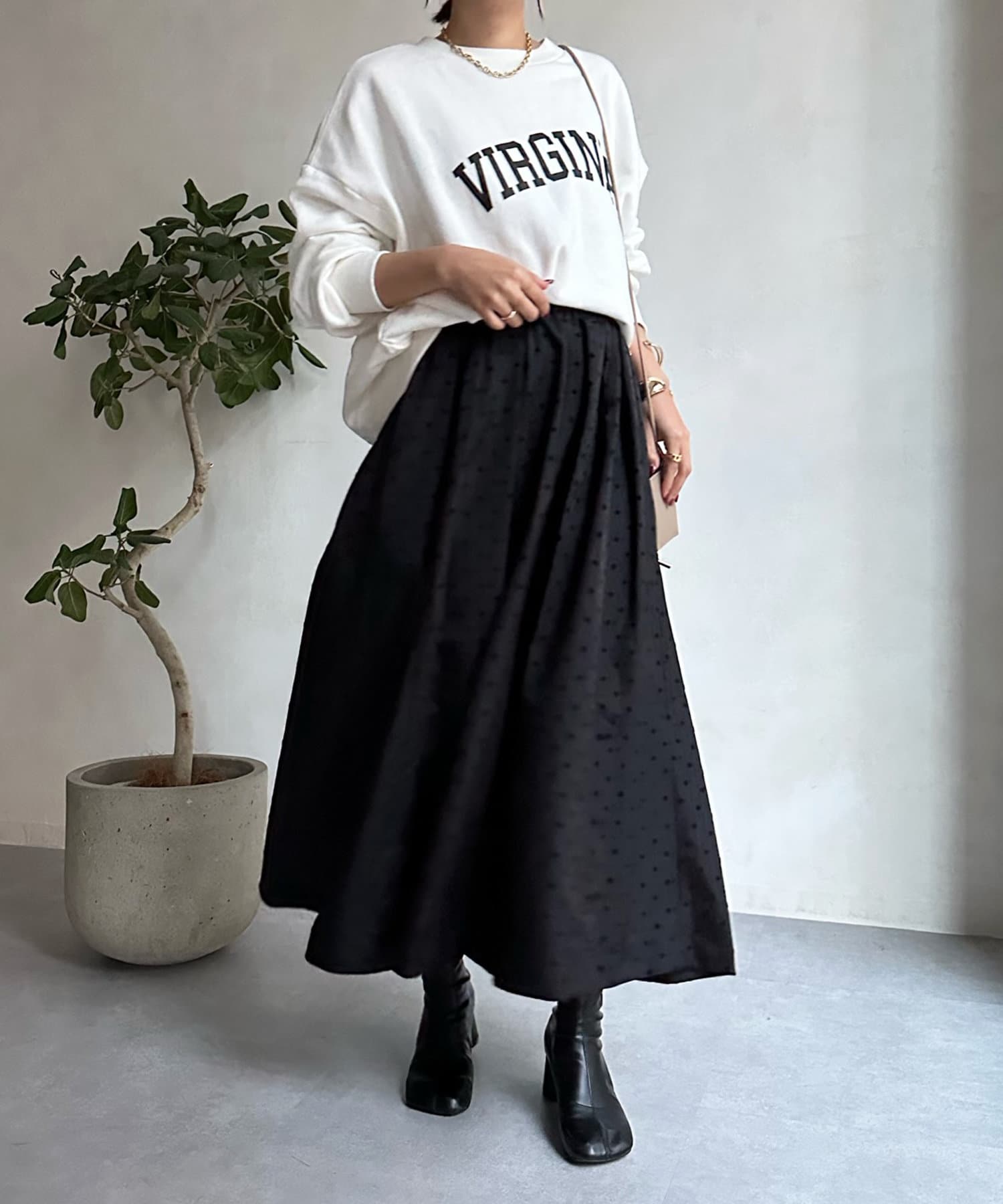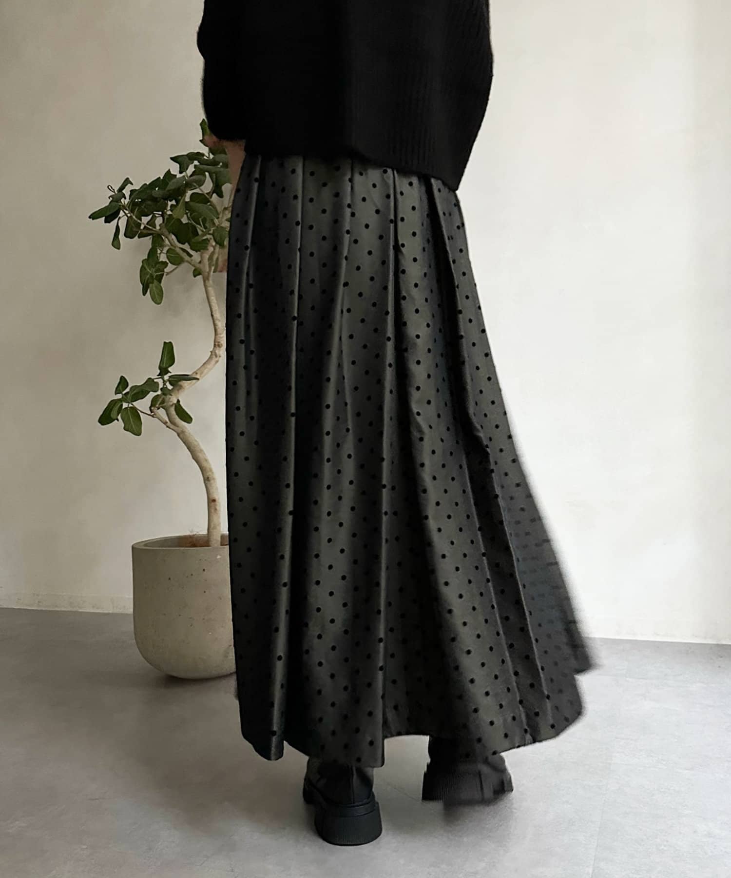 DOUDOU(ドゥドゥ) ドットフロッキーフレアスカート