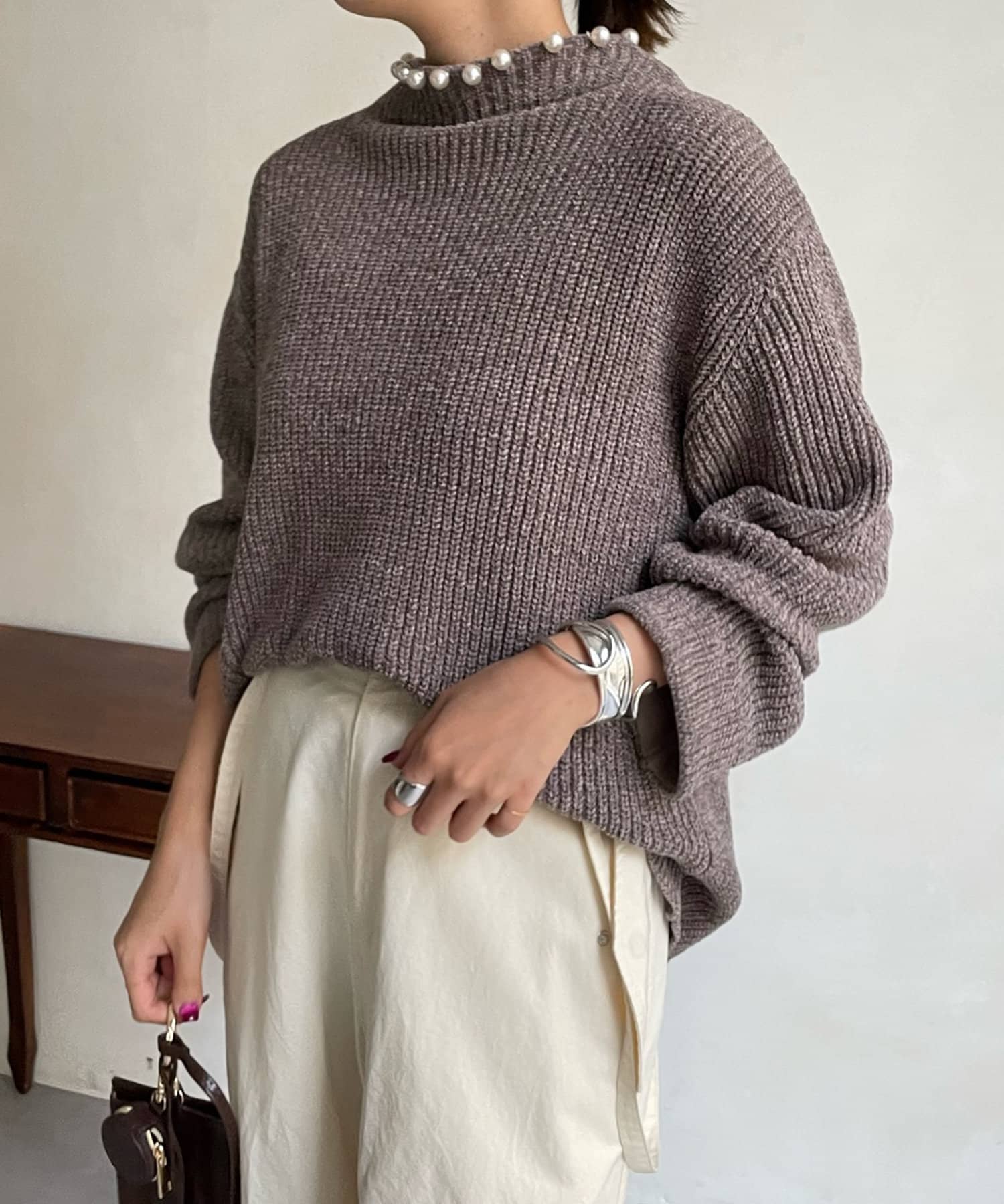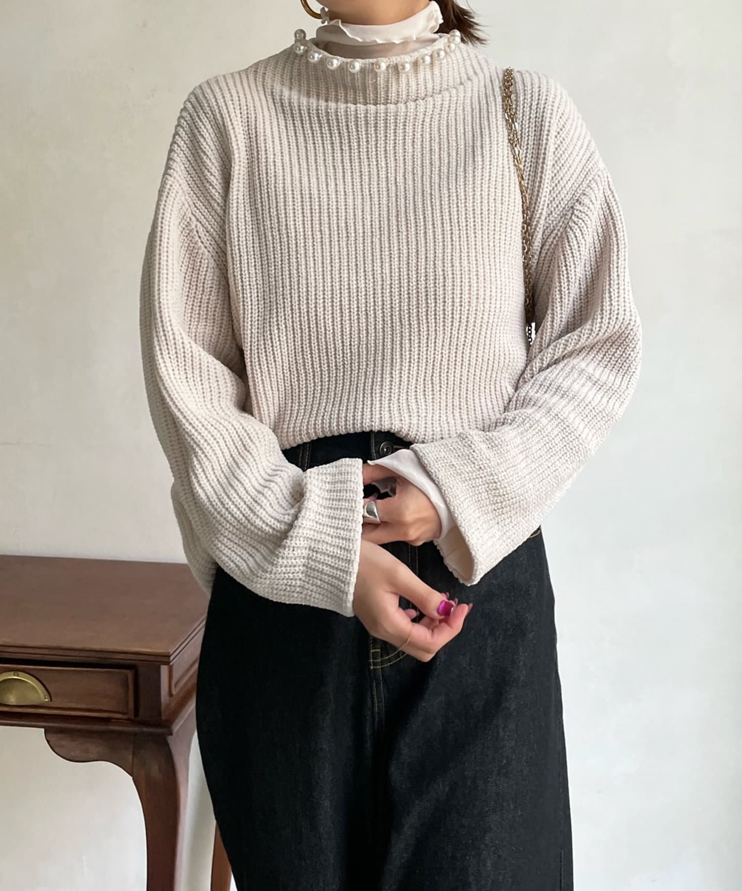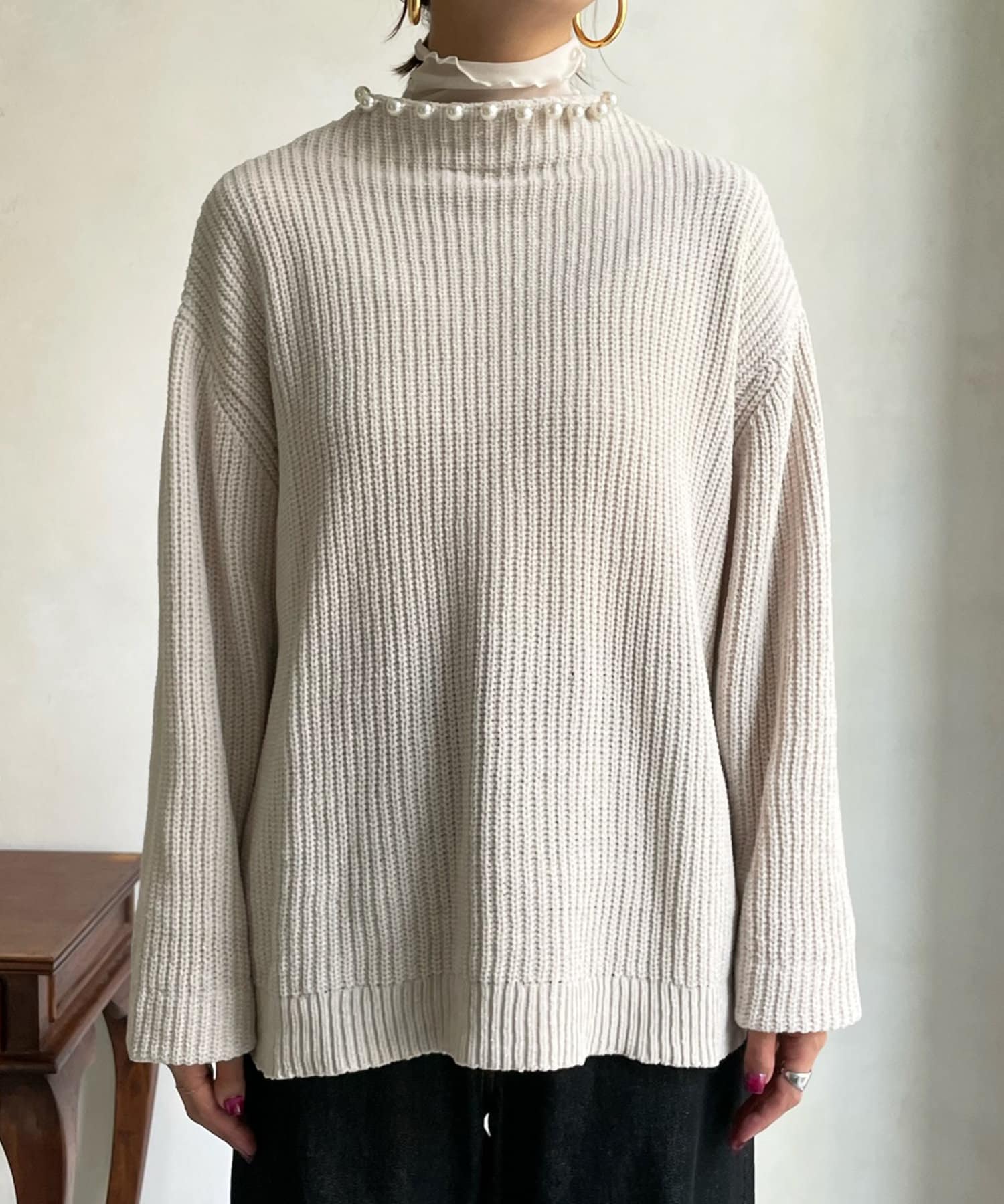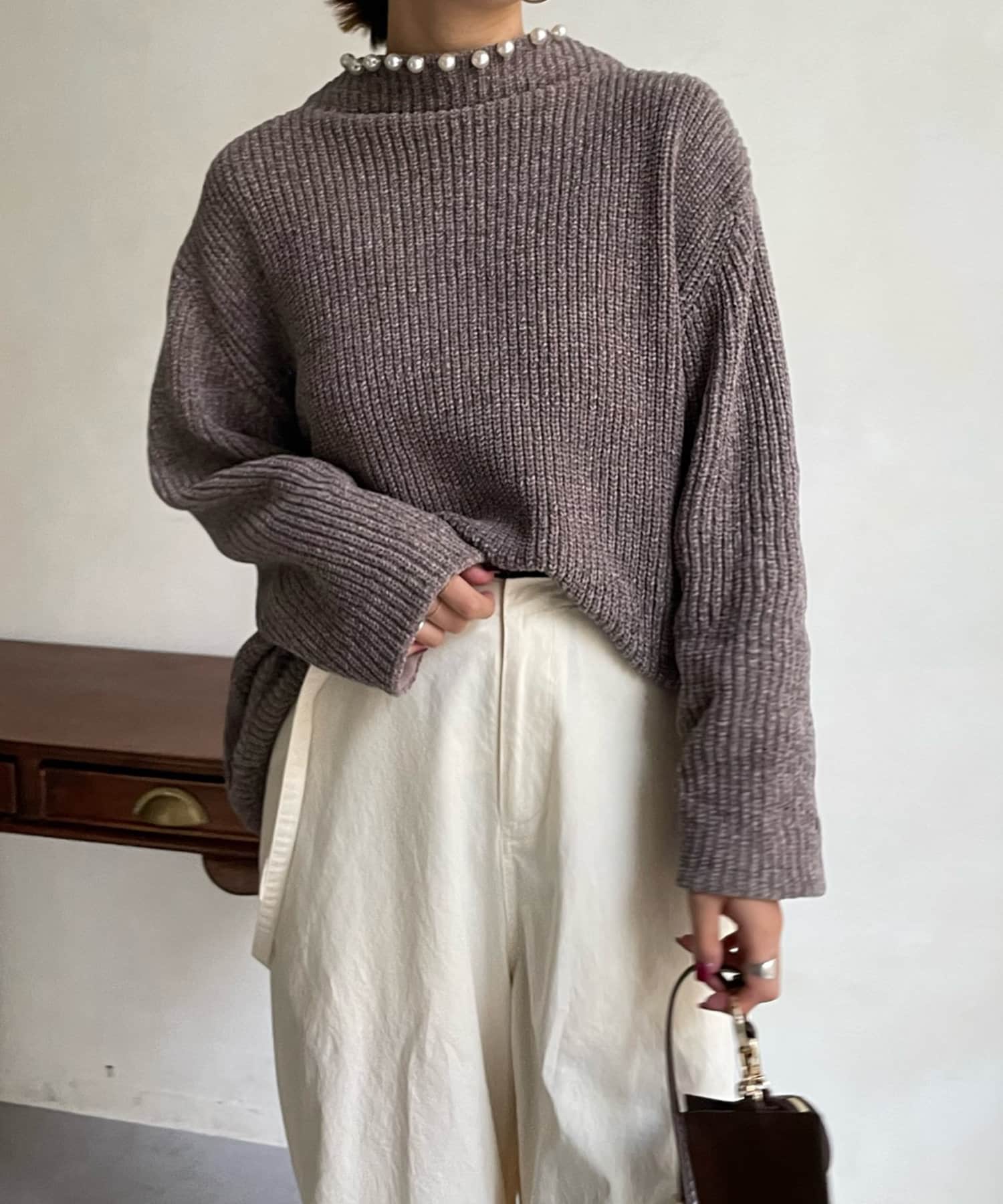 TOP > DOUDOU > レディース > トップス > ニット/セーター > 【WEB限定】襟パール付モールヤーンニット