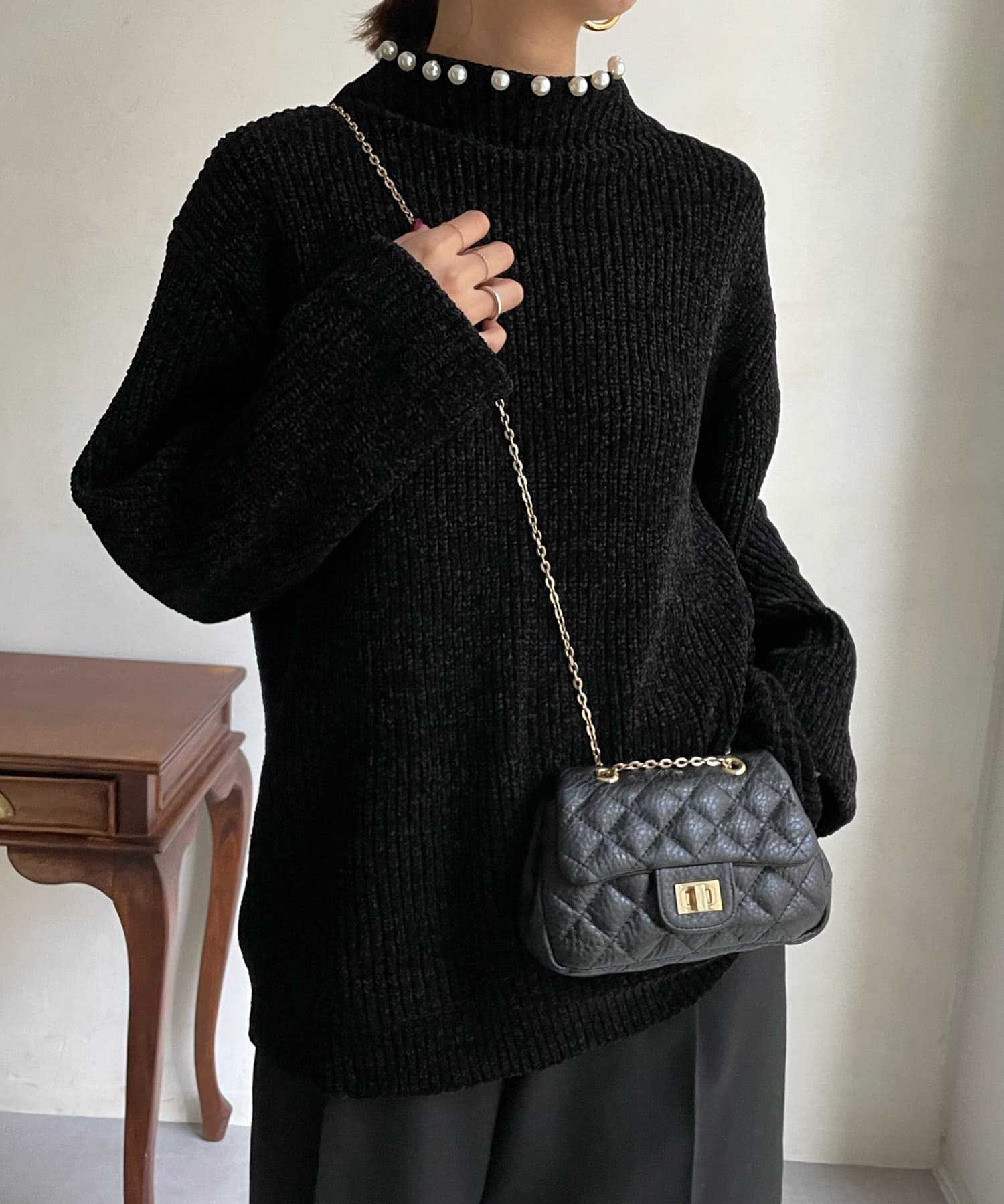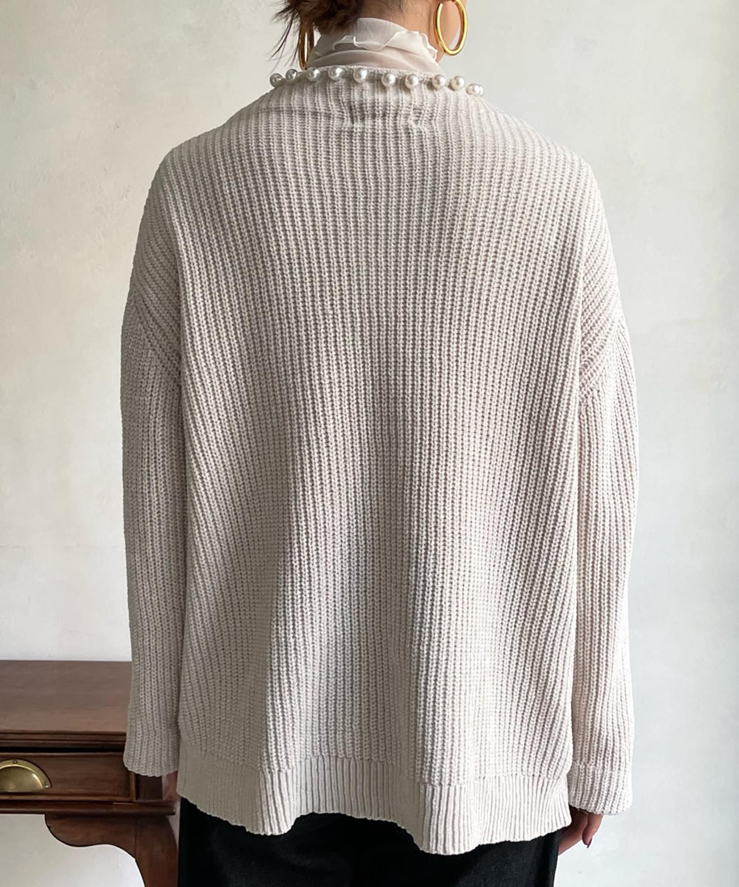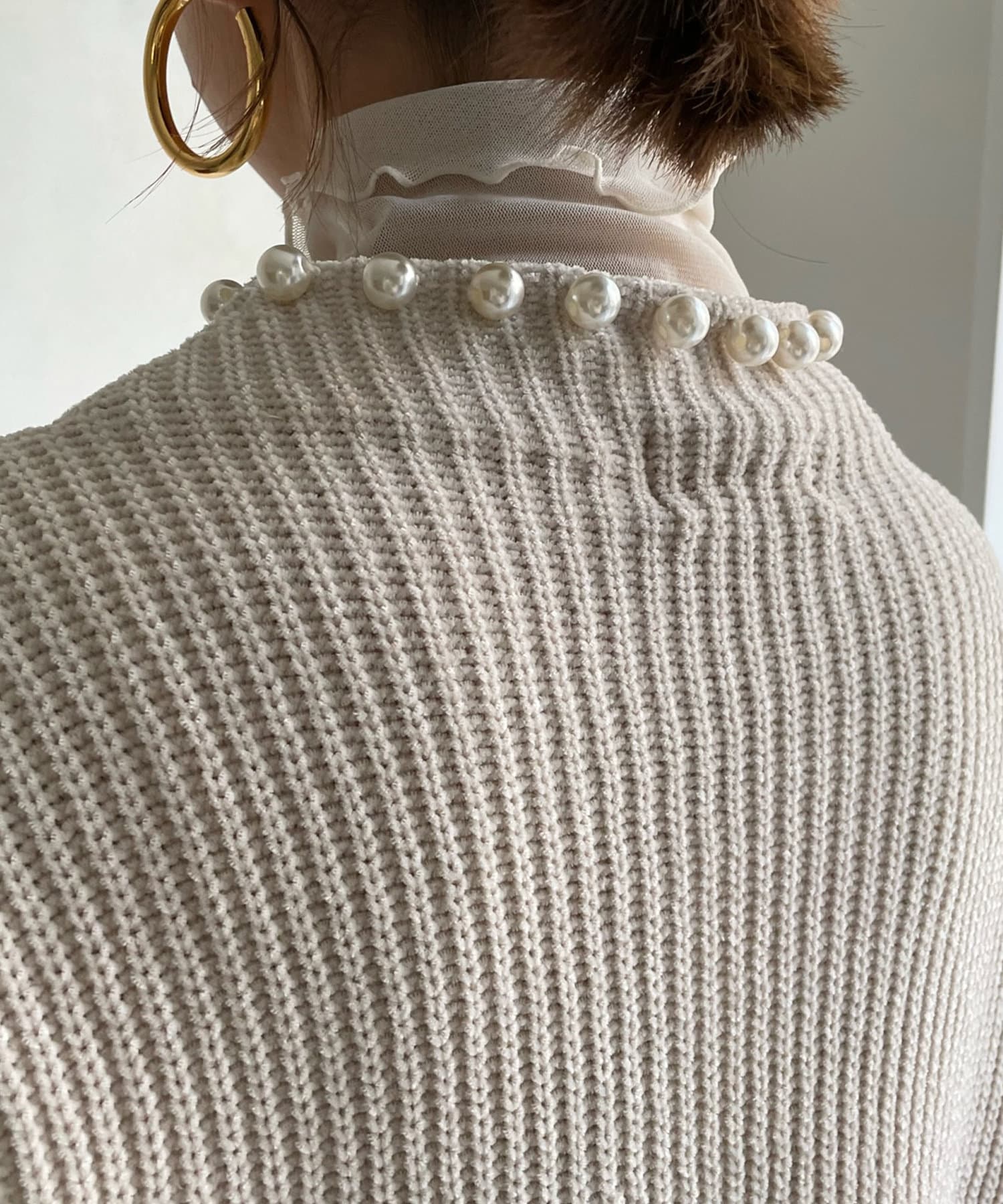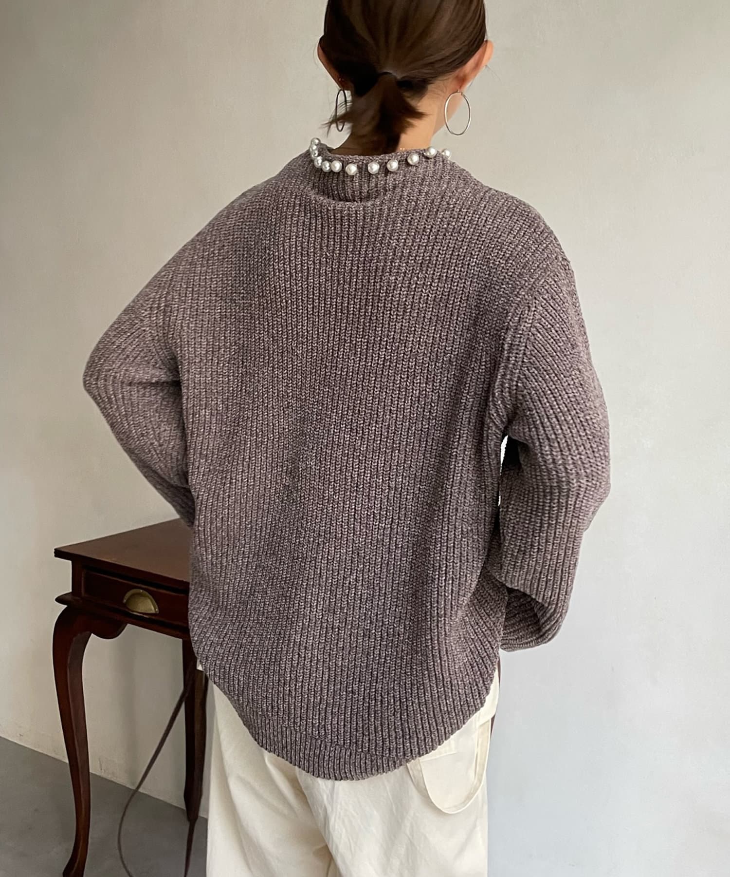 • DOUDOU(ドゥドゥ) 【WEB限定】襟パール付モールヤーンニット