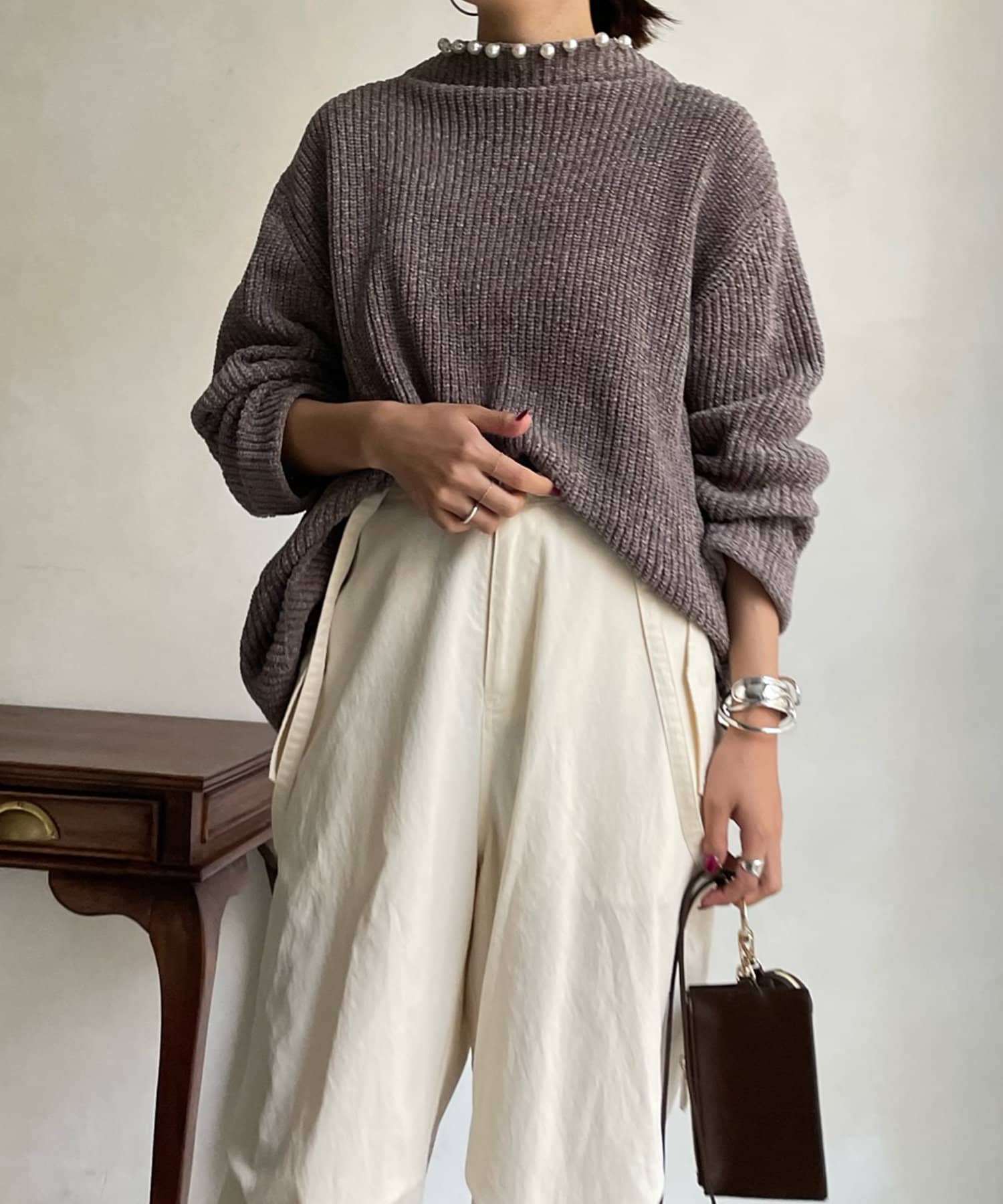ほどよい肉感があり、柔らかいモールヤーンのトレンド素材を使用。