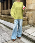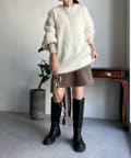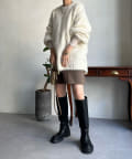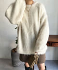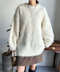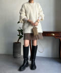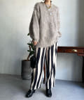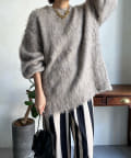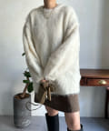 起毛加工を掛け、ウォーム感のある素材で仕上げた今年の旬顔ニット。