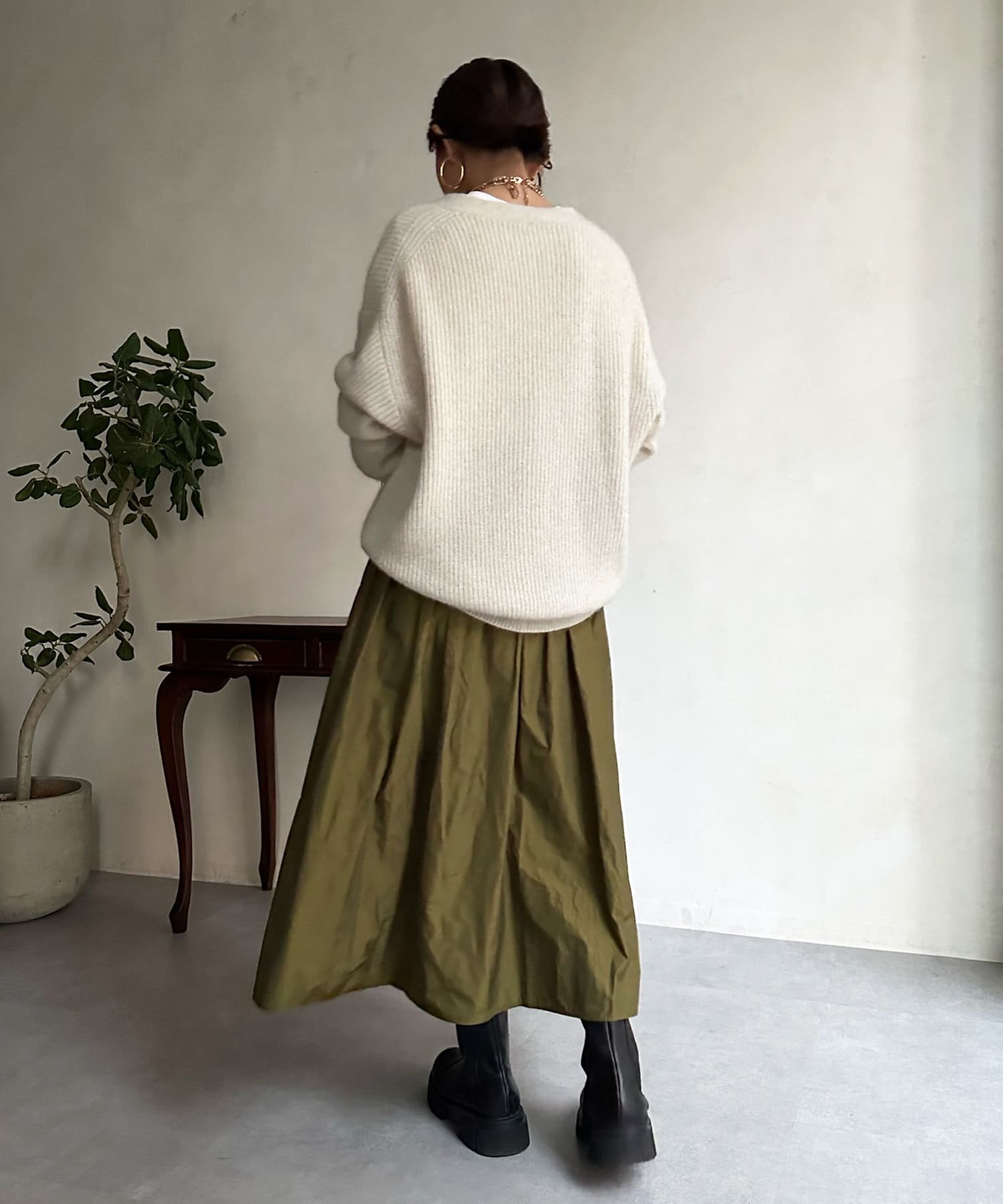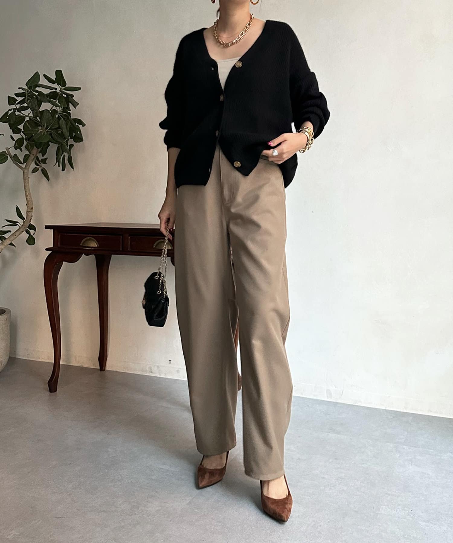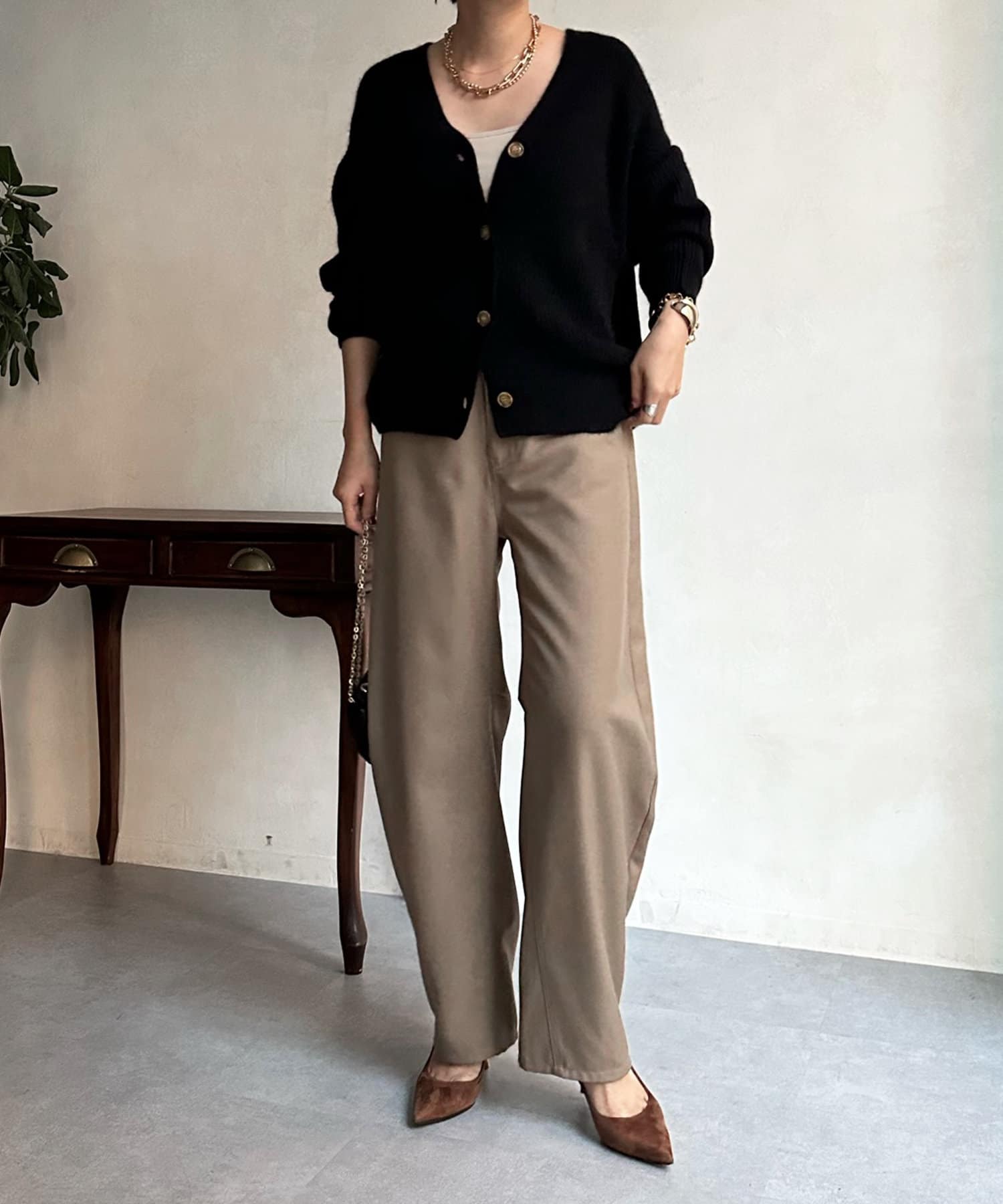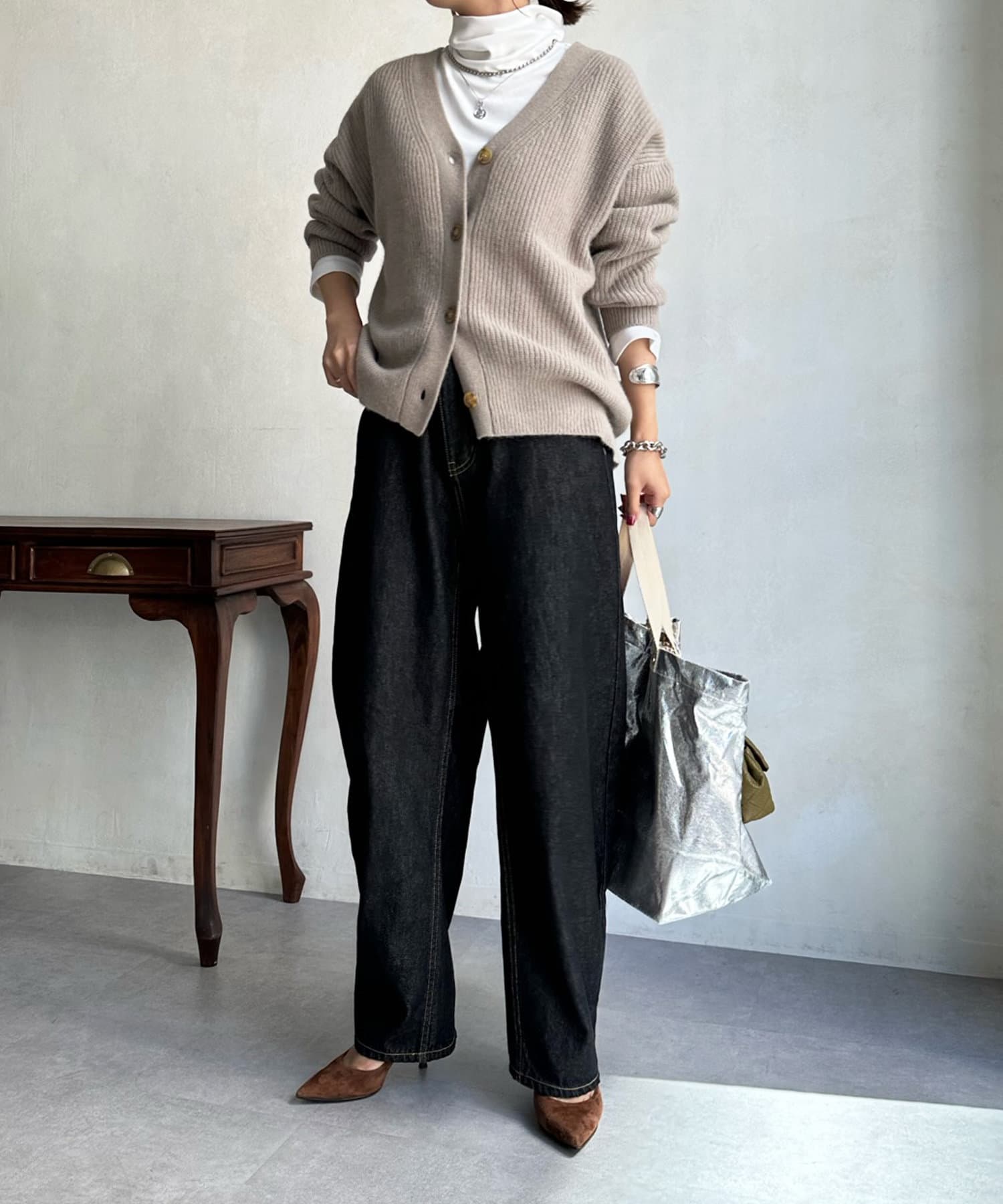 程よいゆとり感を確保したサイジングで、ブラウスやタートルネックなどインナーとの重ね着で真冬までばっちり着ていただけます。