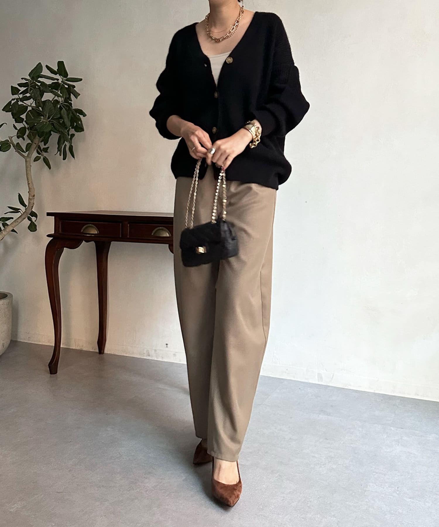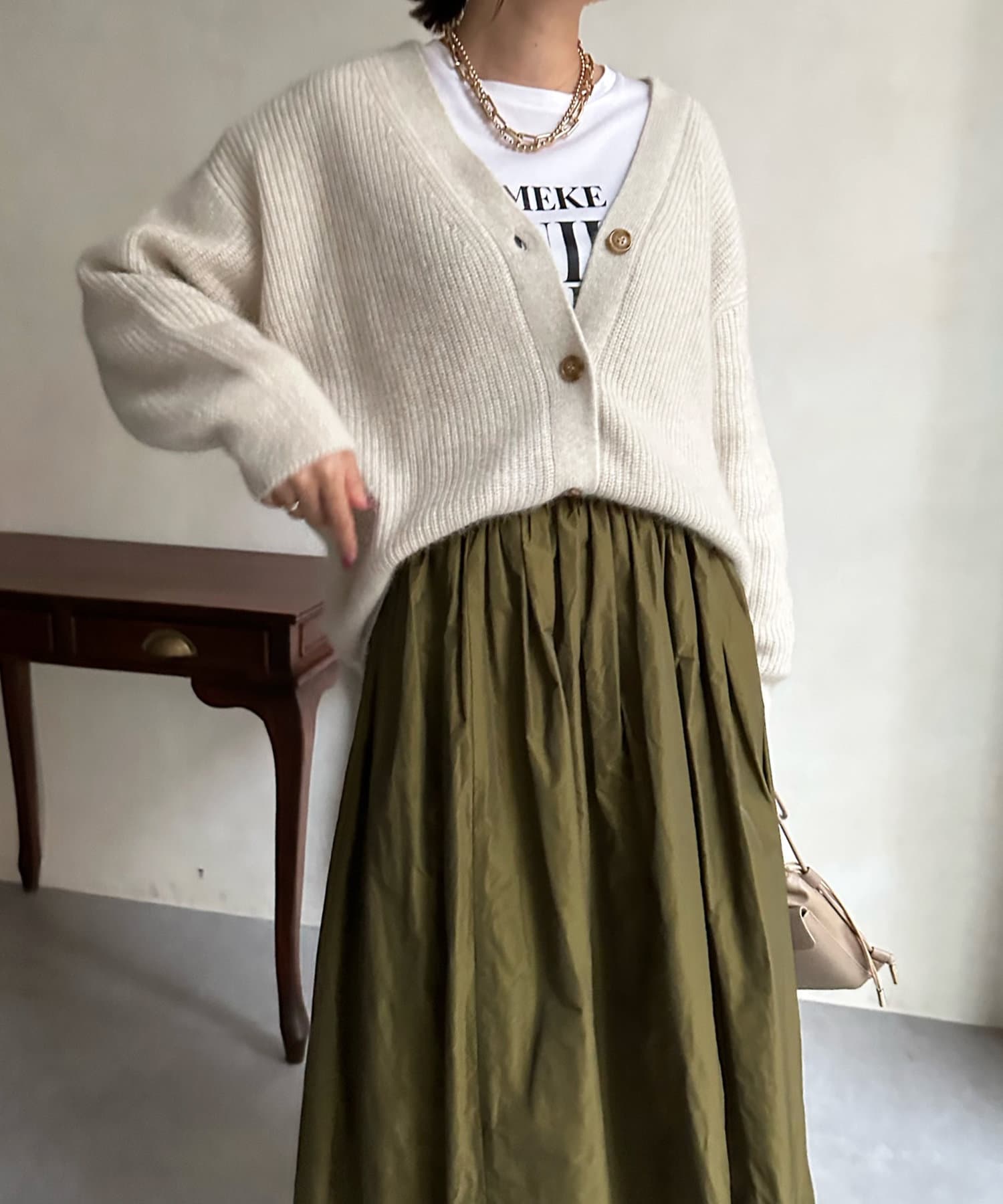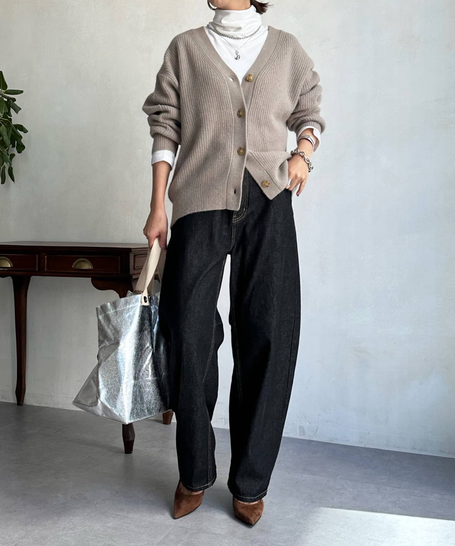 程よいゆとり感を確保したサイジングで、ブラウスやタートルネックなどインナーとの重ね着で真冬までばっちり着ていただけます。