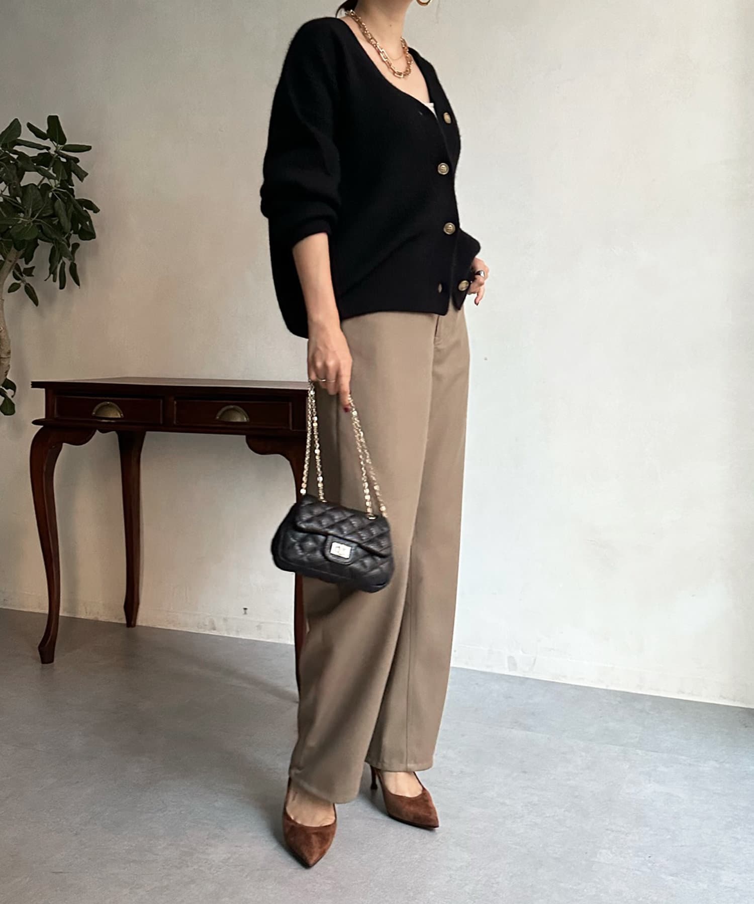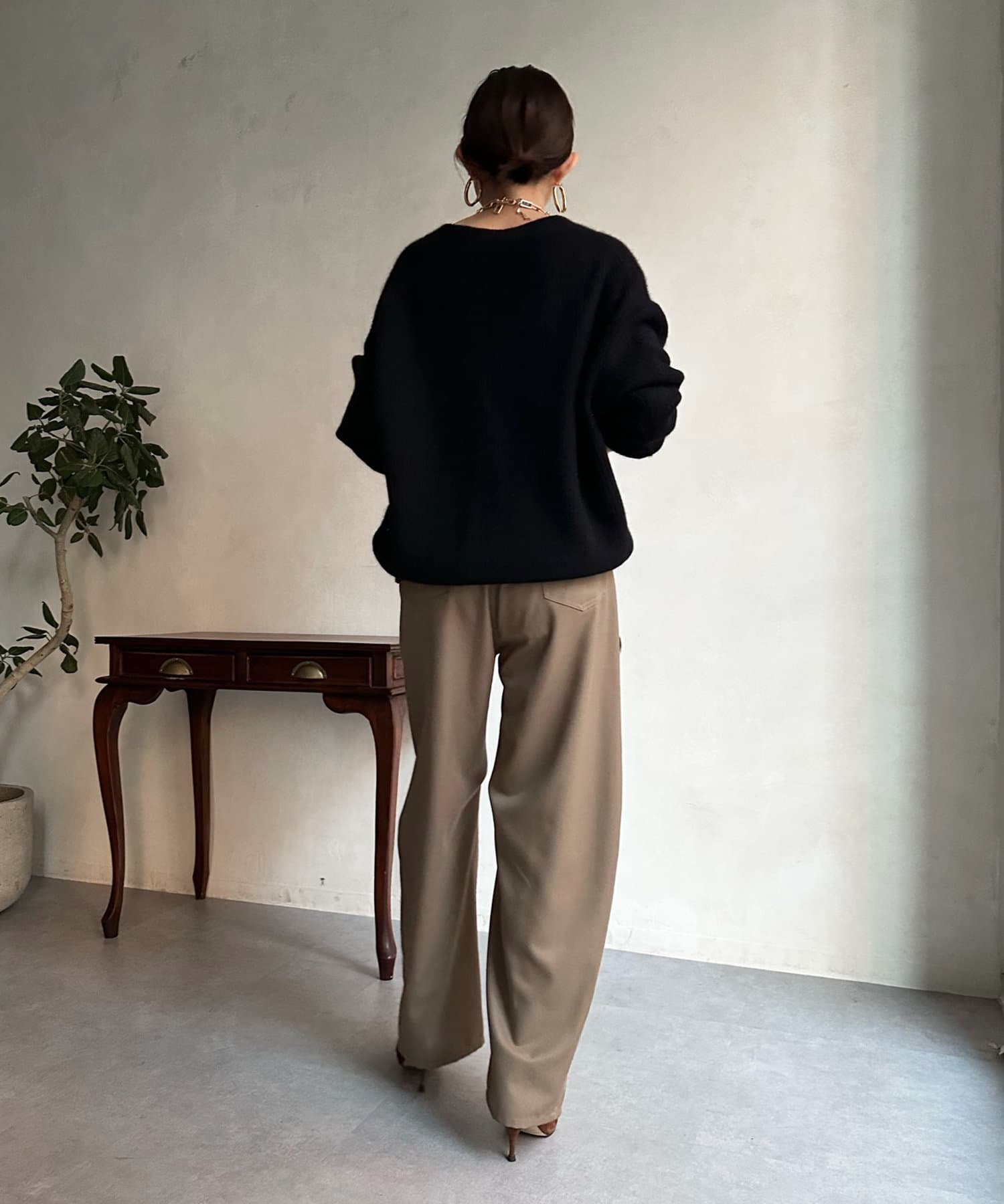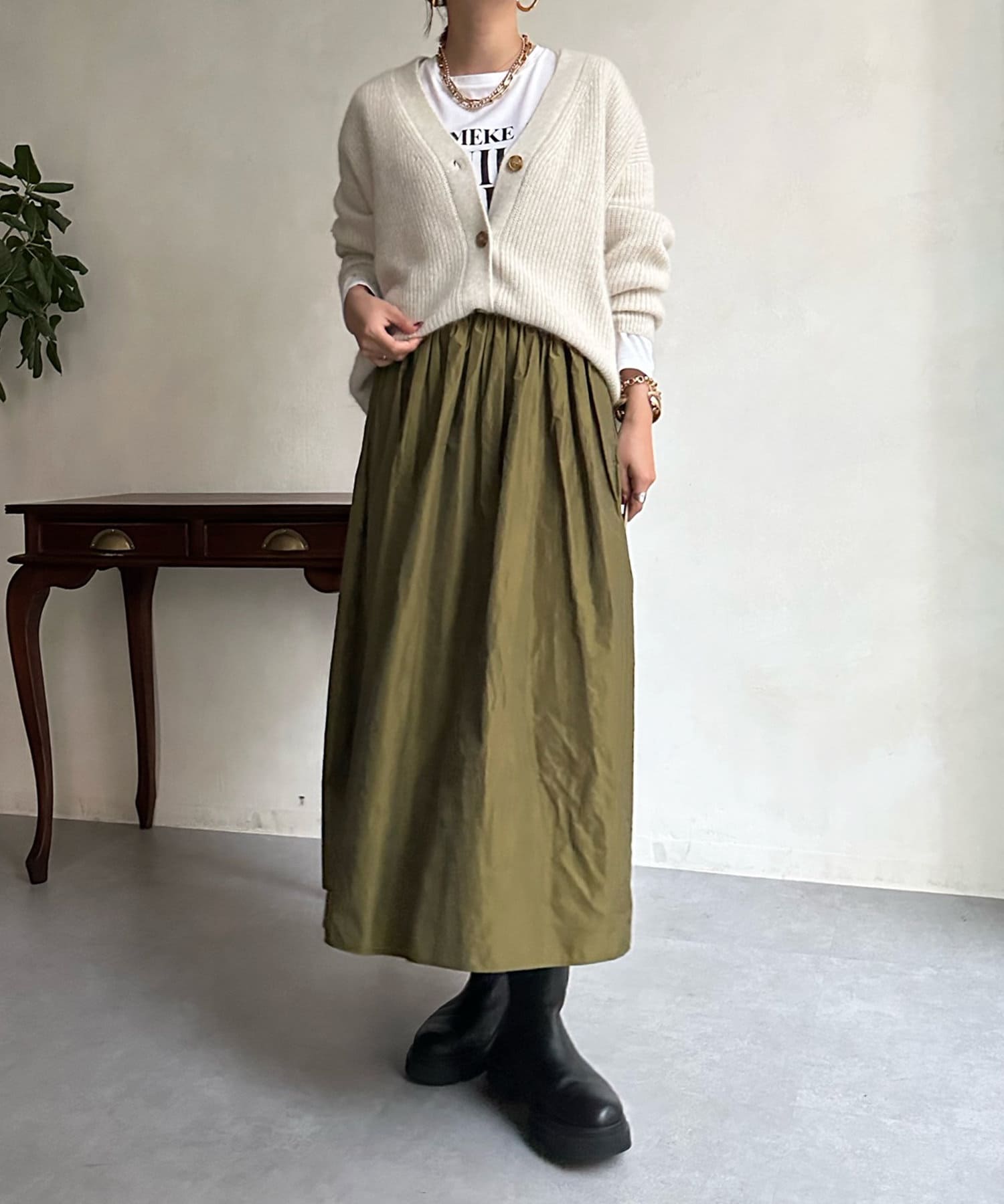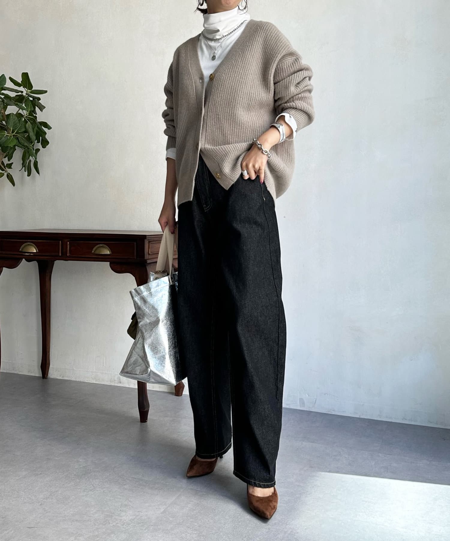 程よいゆとり感を確保したサイジングで、ブラウスやタートルネックなどインナーとの重ね着で真冬までばっちり着ていただけます。