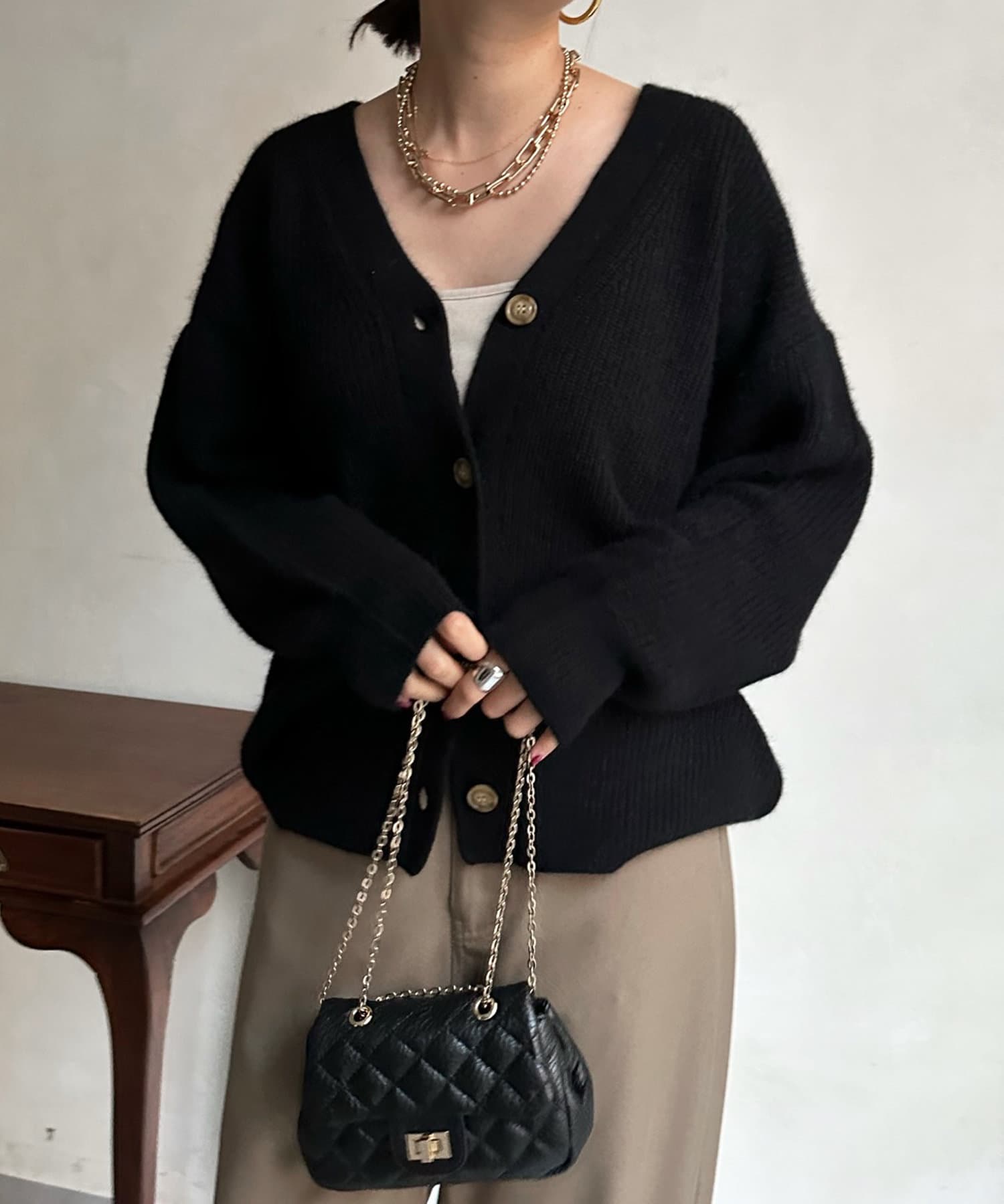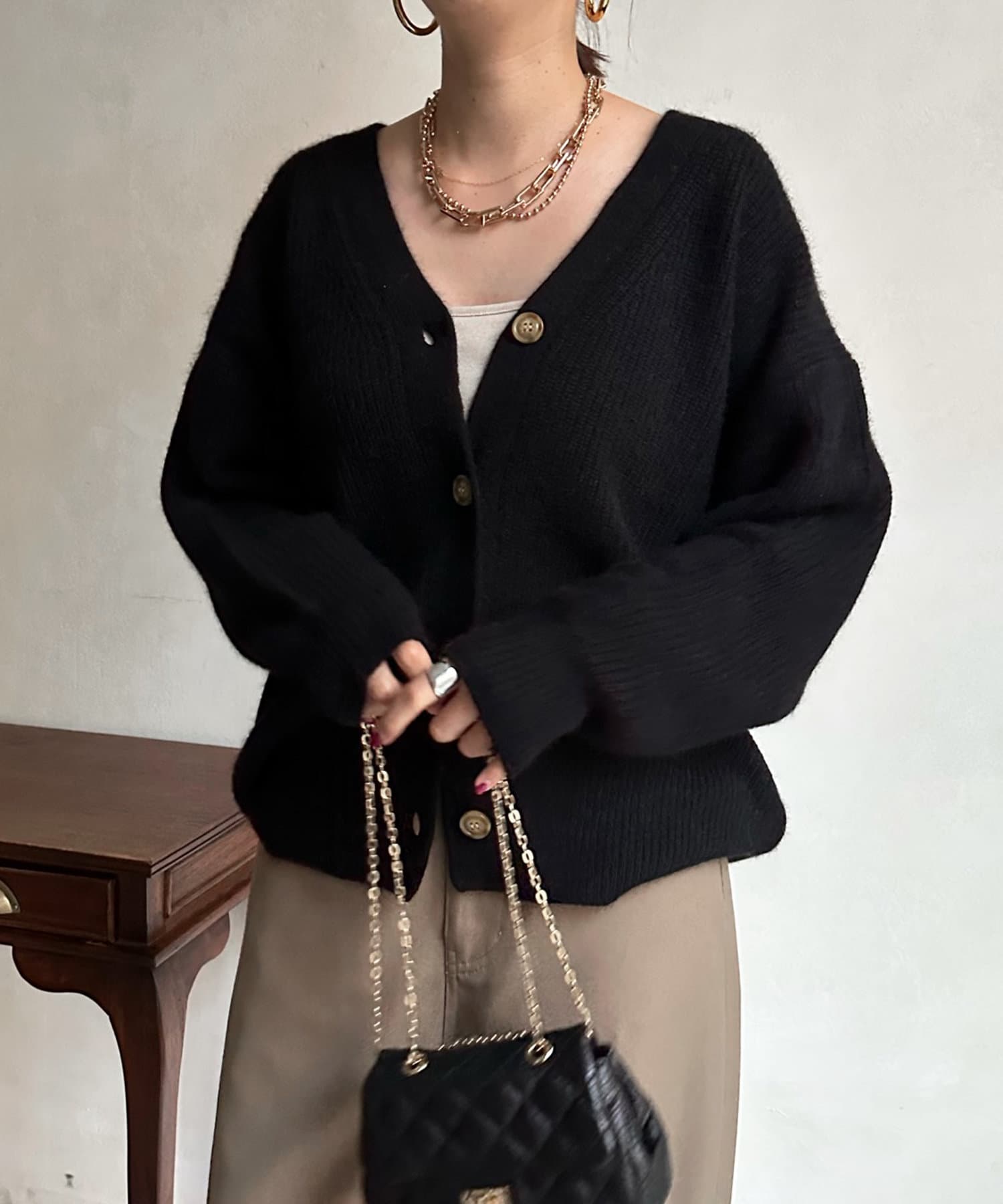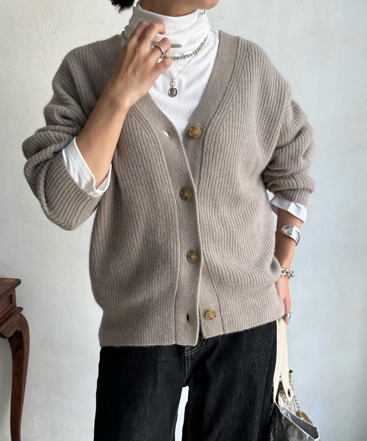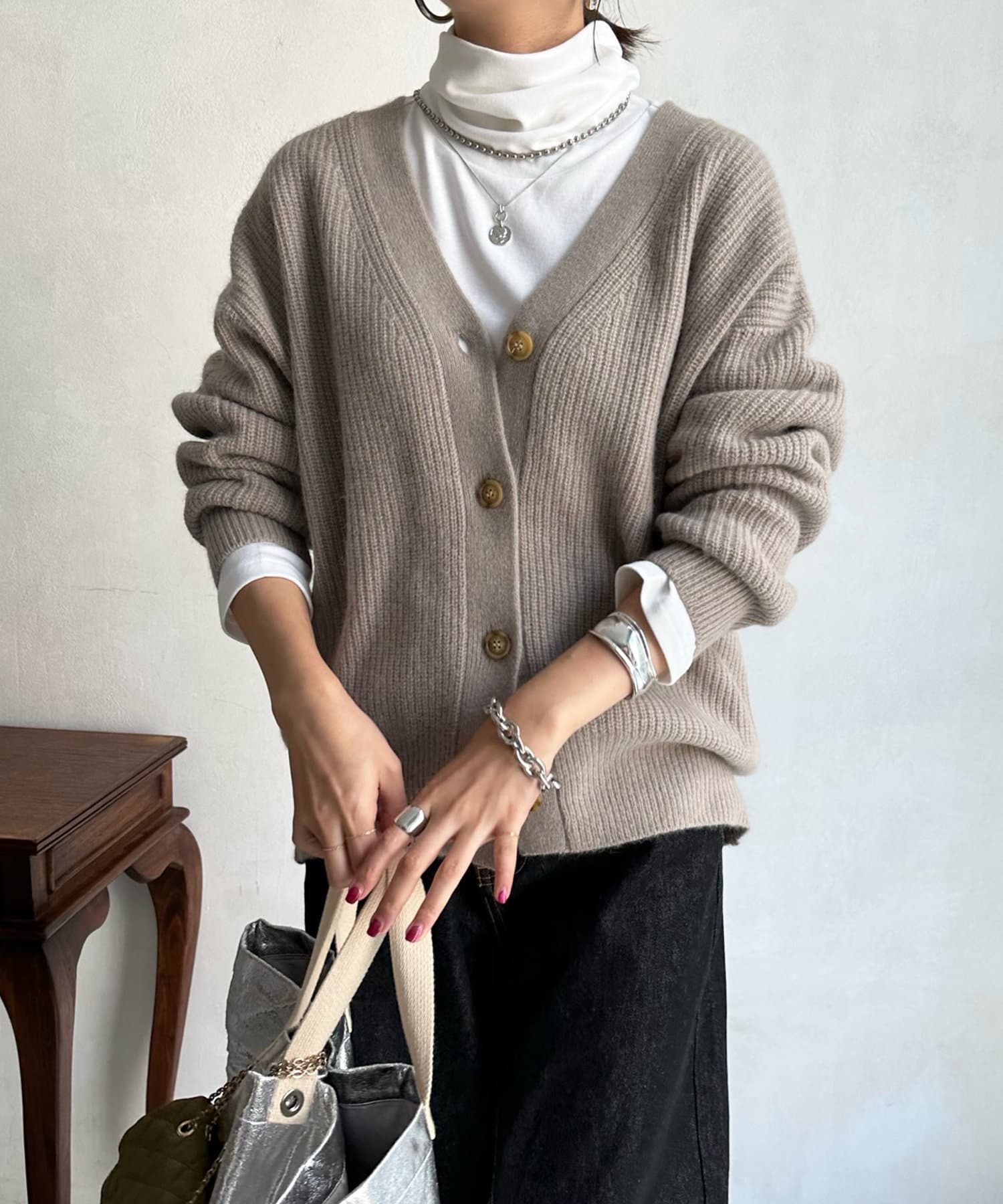 フォックスウール畦カーディガン