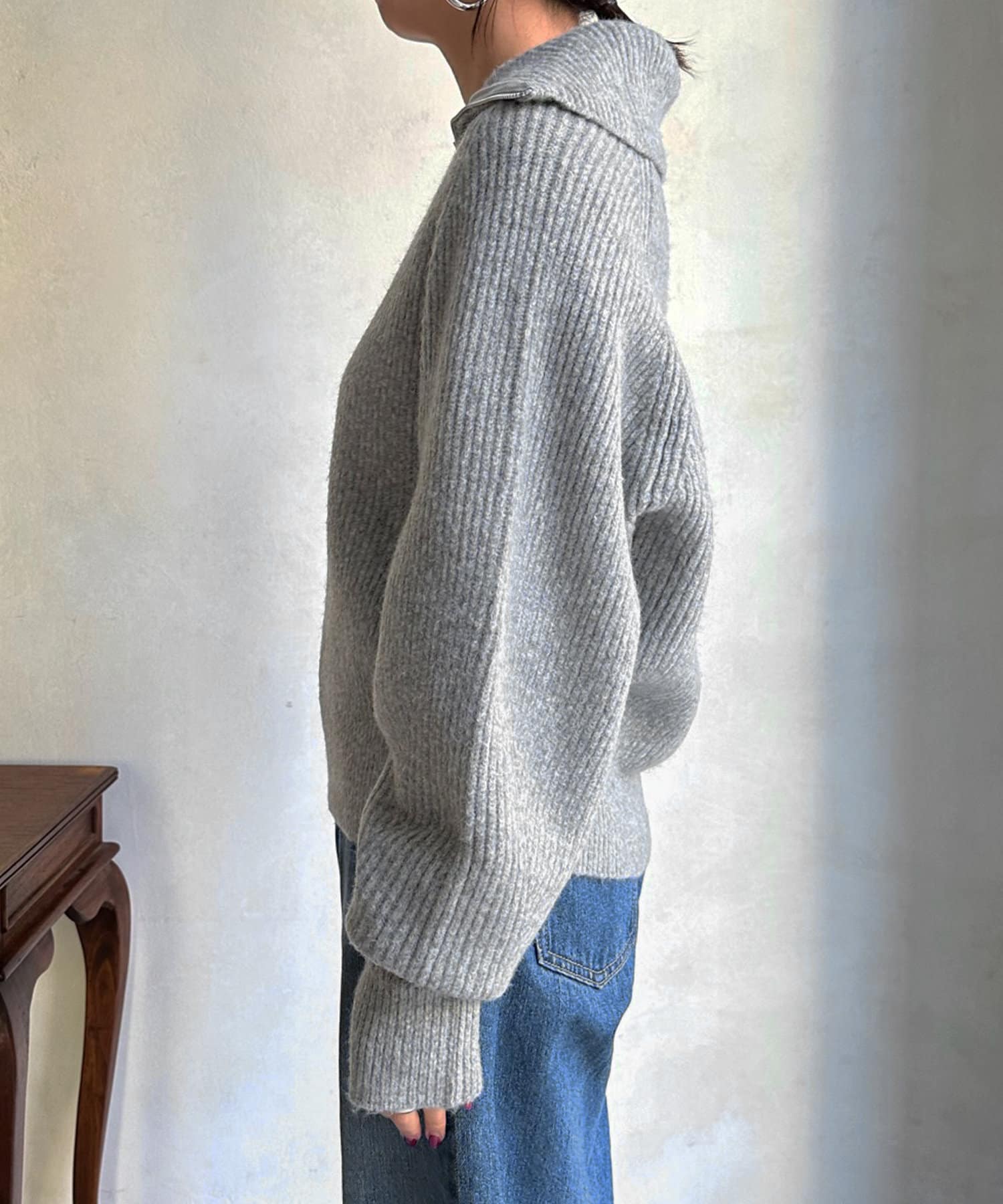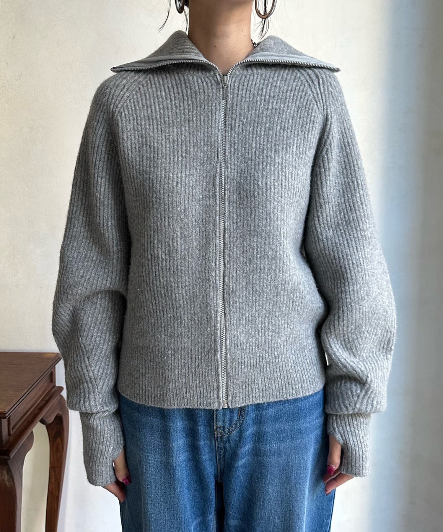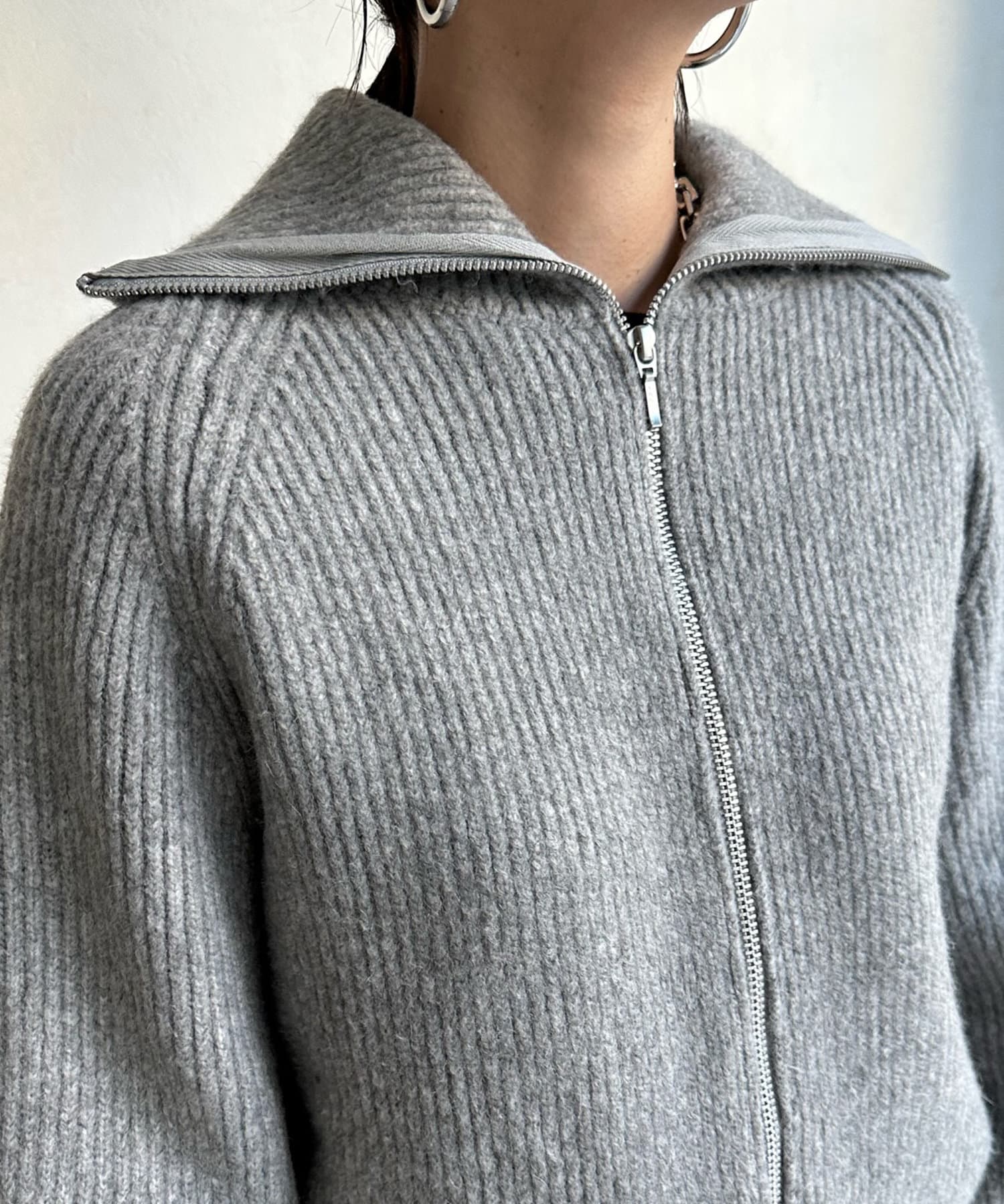 ウール×アンゴラ混のニットでとっても暖かく着られるジップニット。