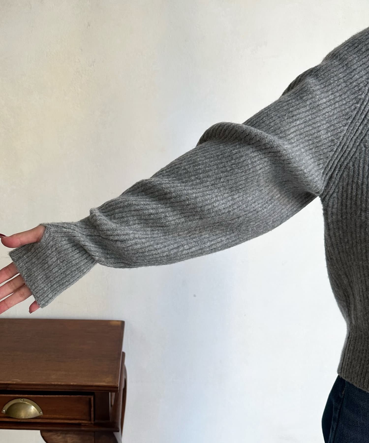 着ると丸みのでるお袖のボリューム感が、カジュアルながらも女性らしさプラス。また、長めのお袖に施したフィンガーホールがアクセントになってくれます。