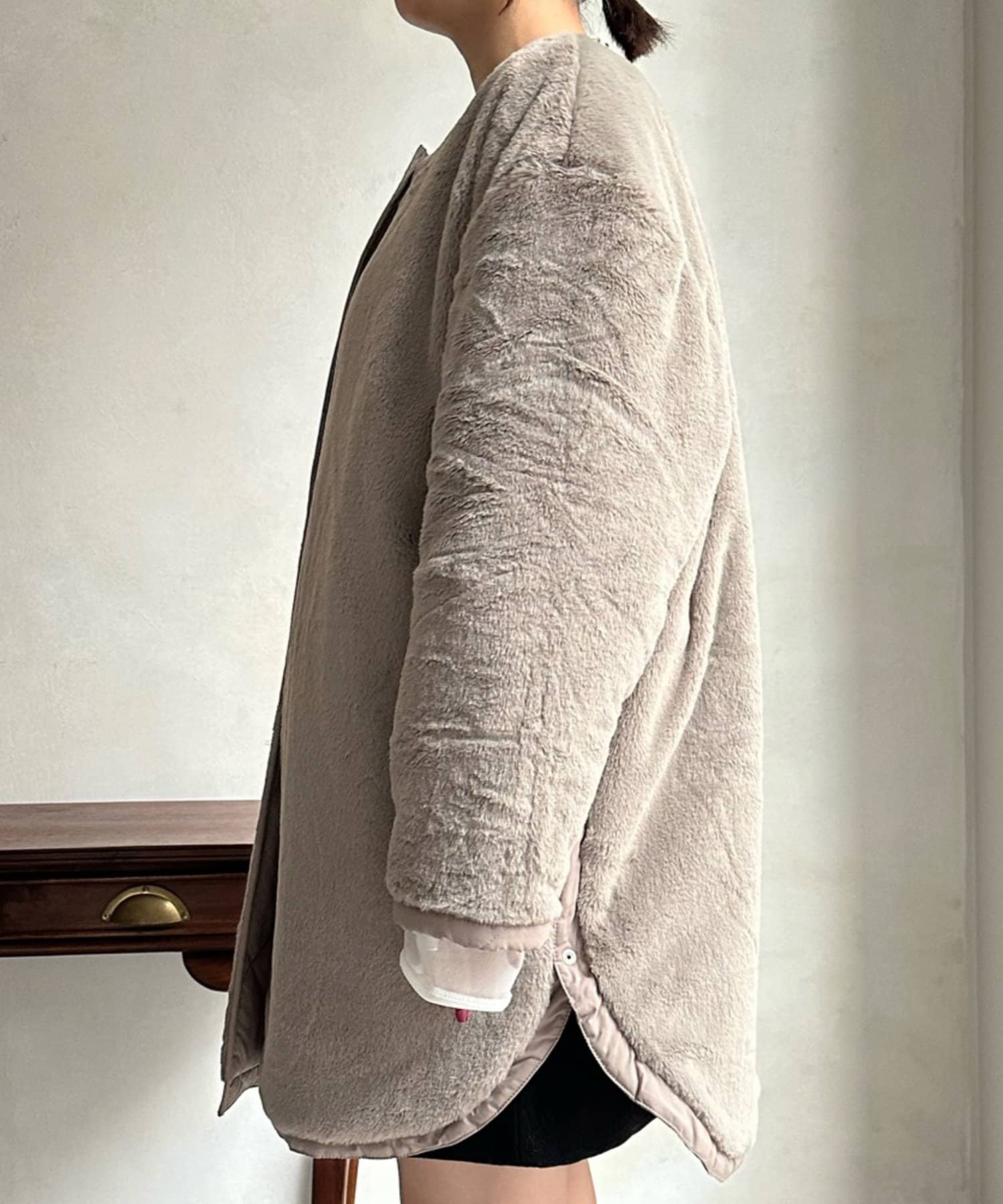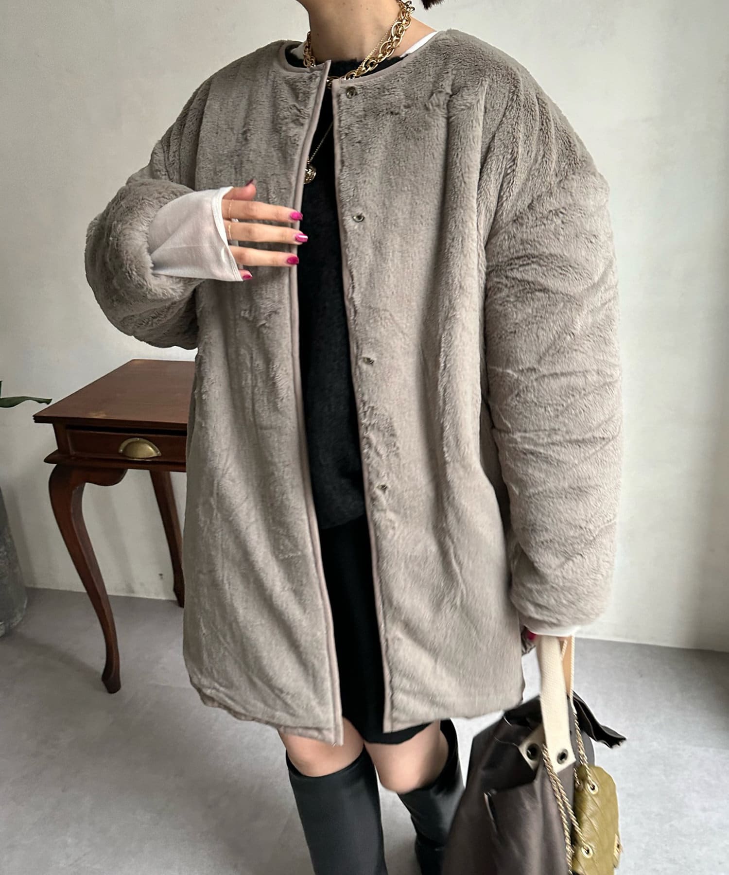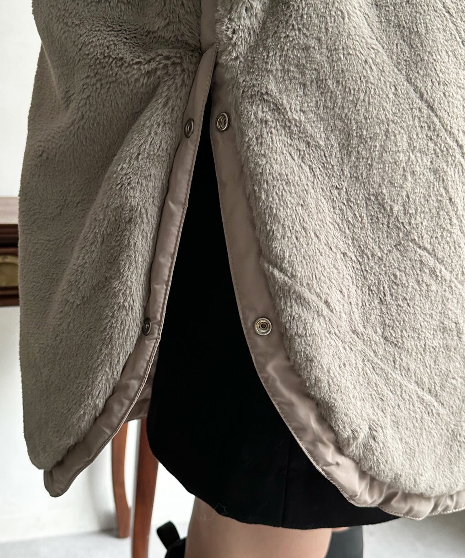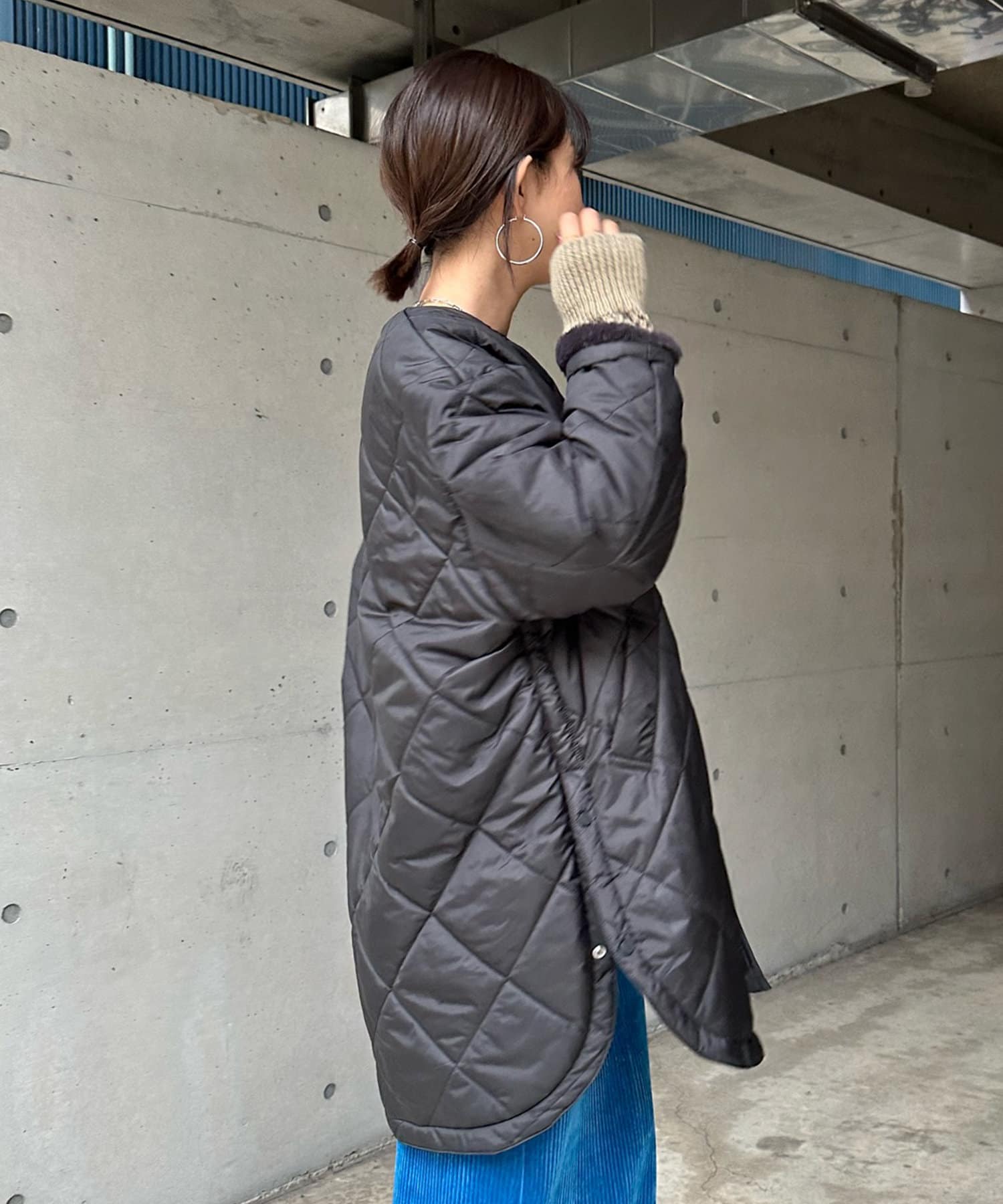 中綿入りキルティング&フェイクファーの表裏どちらで着てもかわいいリバーシブルのコート。