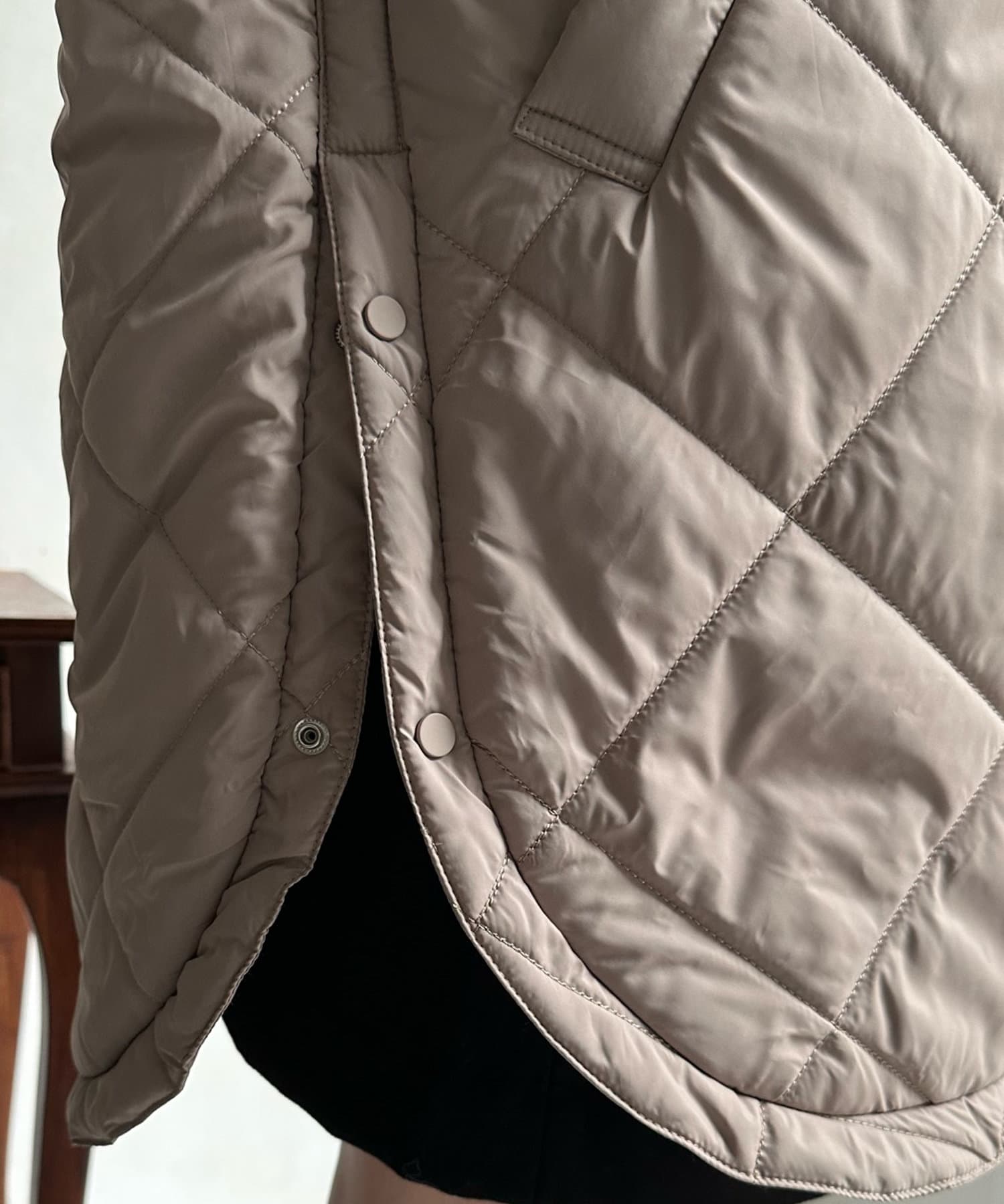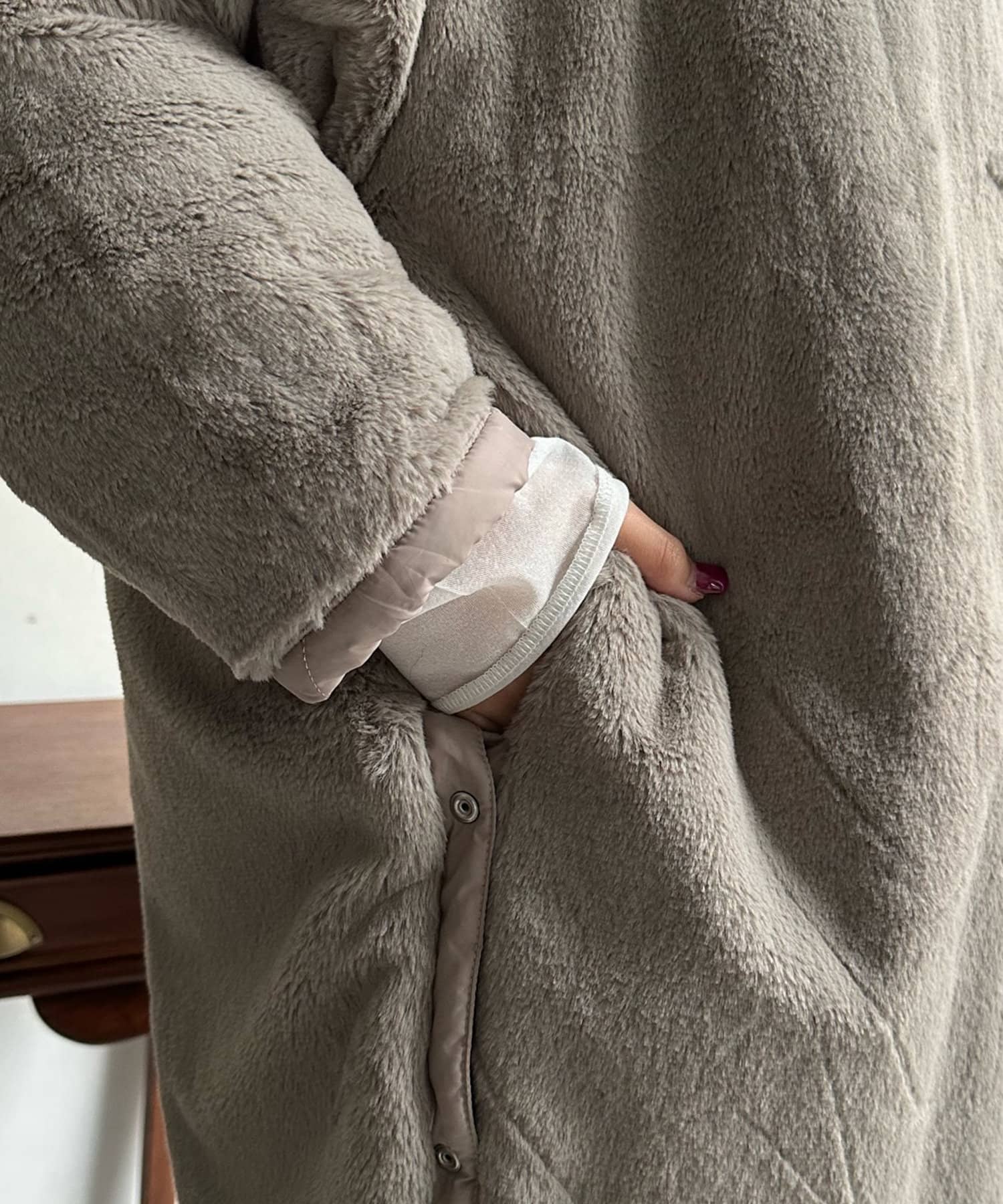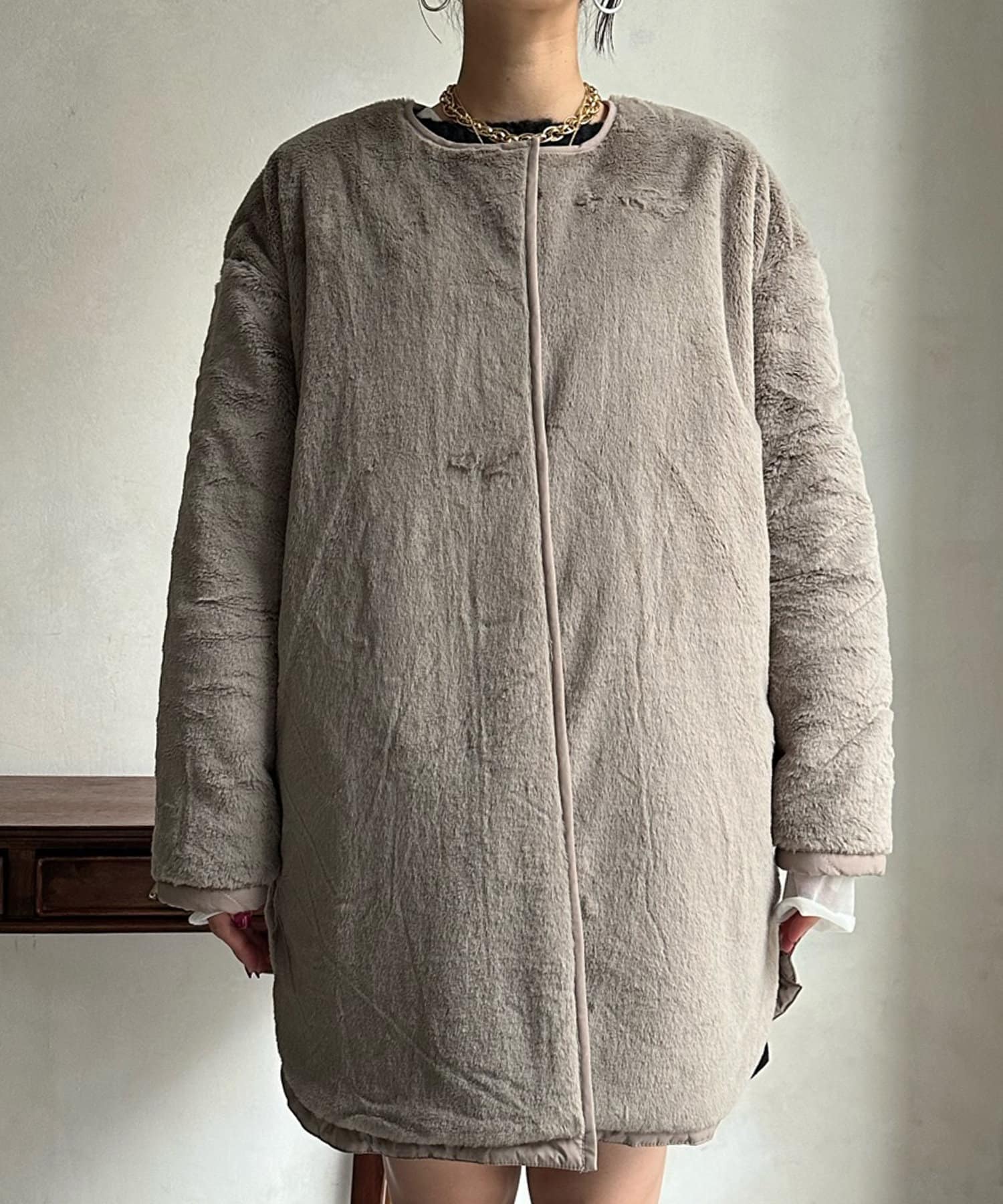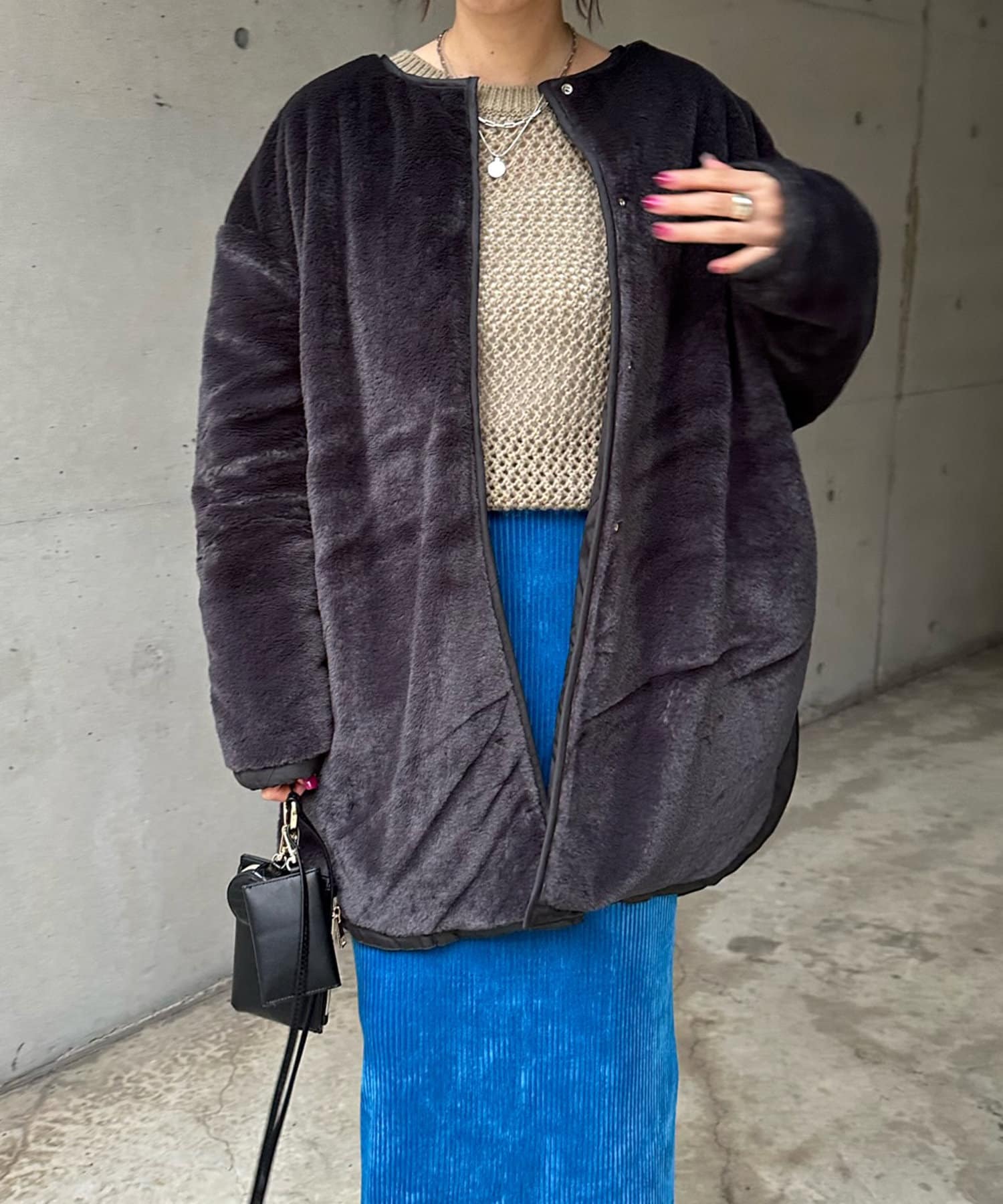 中綿入りキルティング&フェイクファーの表裏どちらで着てもかわいいリバーシブルのコート。