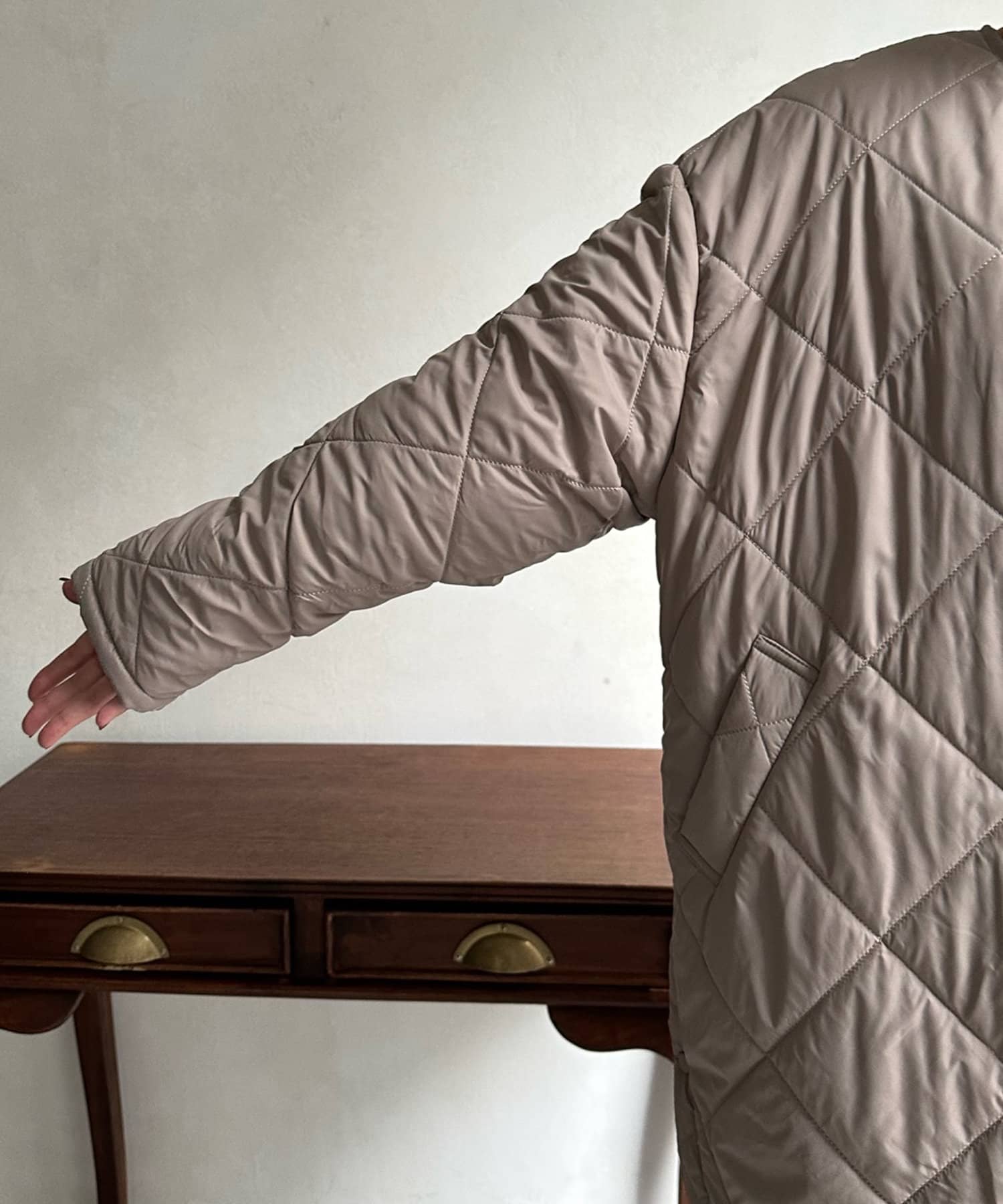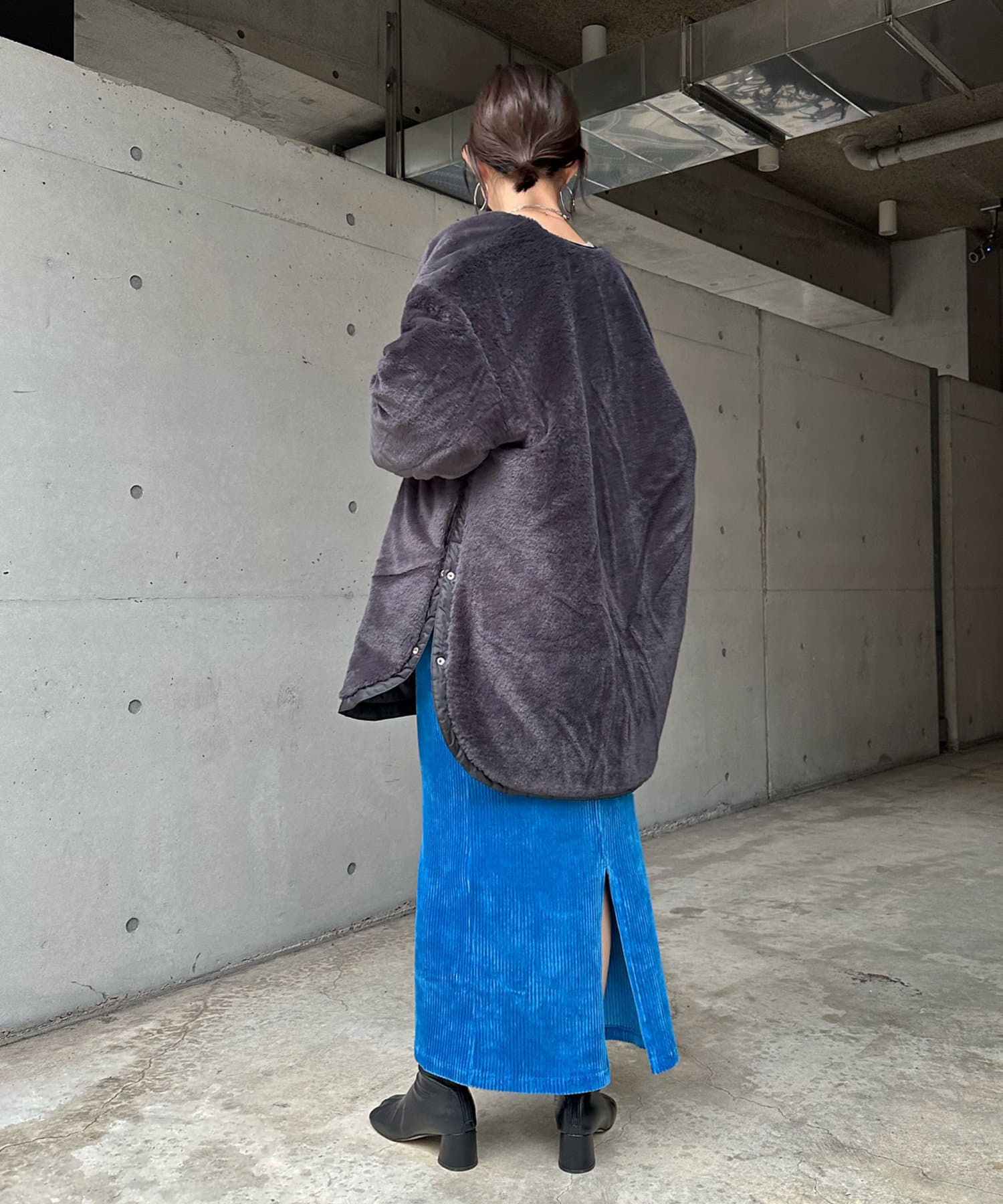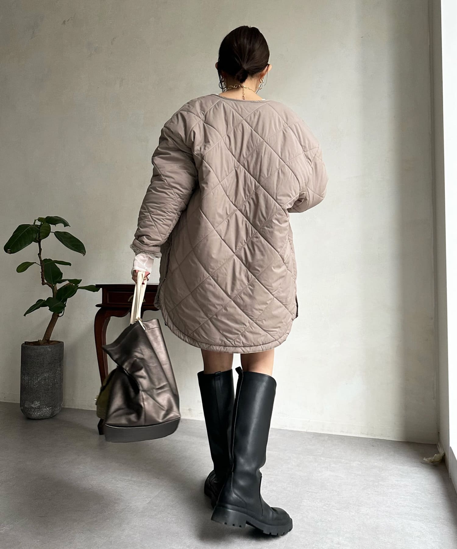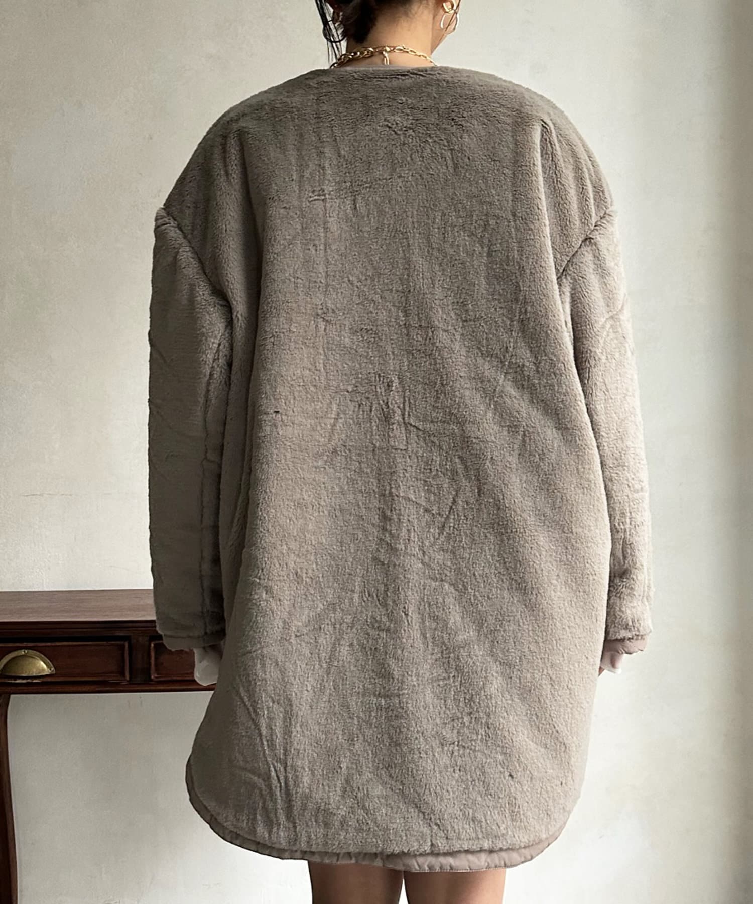 中綿入りキルティング&フェイクファーの表裏どちらで着てもかわいいリバーシブルのコート。