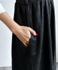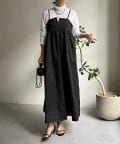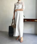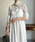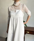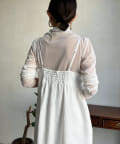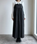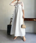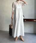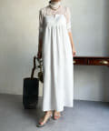 ビスチェのように見えるデザインが着映える1着。胸下のラインからギャザーを寄せ、裾に向かって広がるシルエットを作ります。