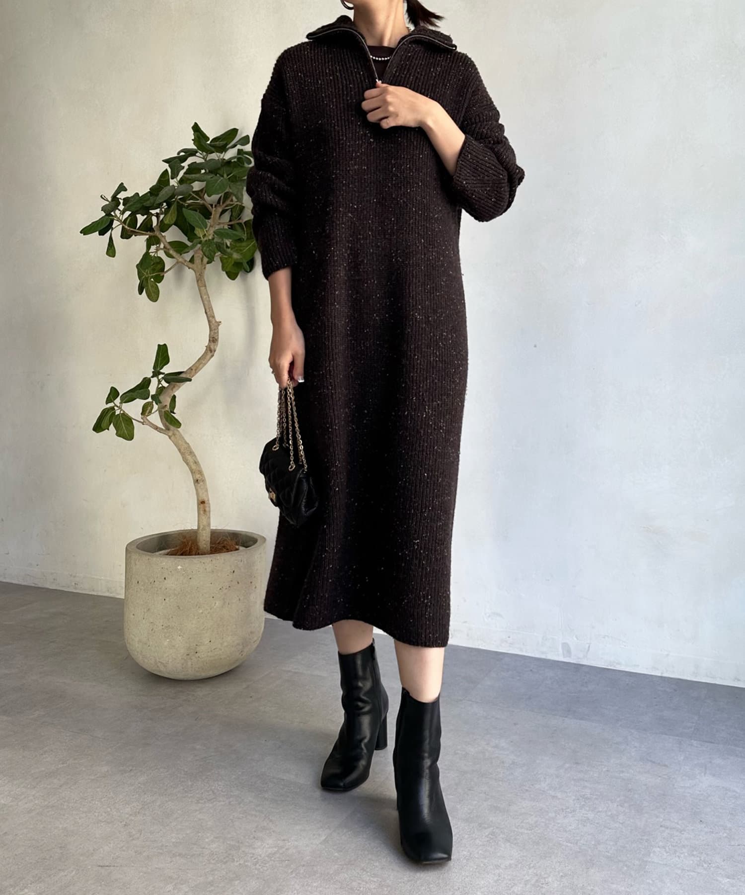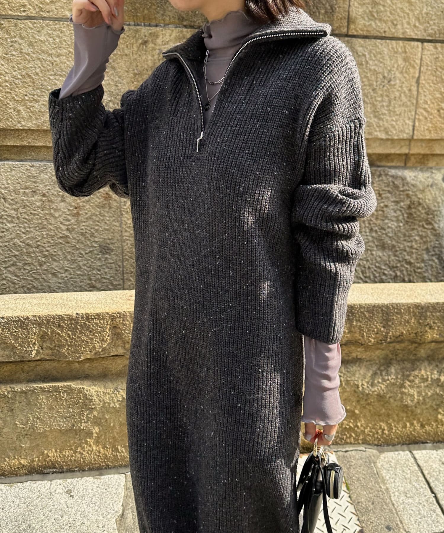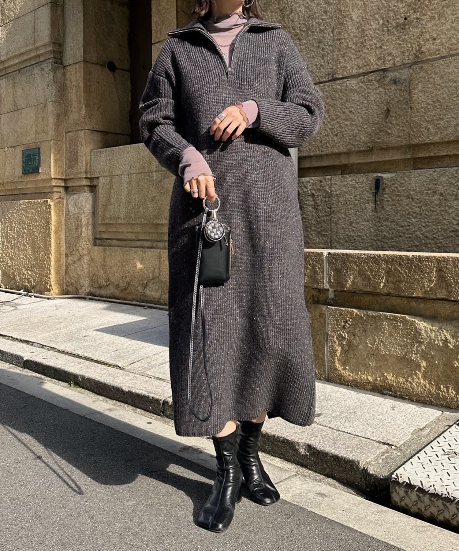 1着で旬な着こなしが叶う、ハーフジップデザインのワンピース。