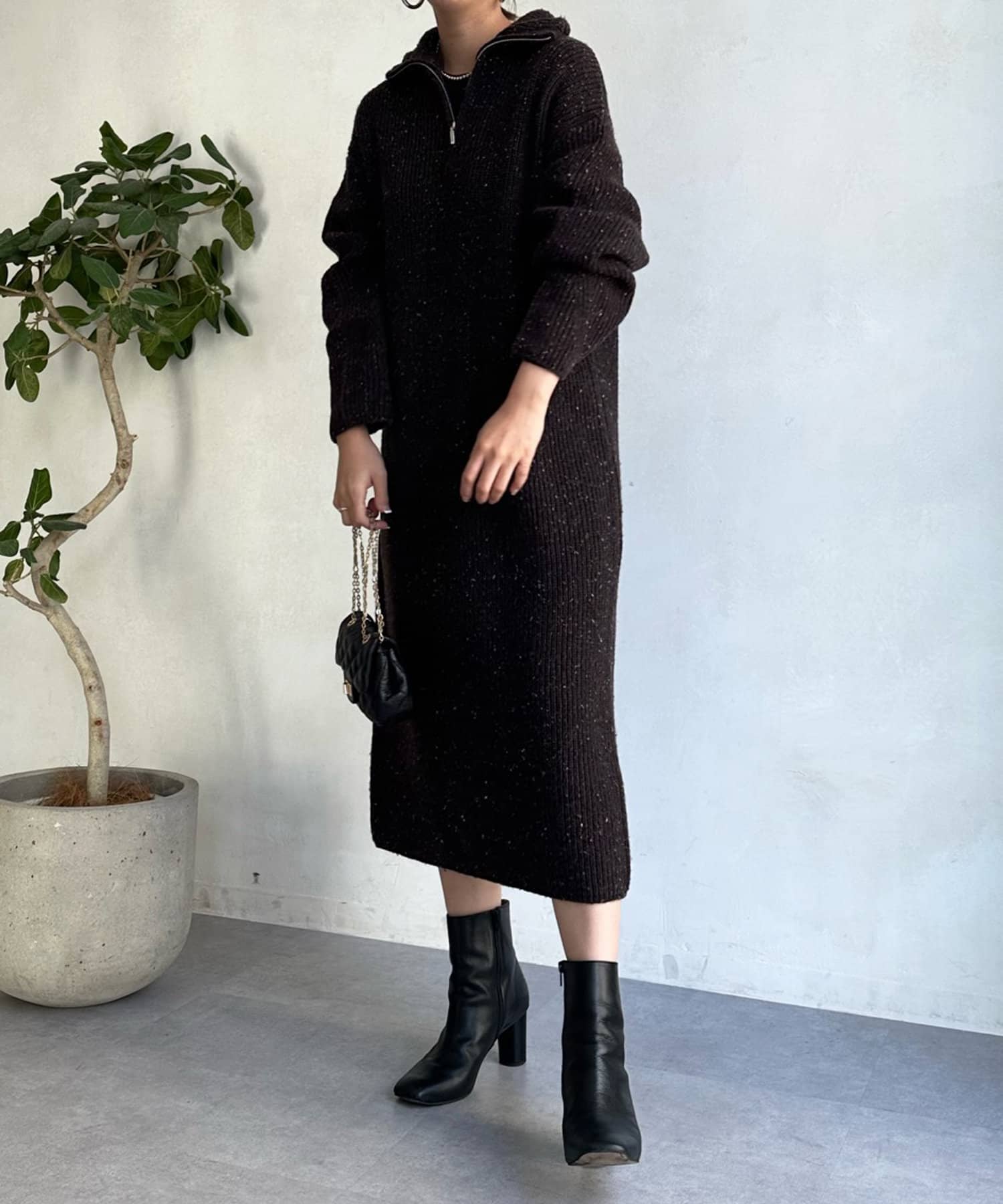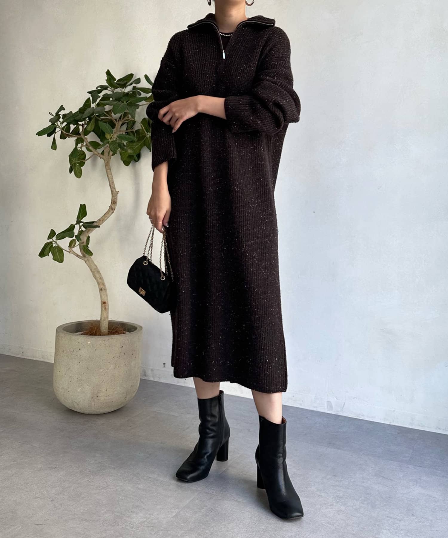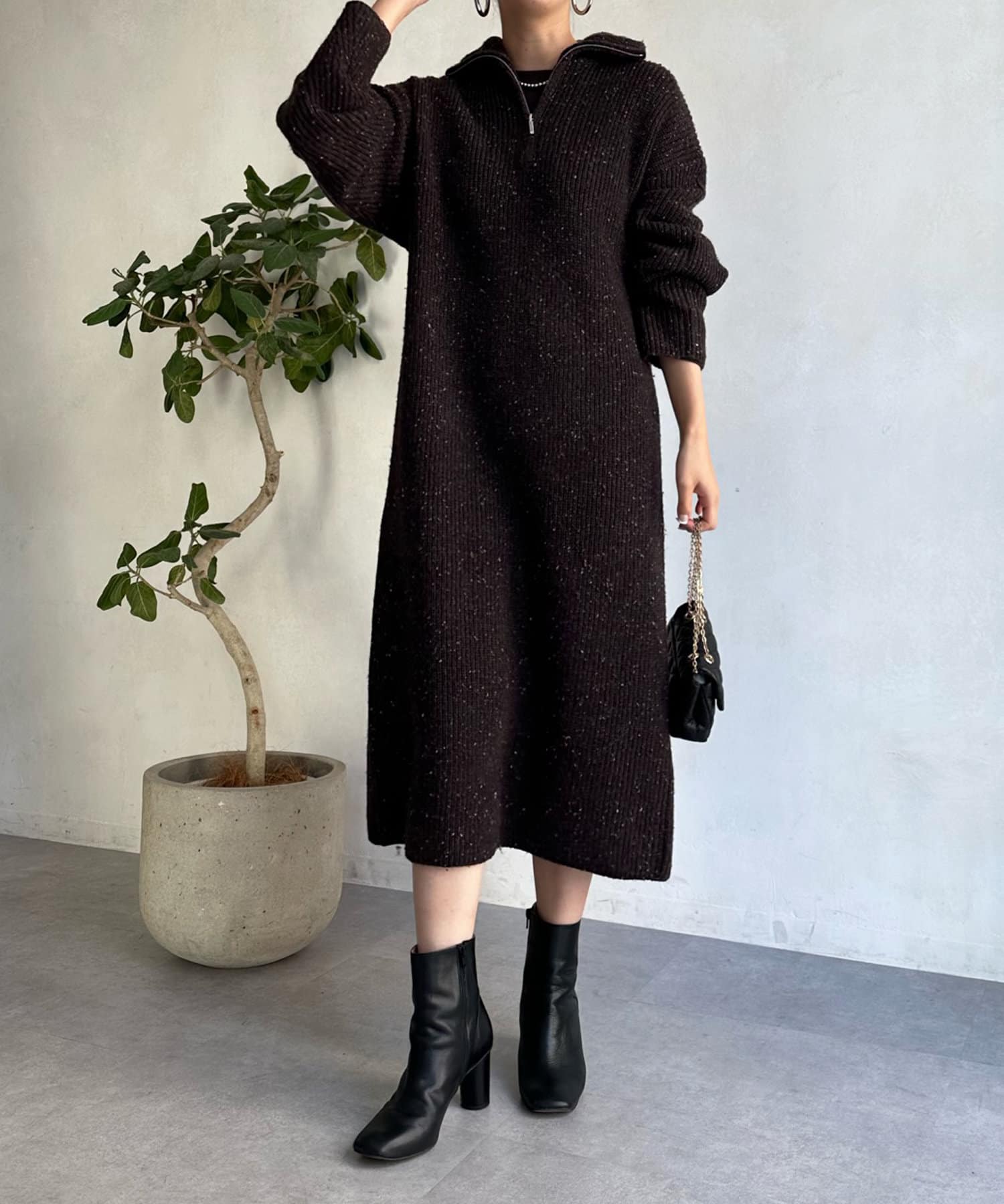 1着で旬な着こなしが叶う、ハーフジップデザインのワンピース。