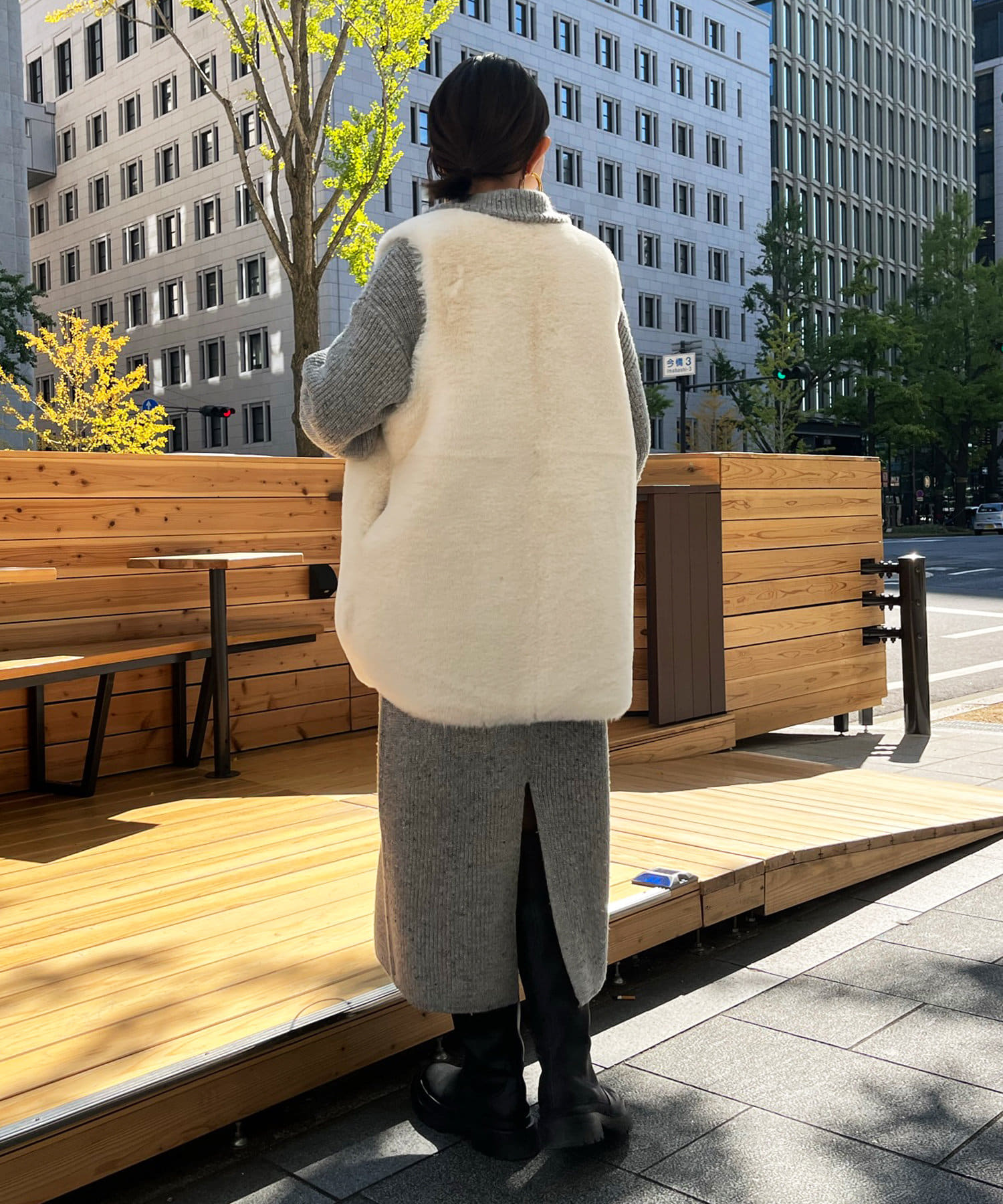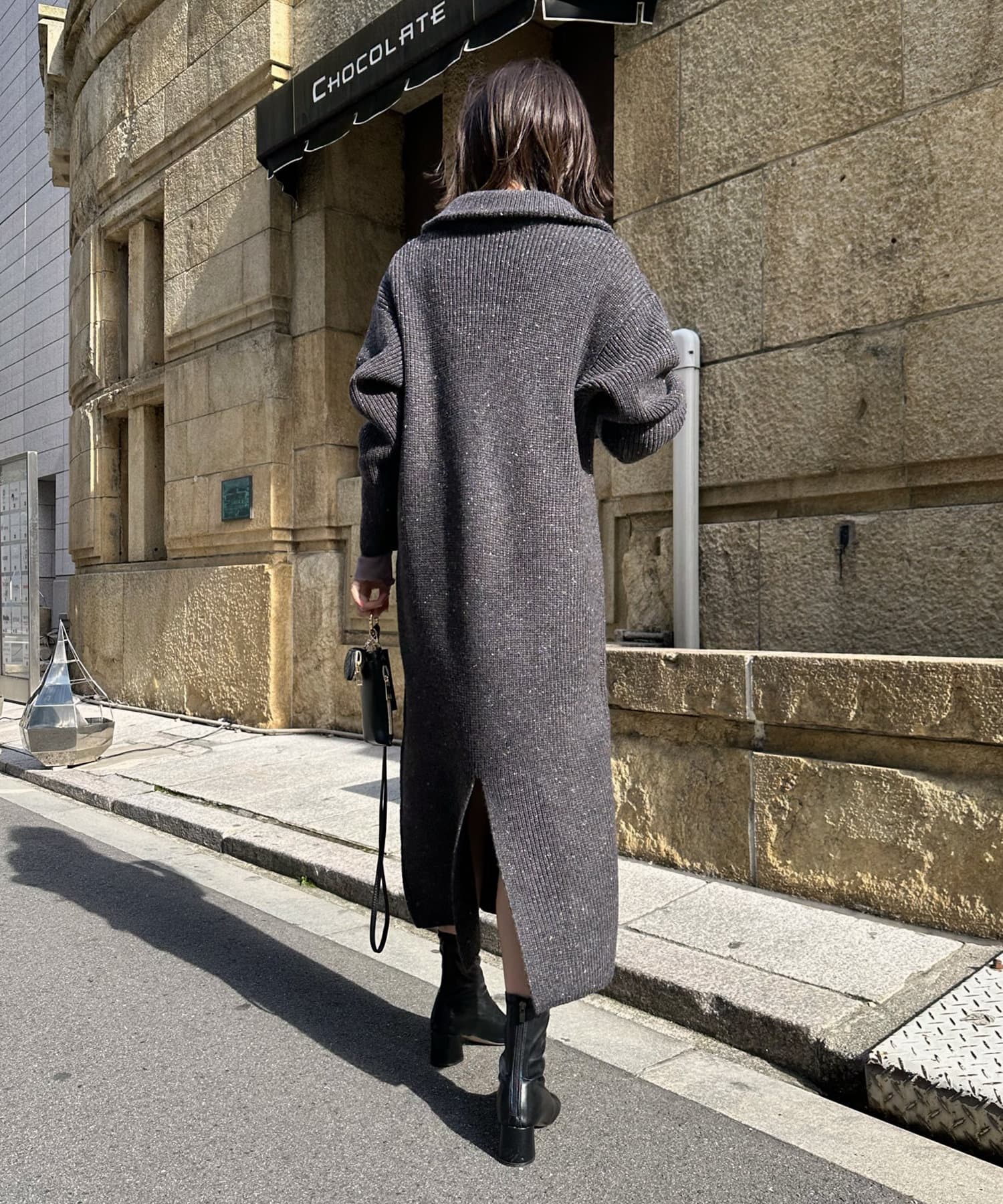 身体のラインを拾わないすとんとしたシルエットに、バックはざっくりとした裾スリットをプラス。