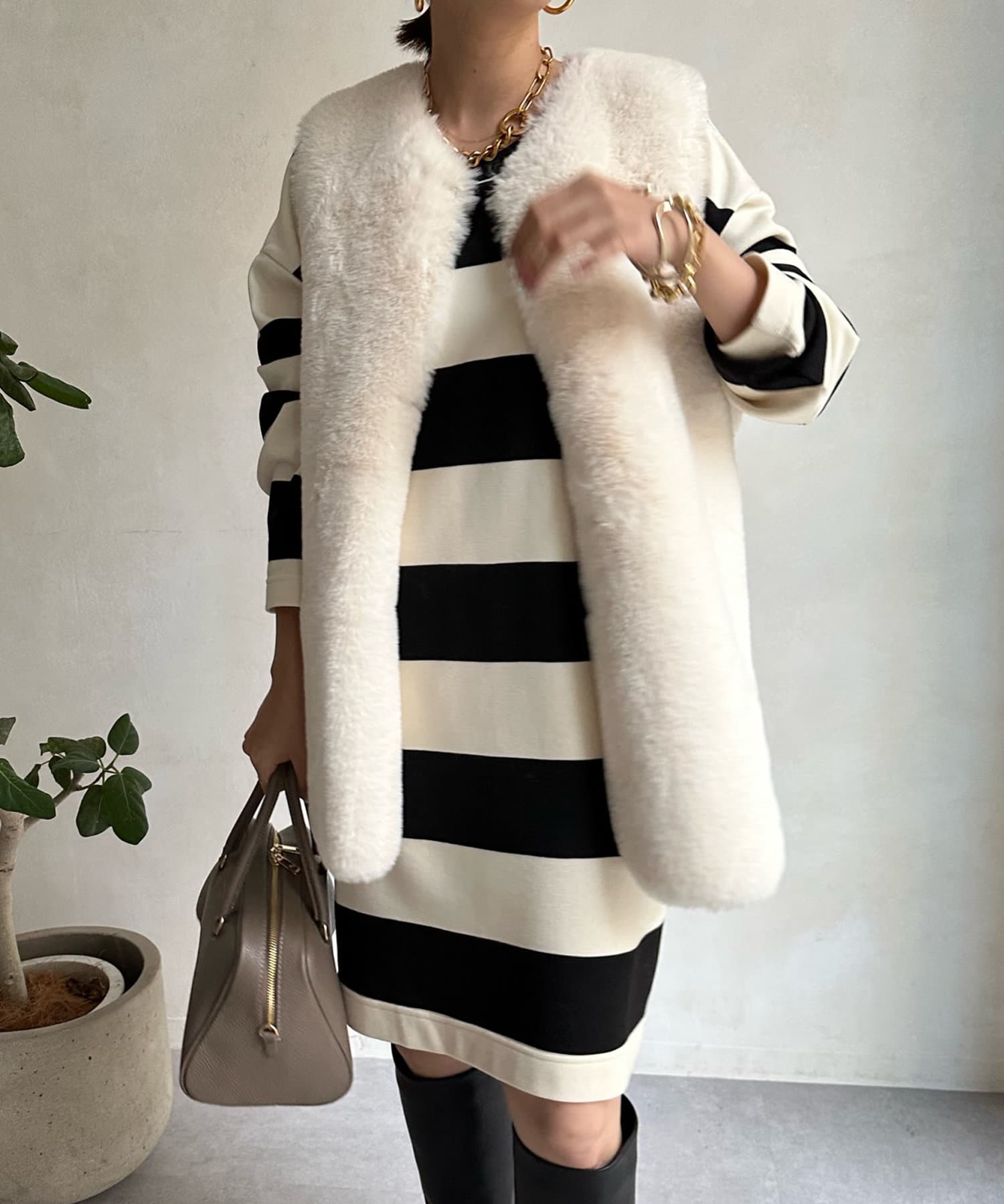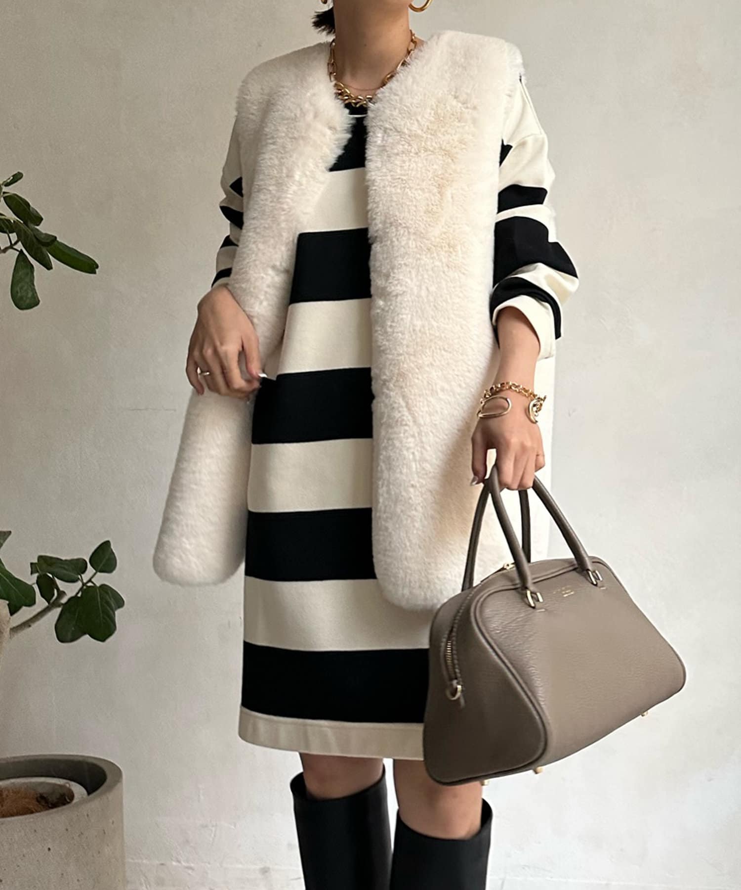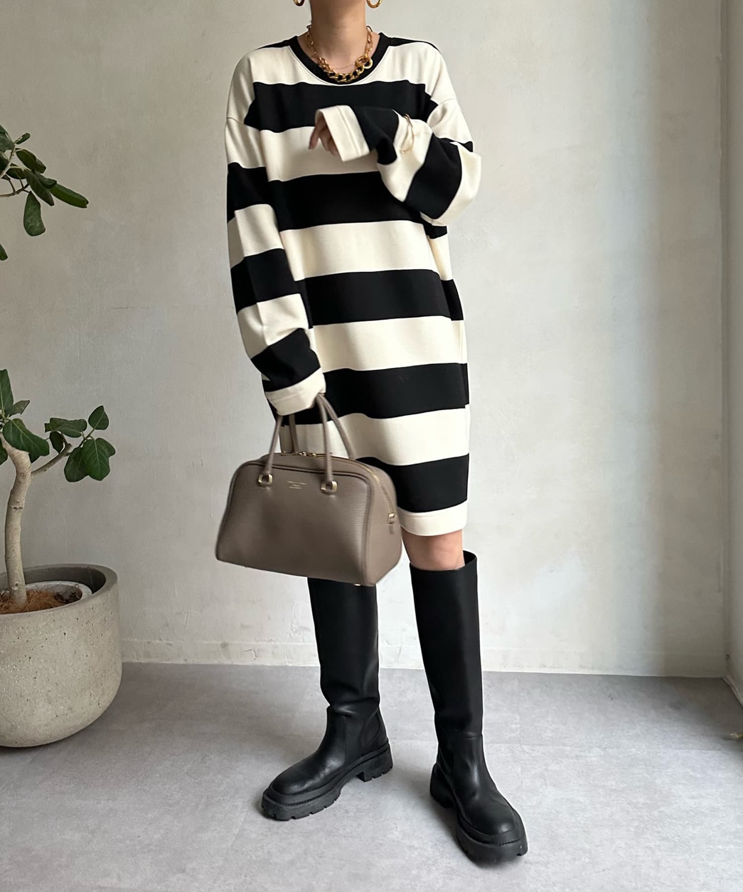 足元は今らしくロングブーツでのスタイルがおすすめ。モノトーンなアイテムでまとめたスタイルでも、しっかりとおしゃれさをアピールしてくれるデザインですよ。