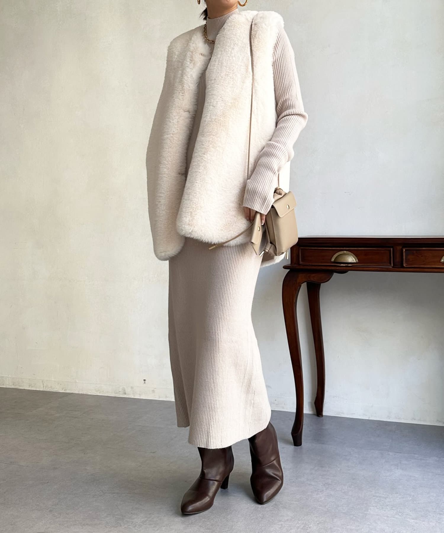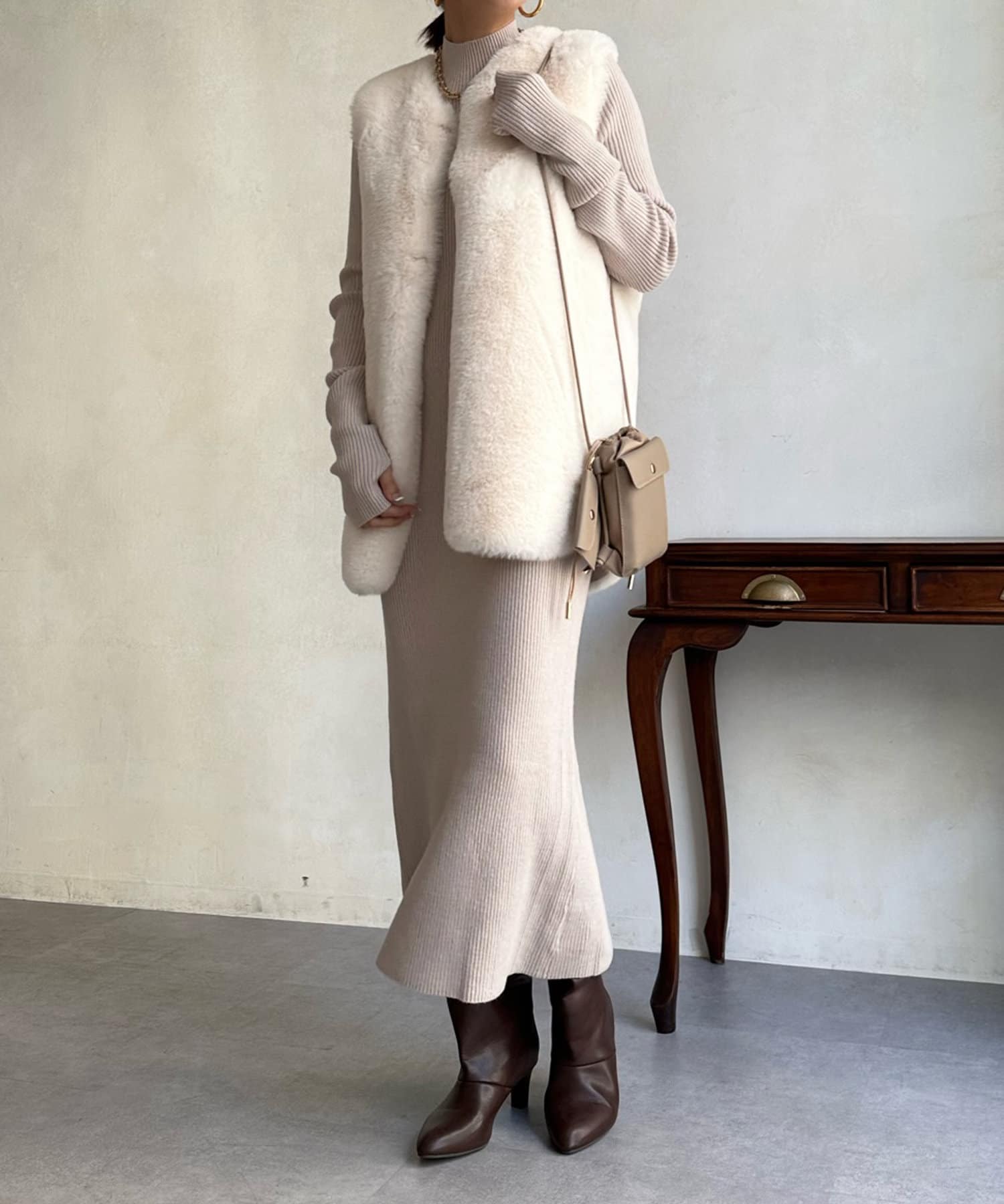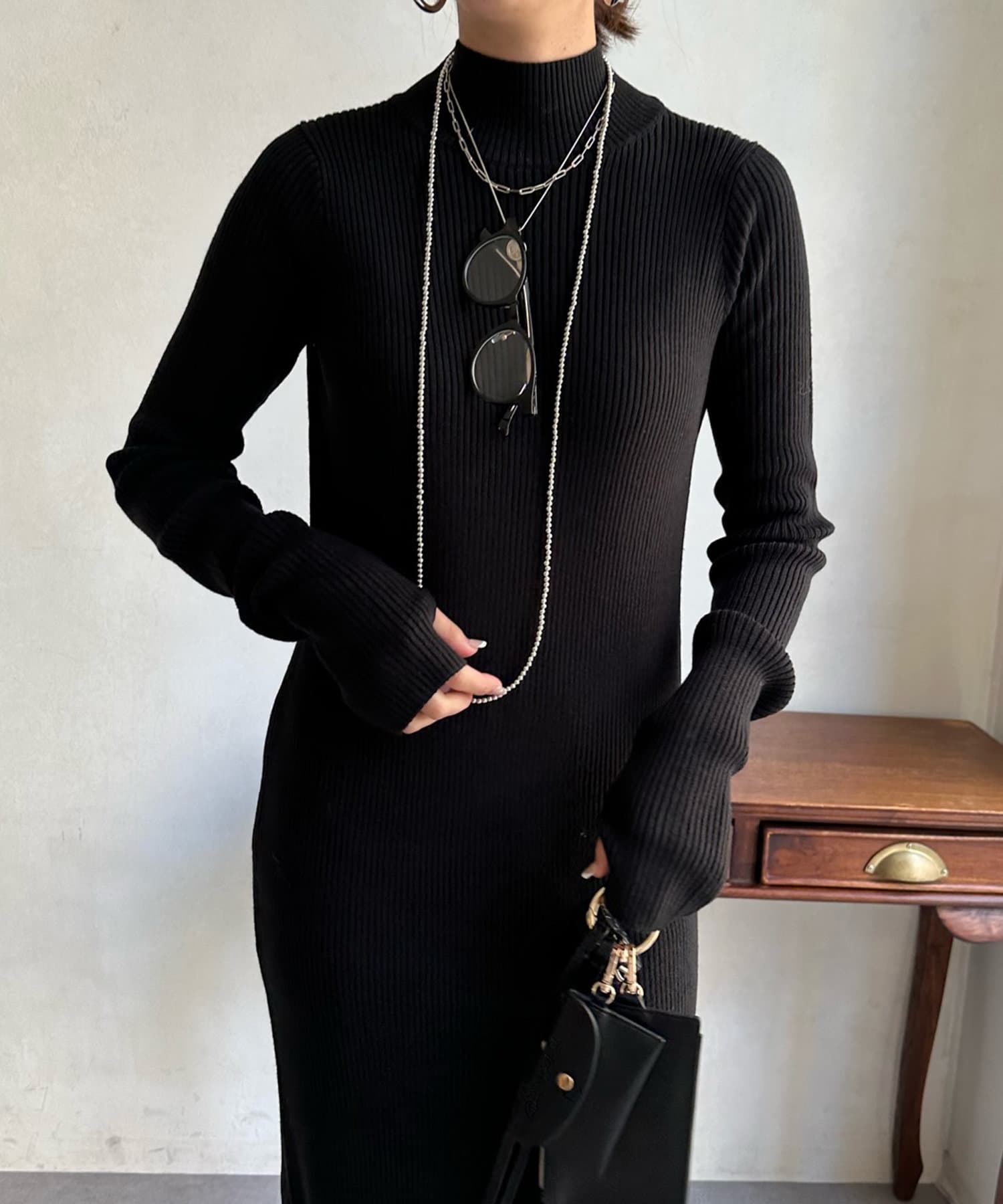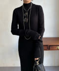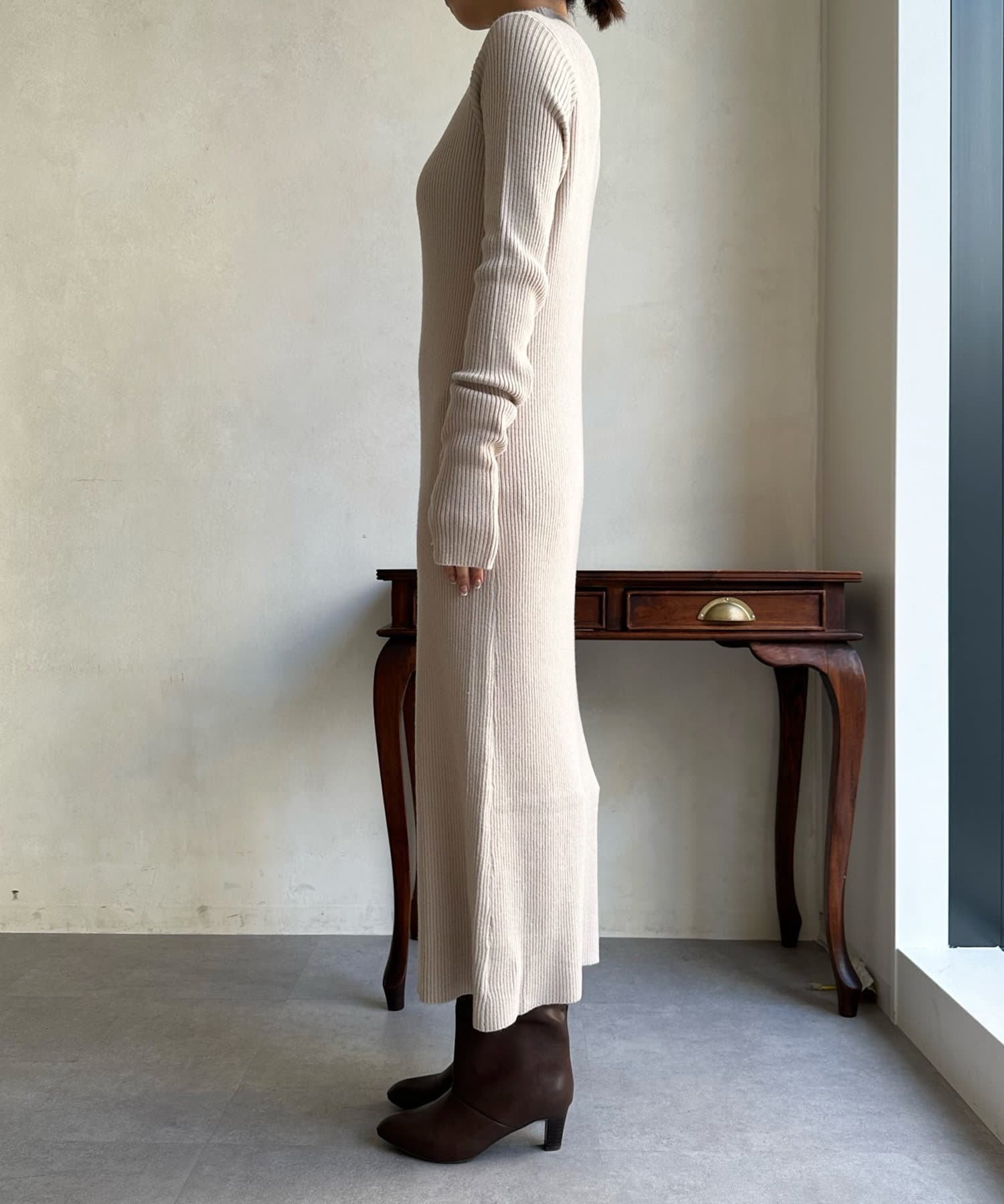 ワンピースの袖口にはフィンガーホールをプラスし、トレンドライクなアクセントをプラス。暖かく着られるポイントでもありますよ◎