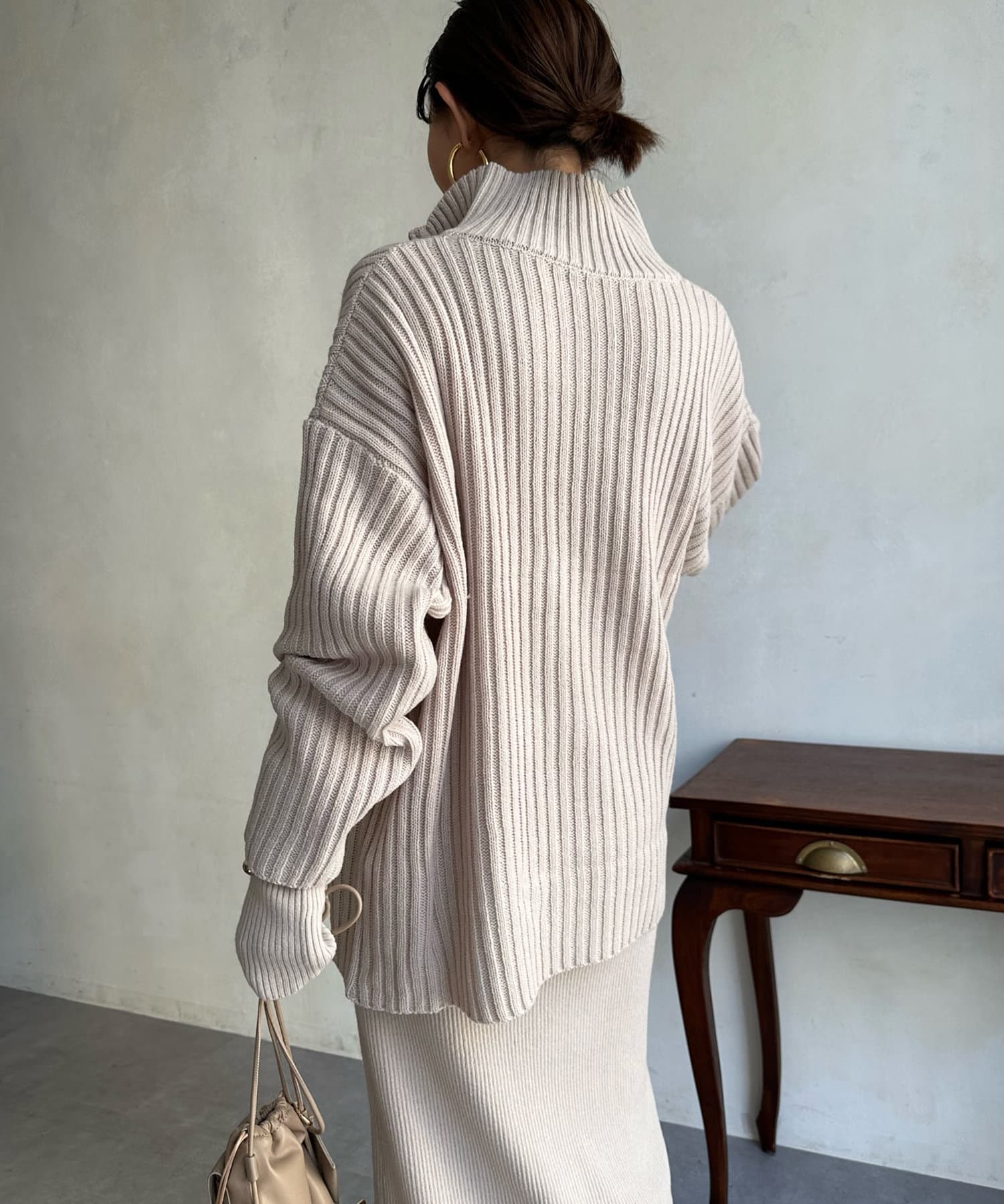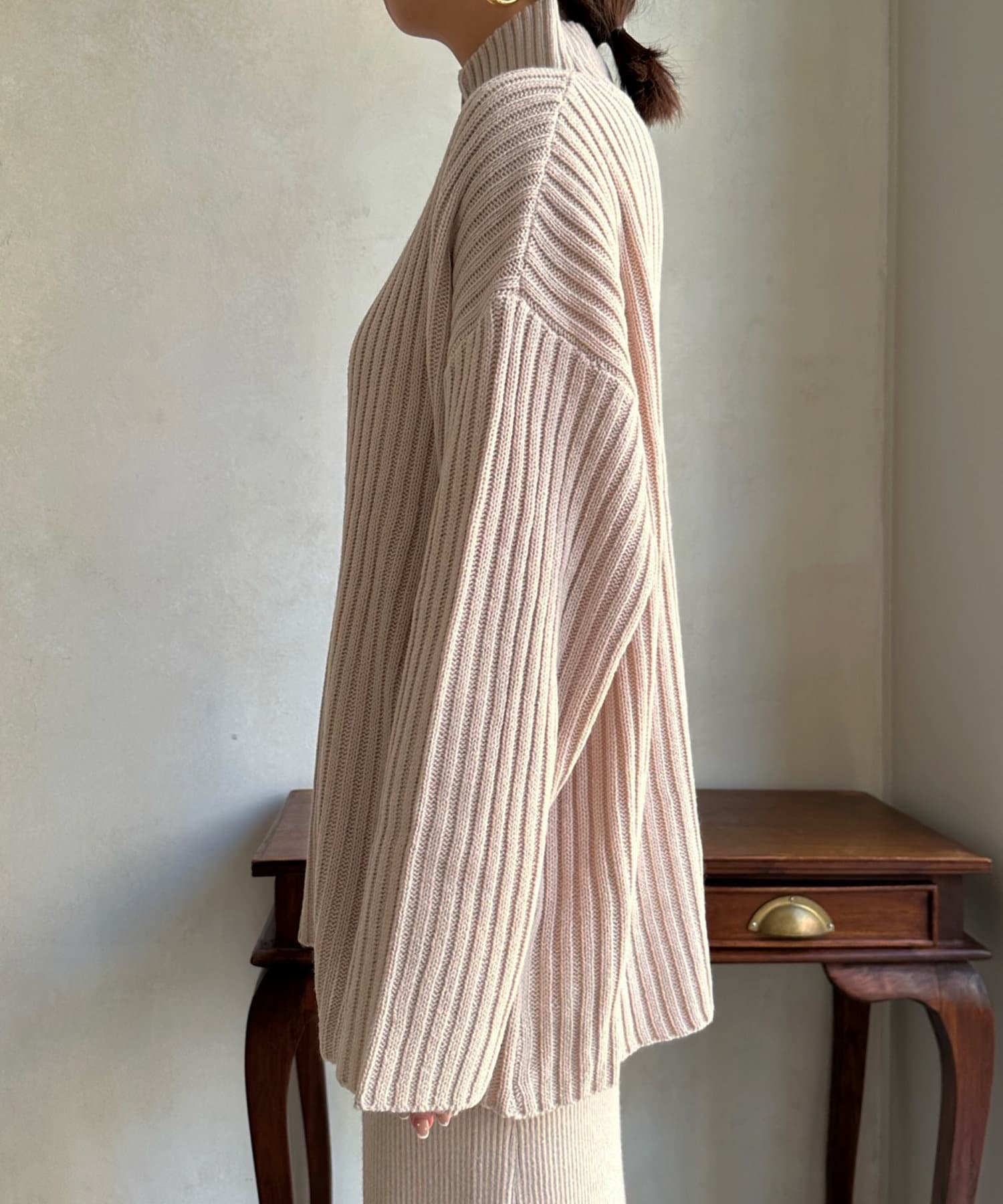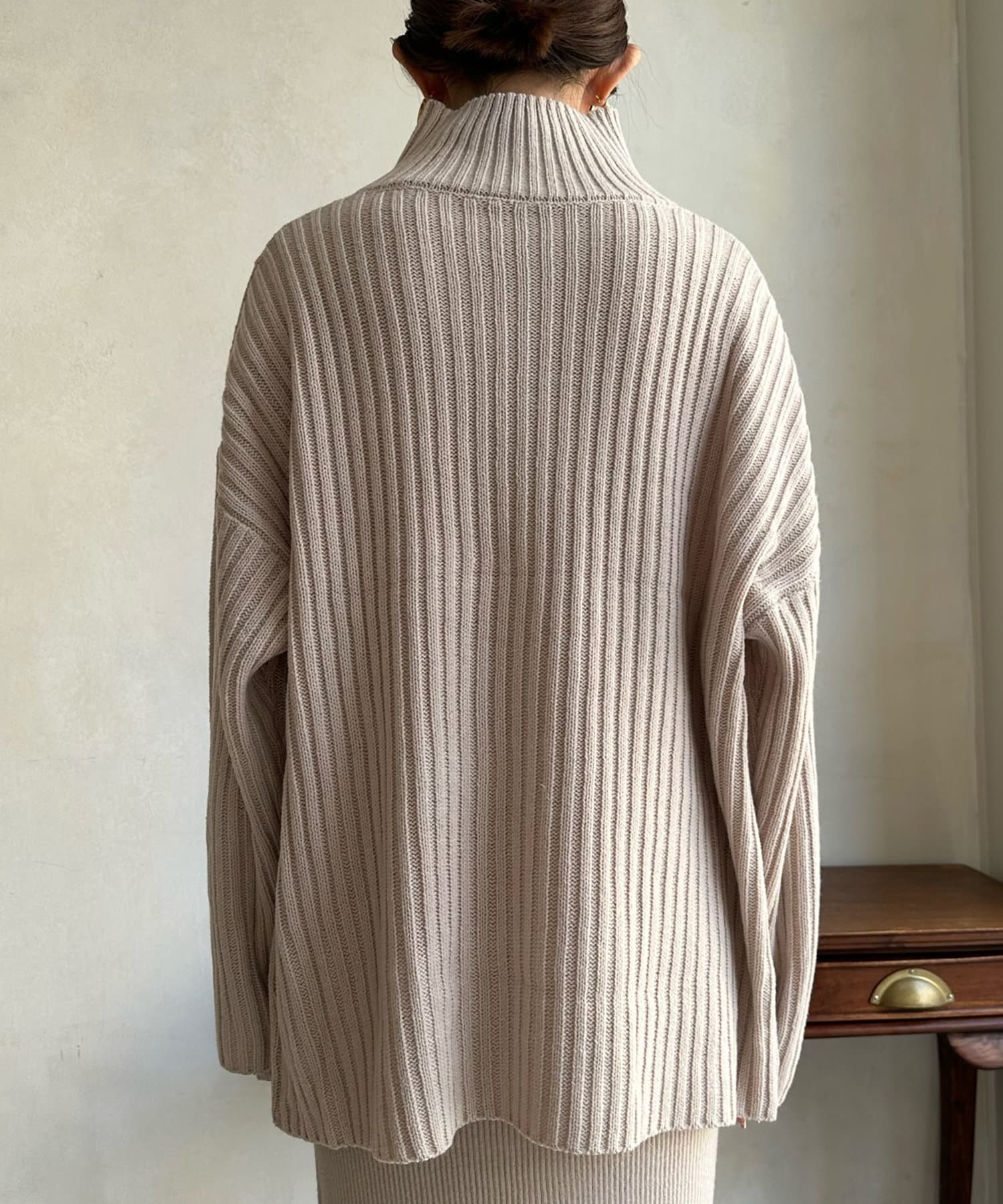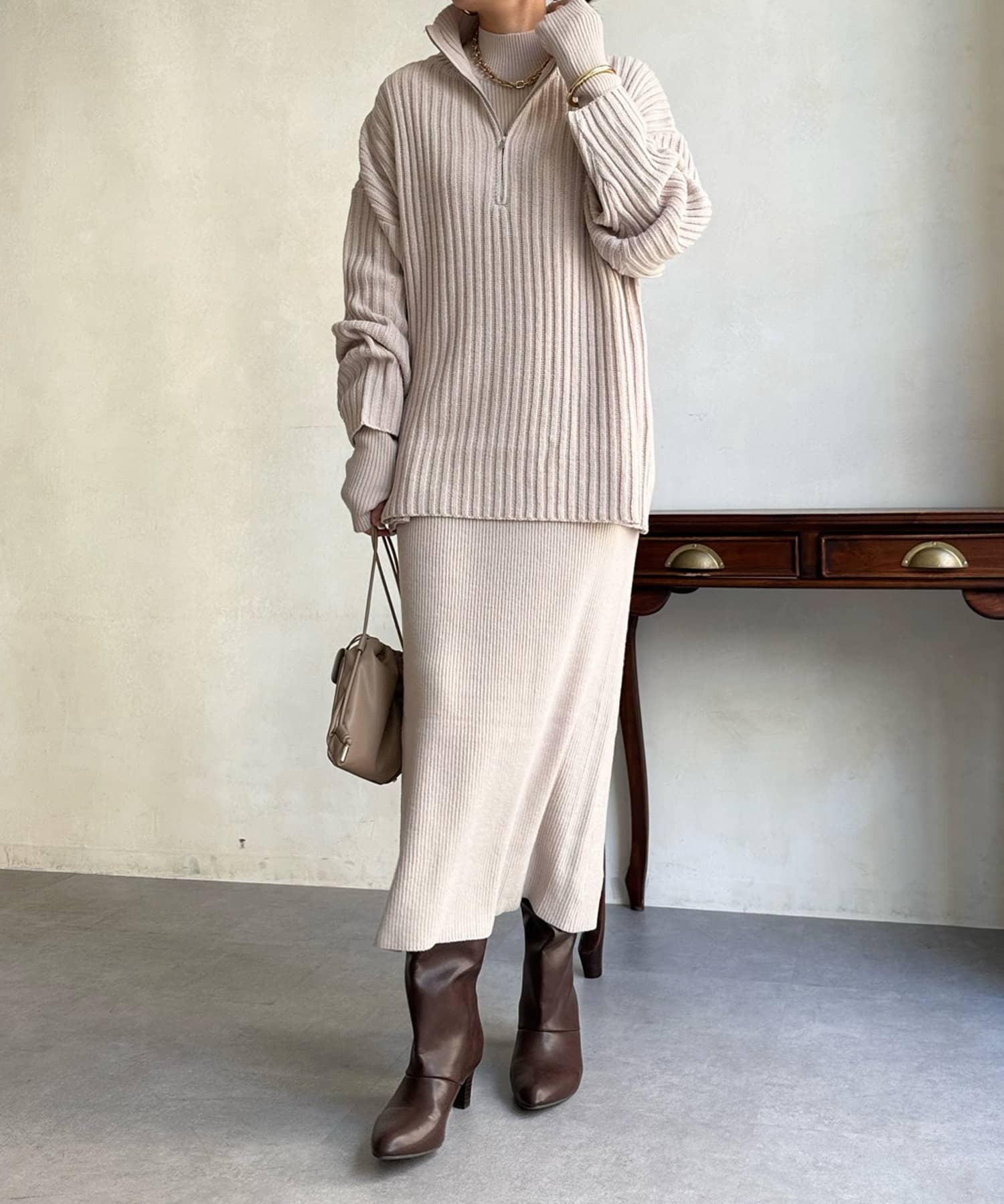 同色でありながらも、それぞれ違う太さのリブで仕上げることでおしゃれ度がぐんとアップ。