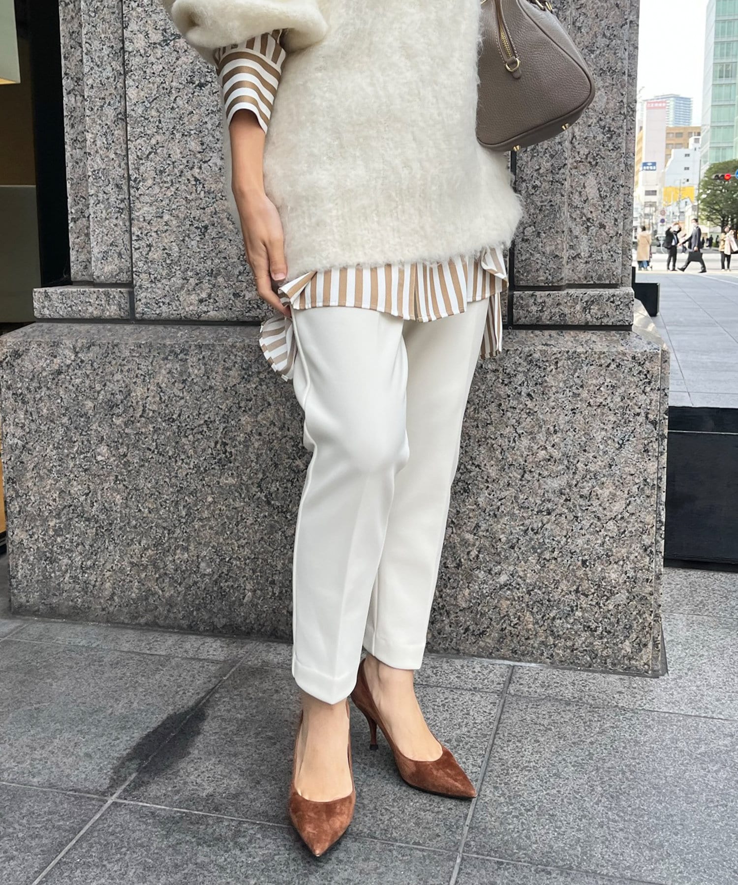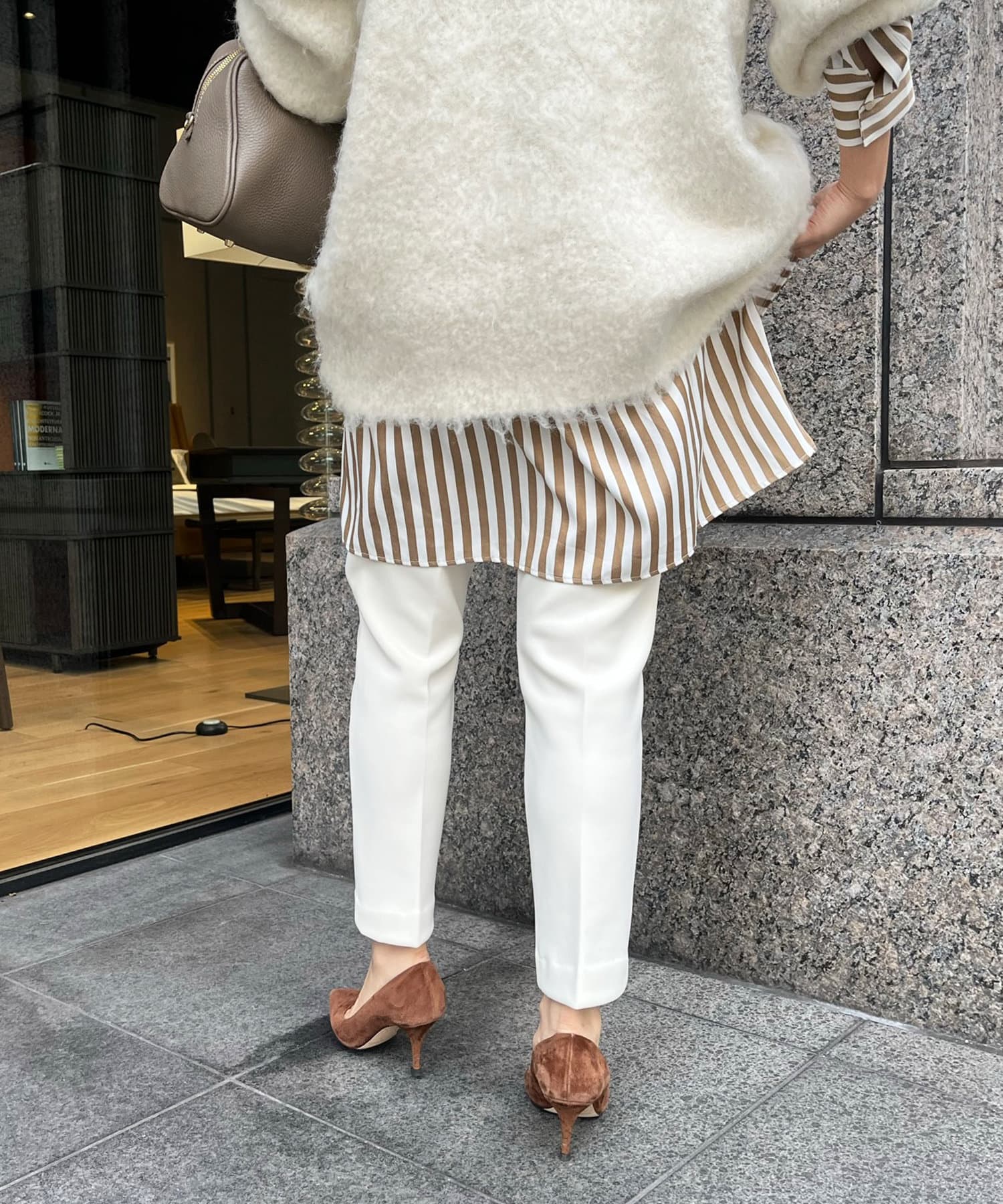 きれいめ見え抜群なのに、ウエストゴムでイージーな着心地に。
