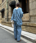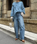 ゆるっと着られるルーズなサイジングですが、首元は程よく空きのあるデザインにすることですっきり見せしてくれるポイントに。