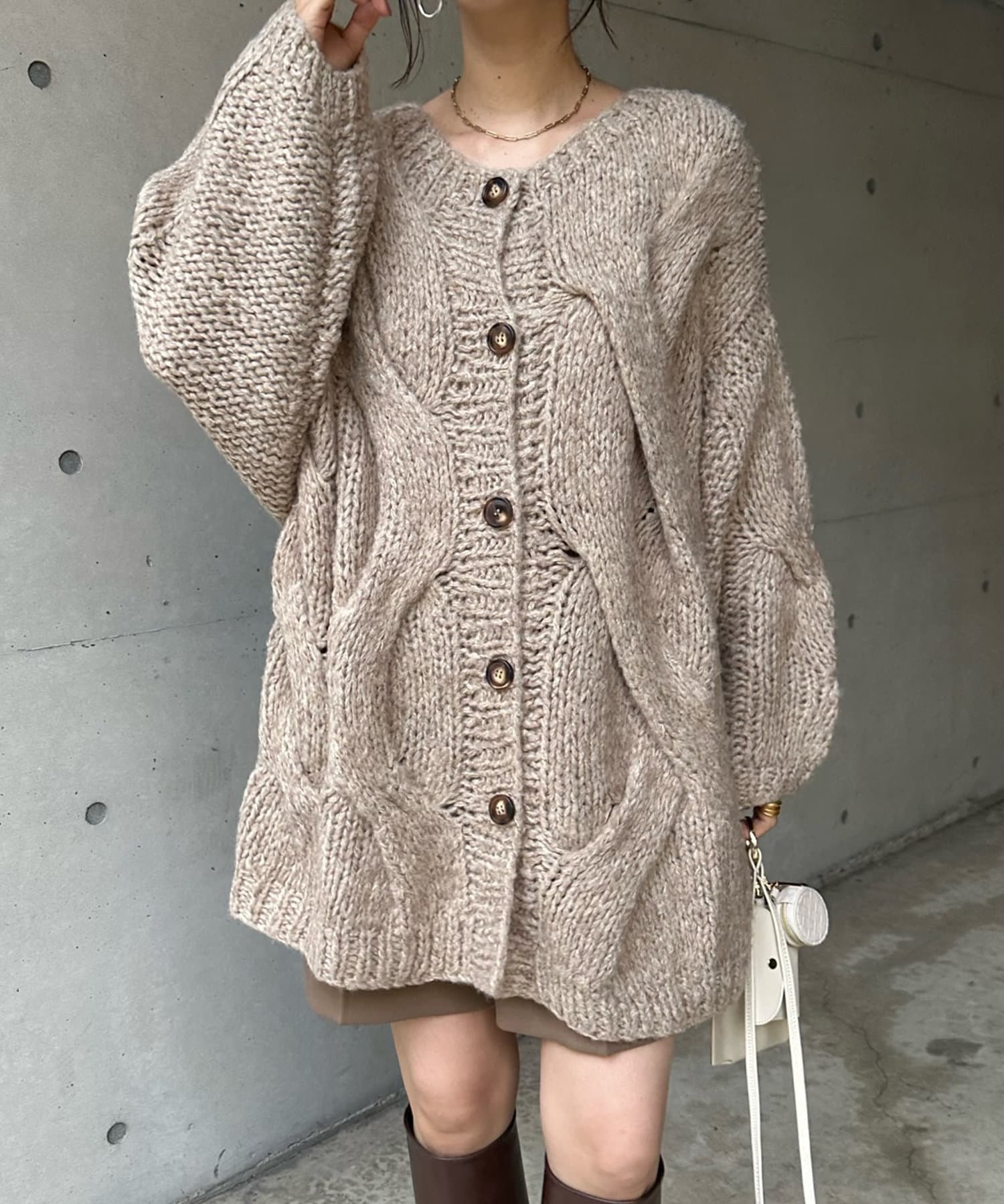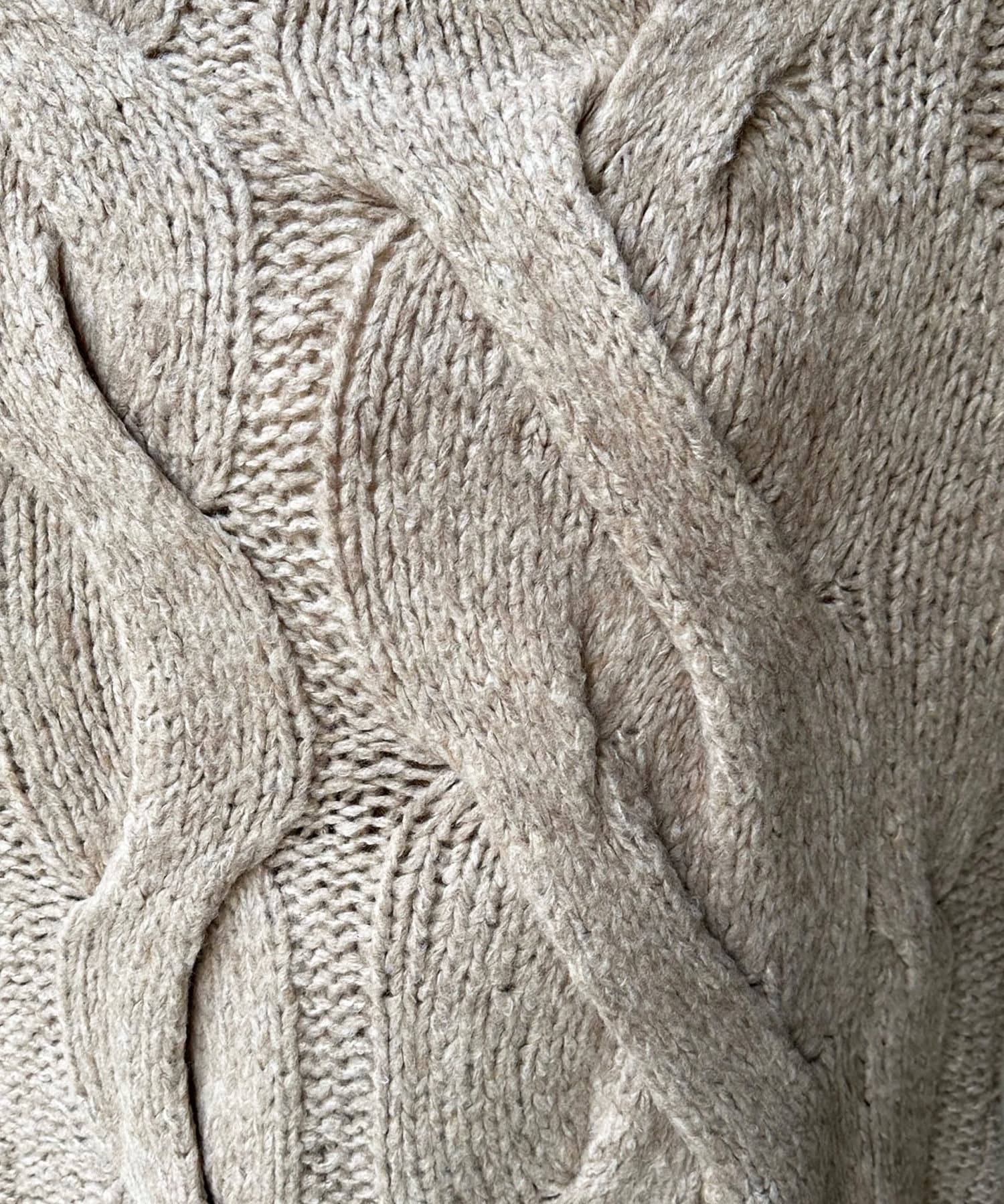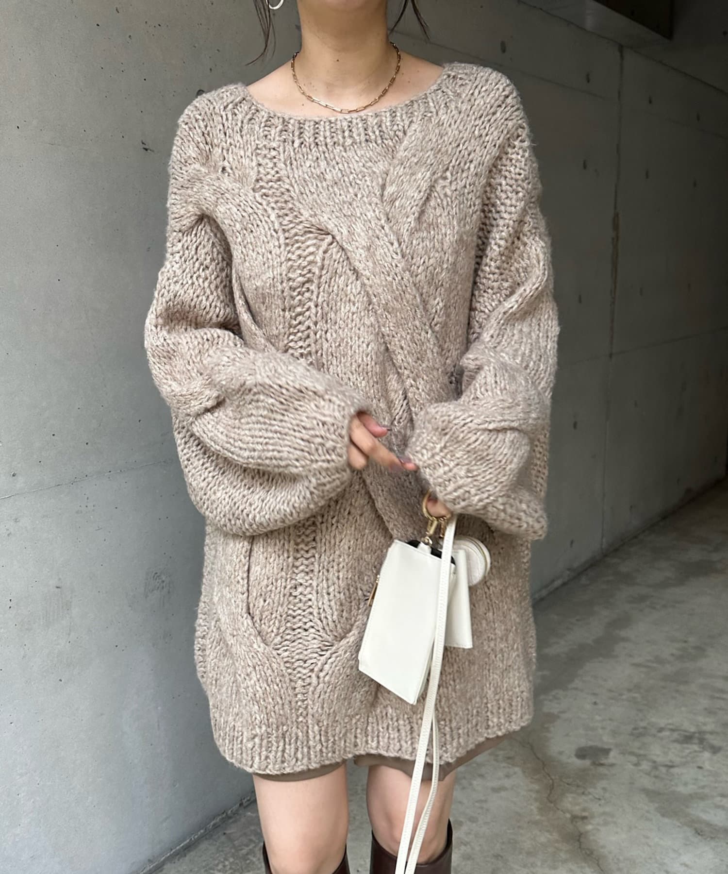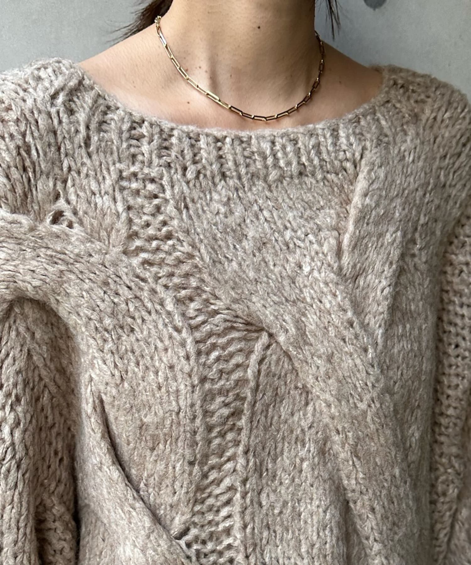 ざっくり感とボリューム感が可愛いハンドメイドのケーブルニット。