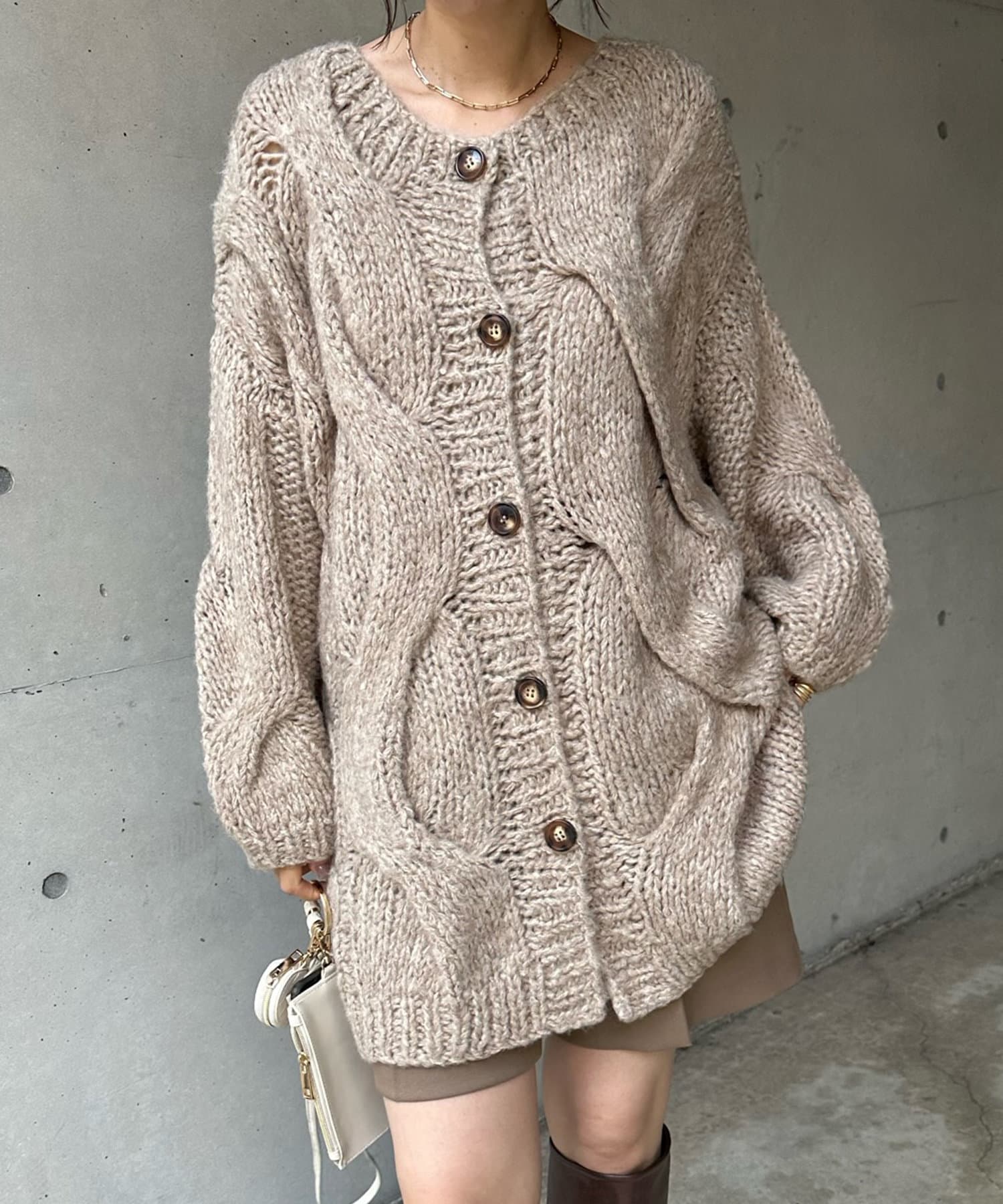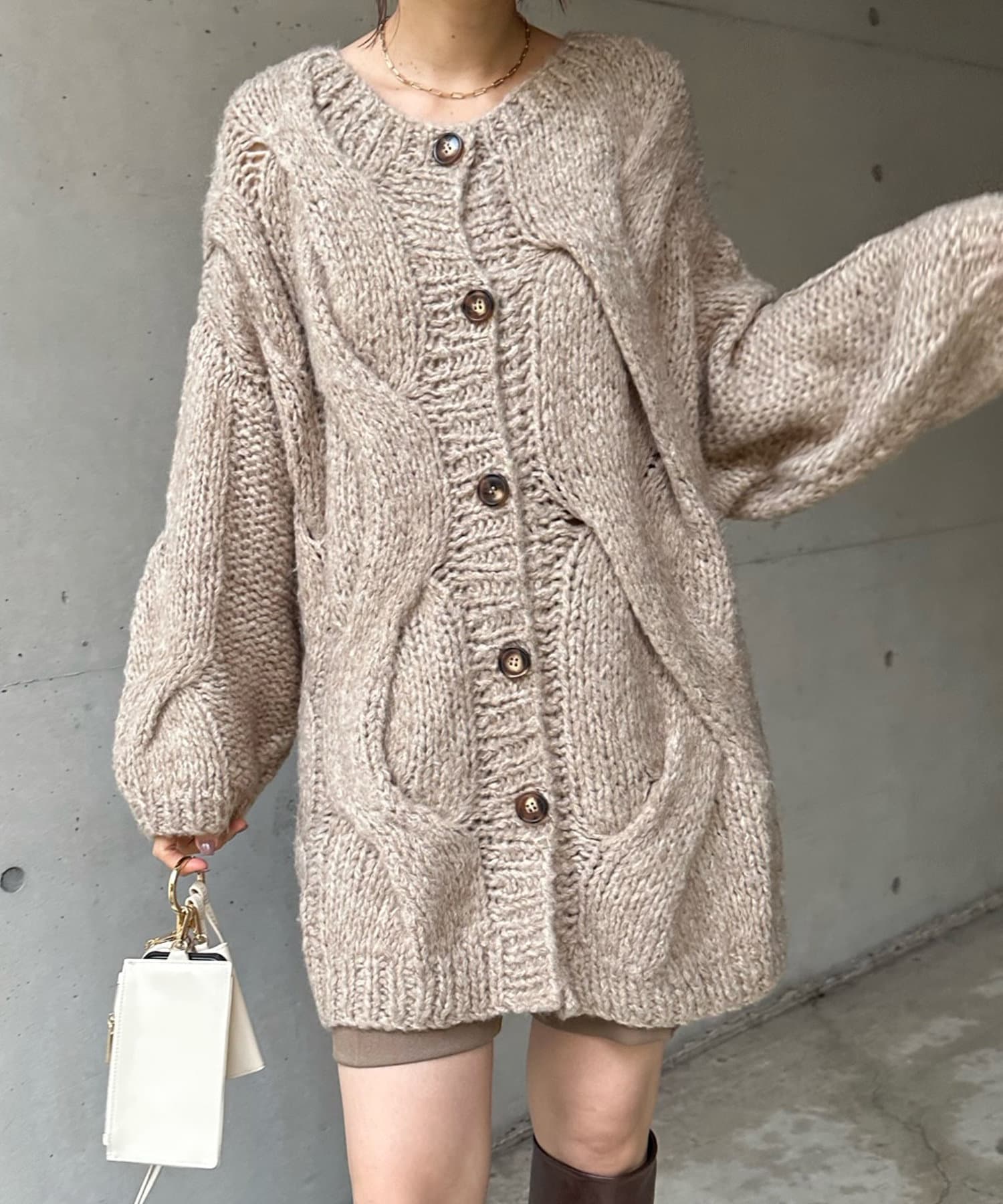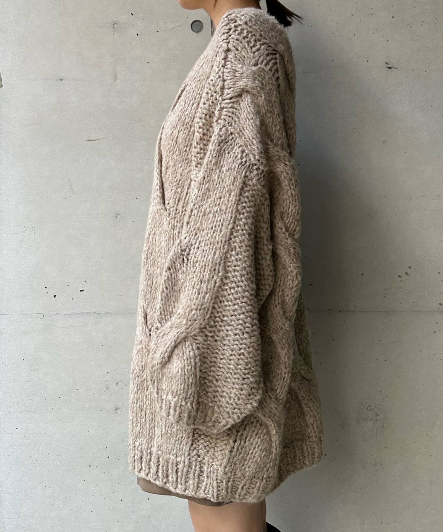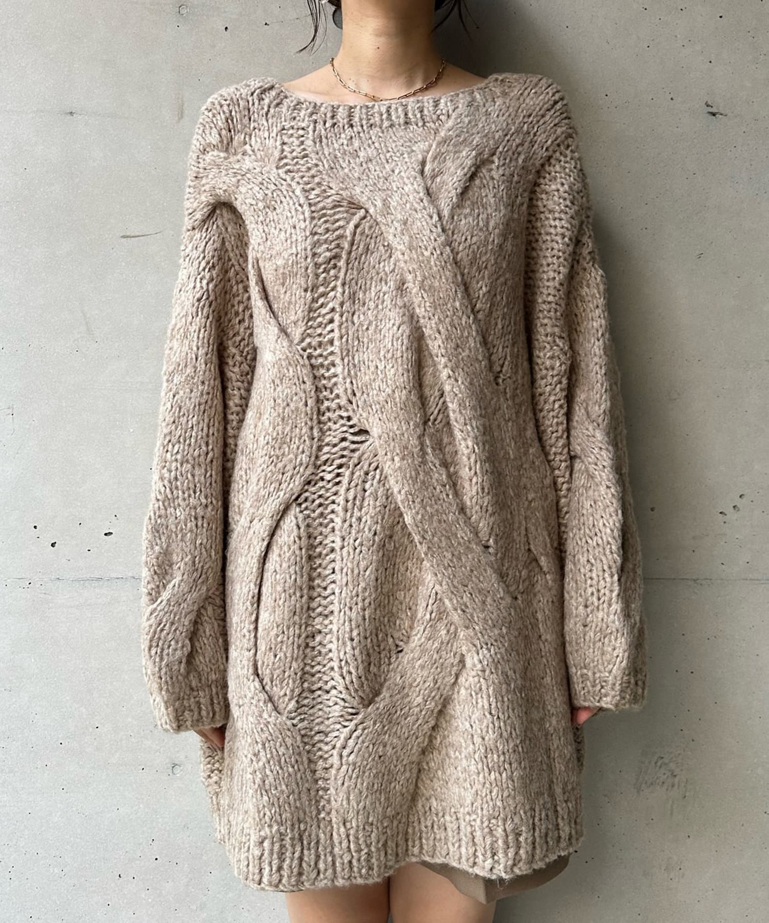 ざっくり感とボリューム感が可愛いハンドメイドのケーブルニット。