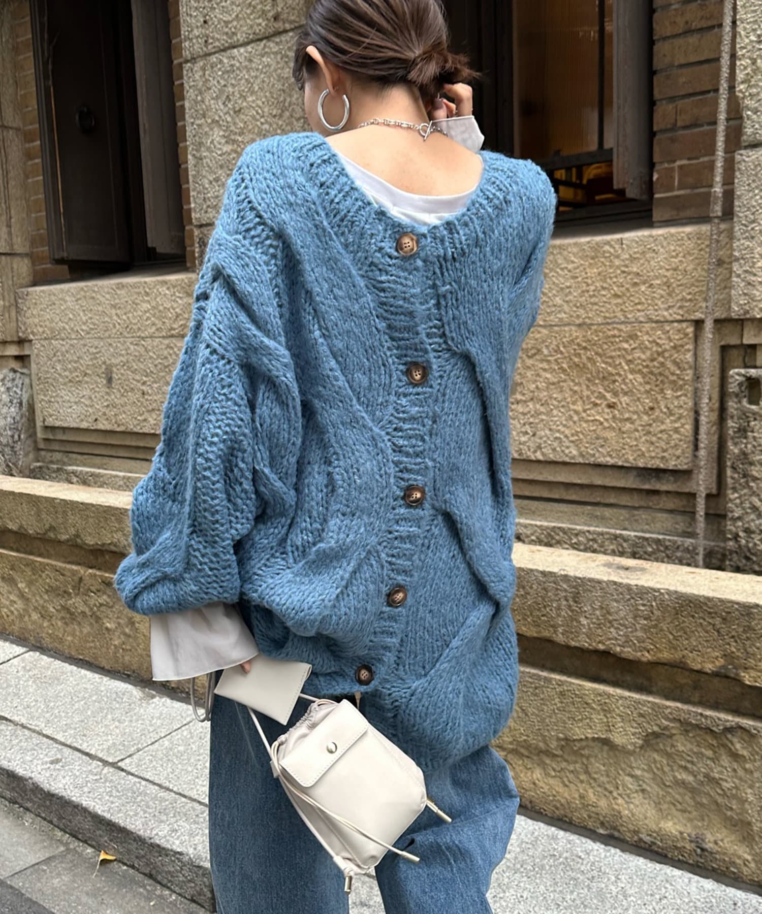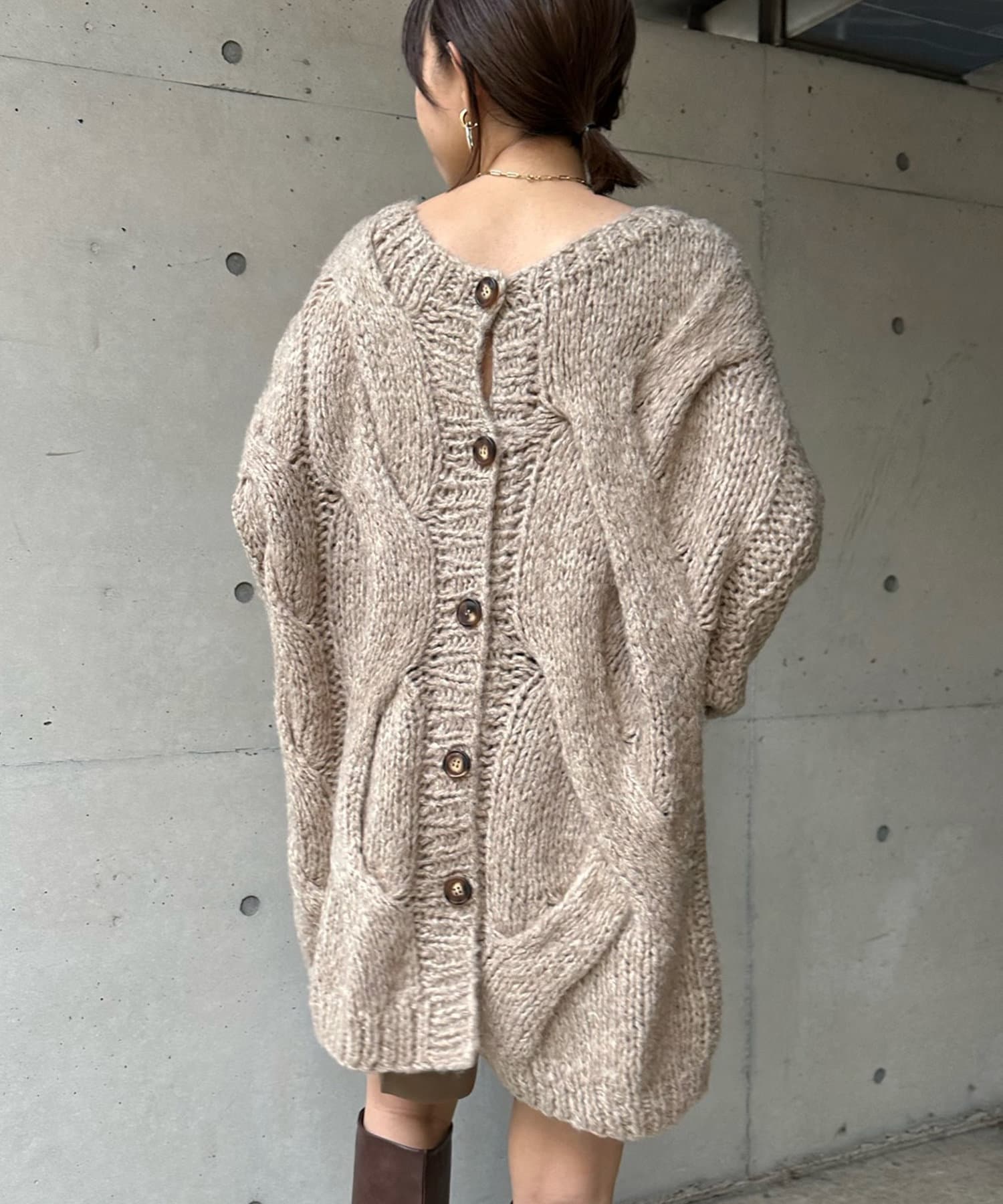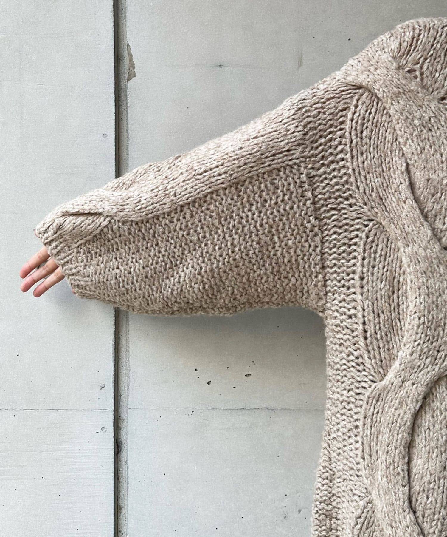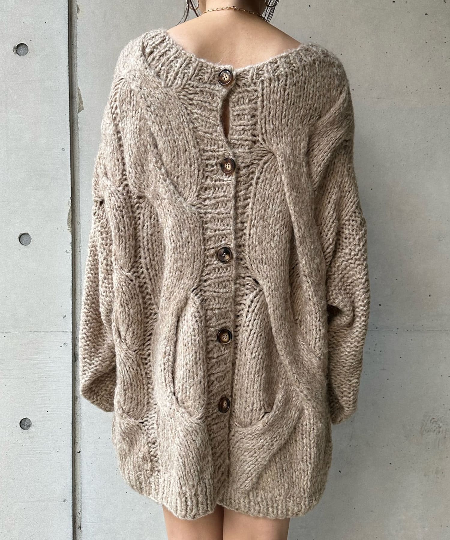 ざっくり感とボリューム感が可愛いハンドメイドのケーブルニット。
