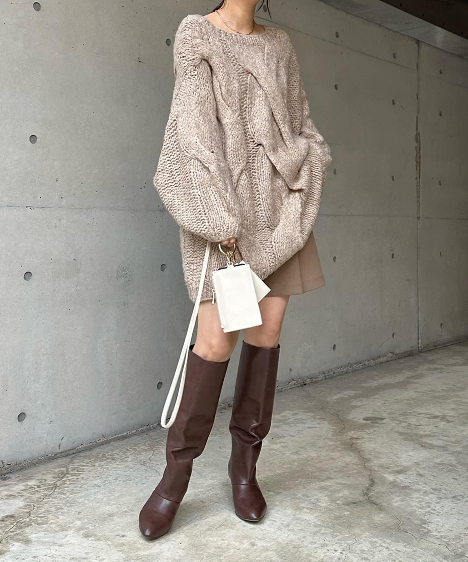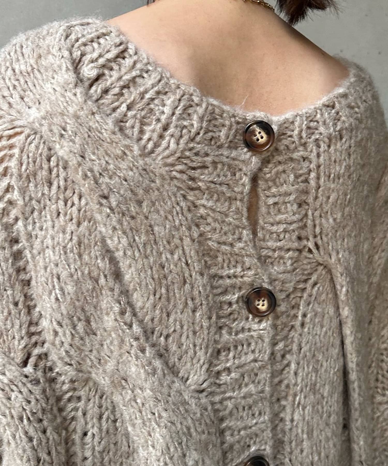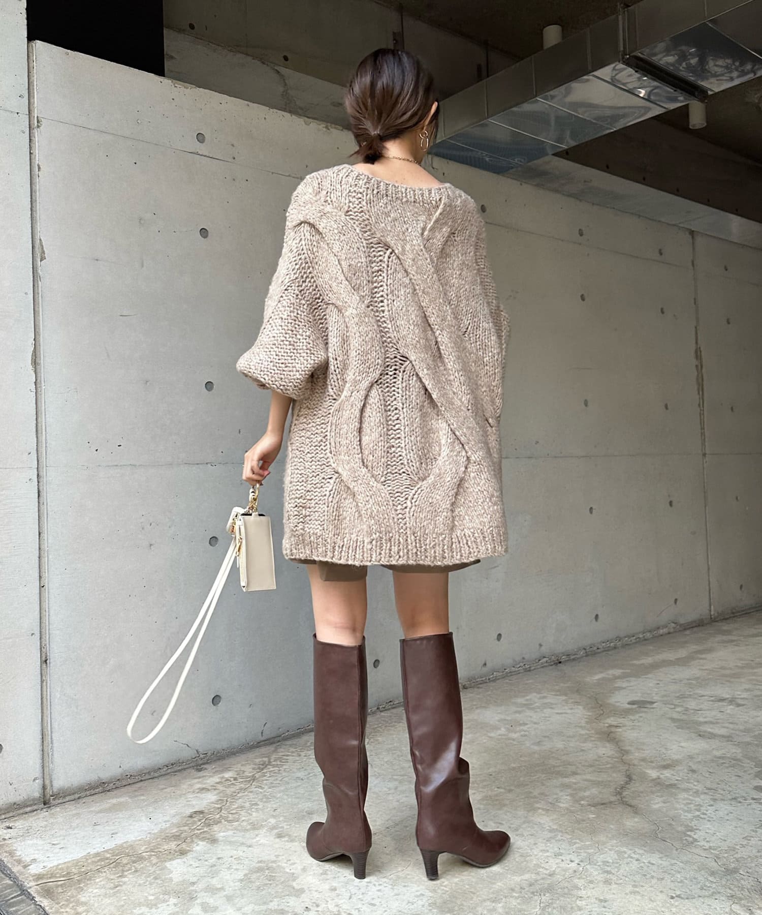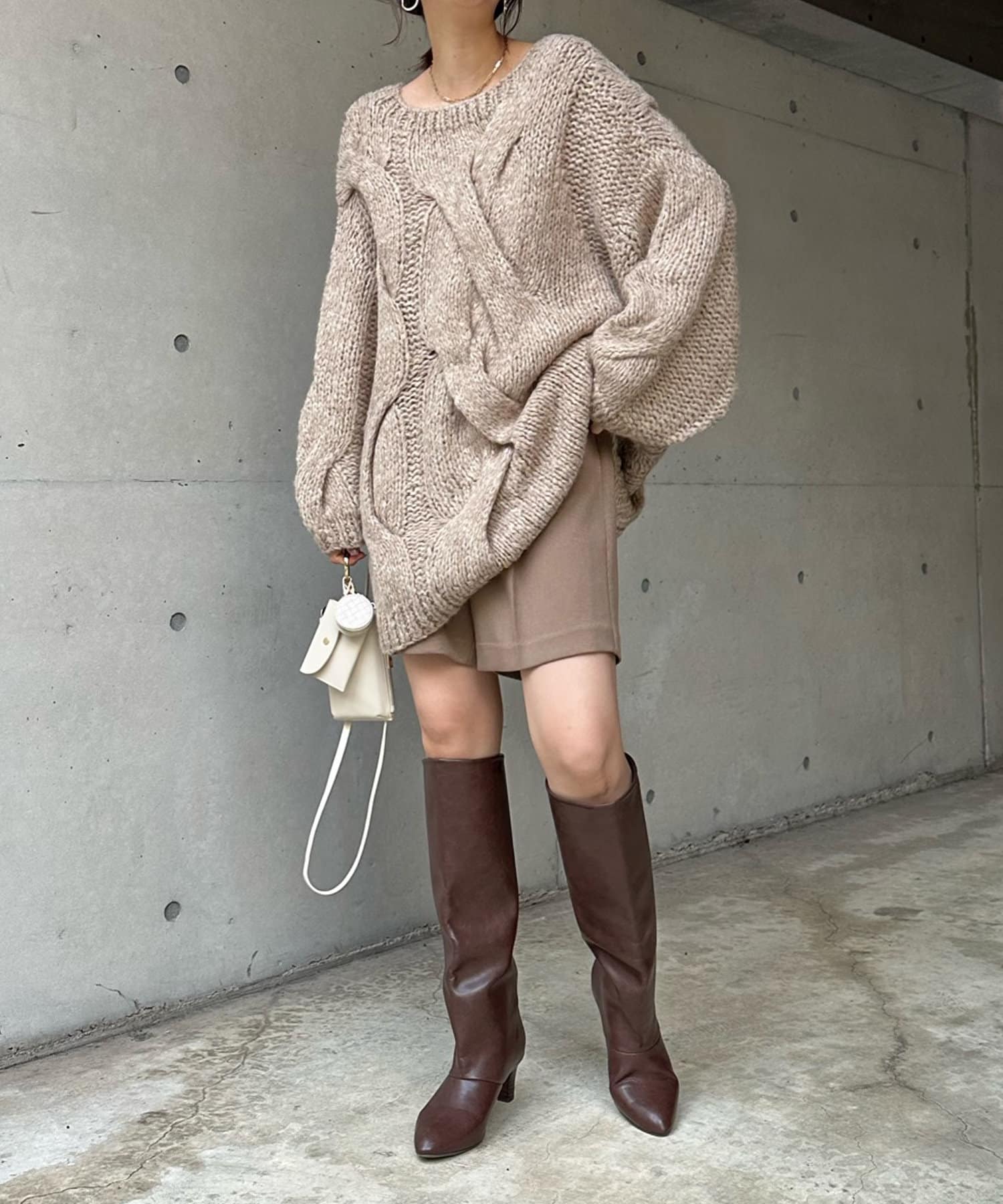 ざっくり感とボリューム感が可愛いハンドメイドのケーブルニット。