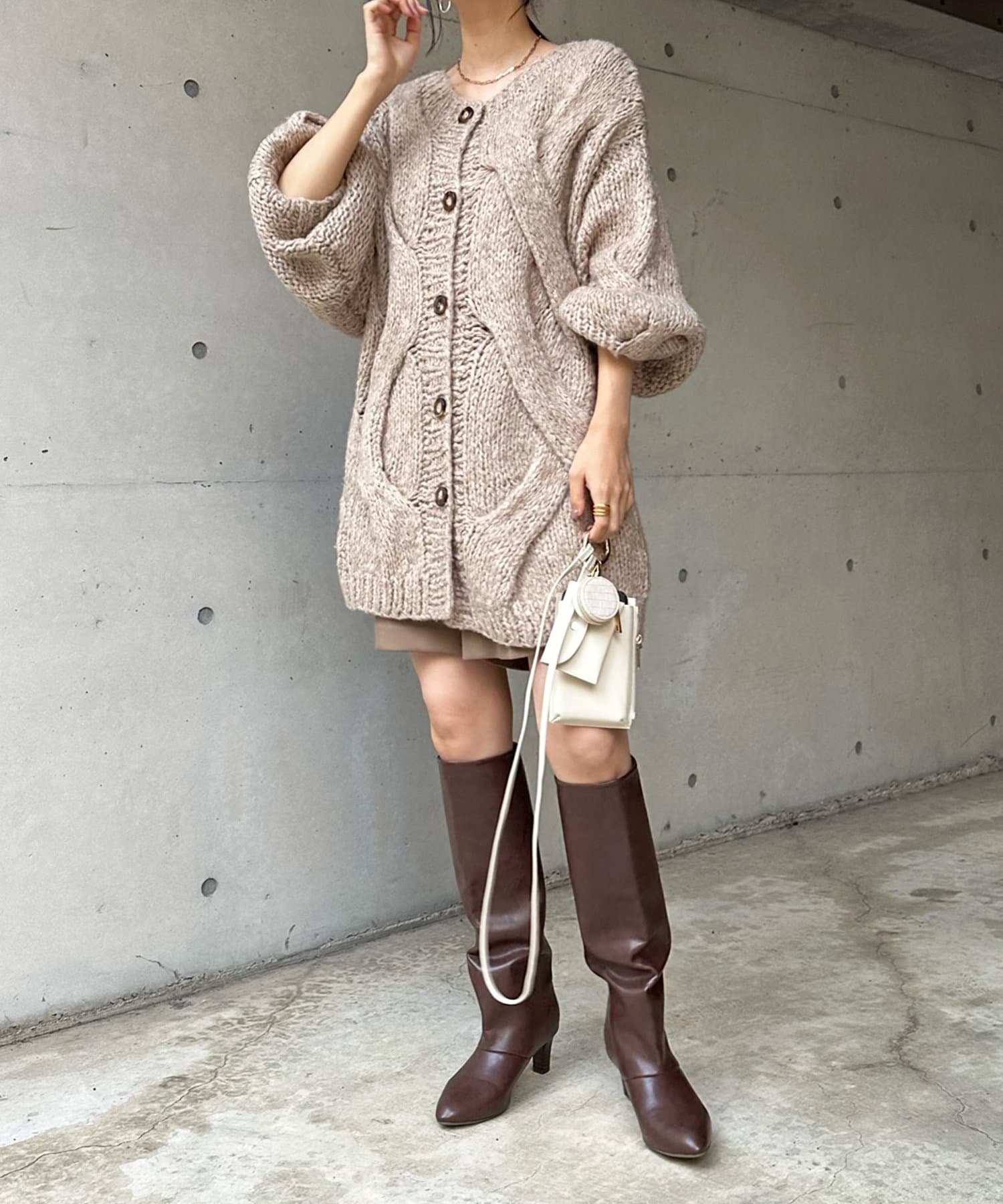 温かみのあるケーブル編みが新鮮な雰囲気を演出してくれます。