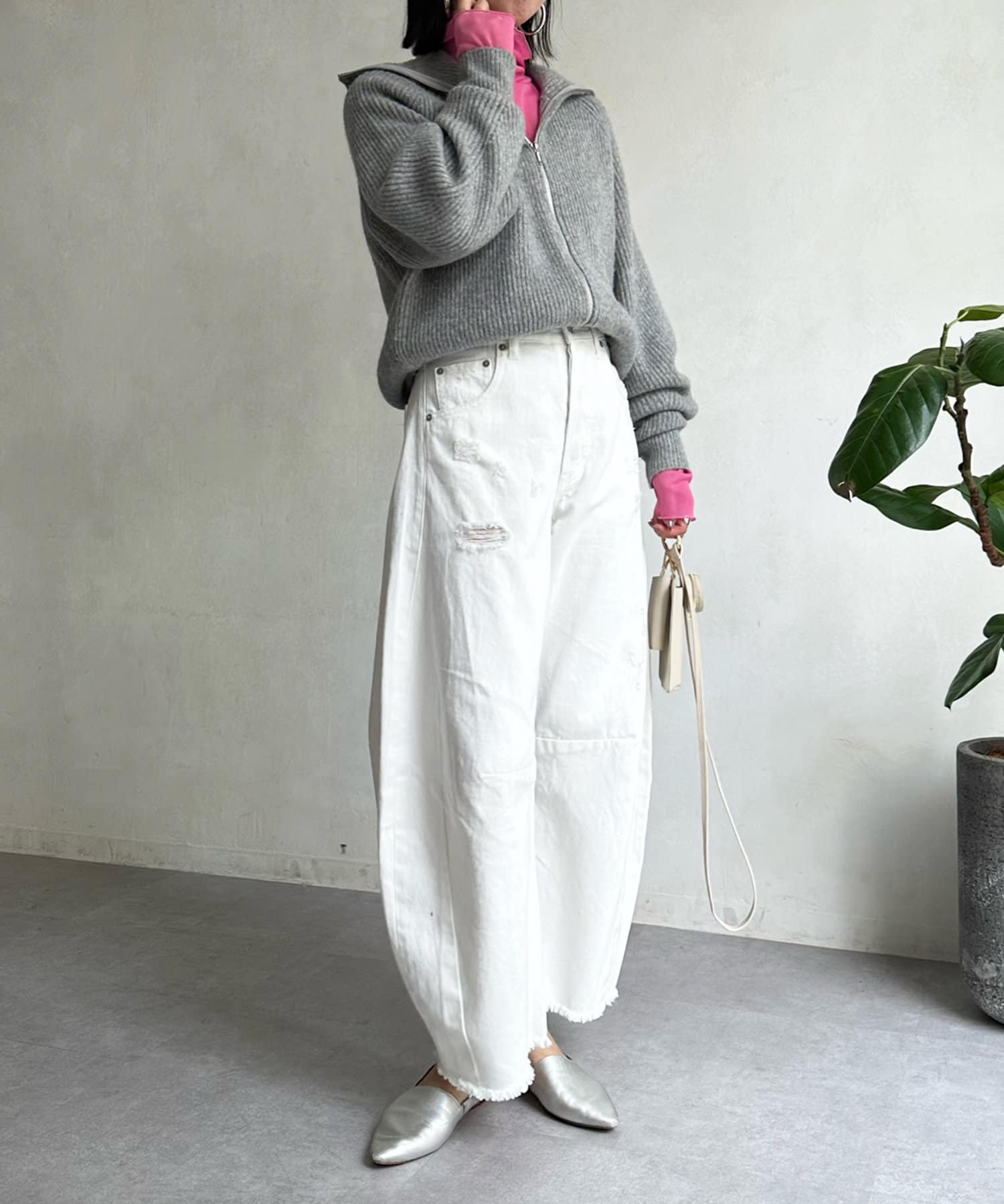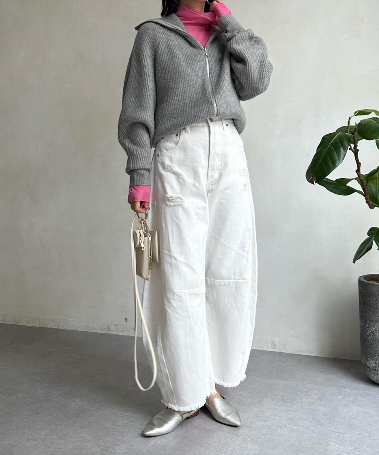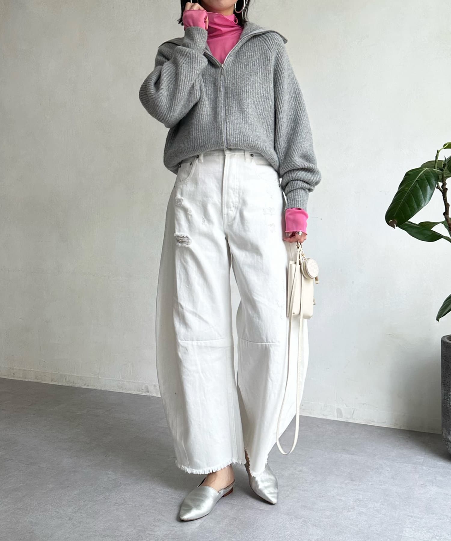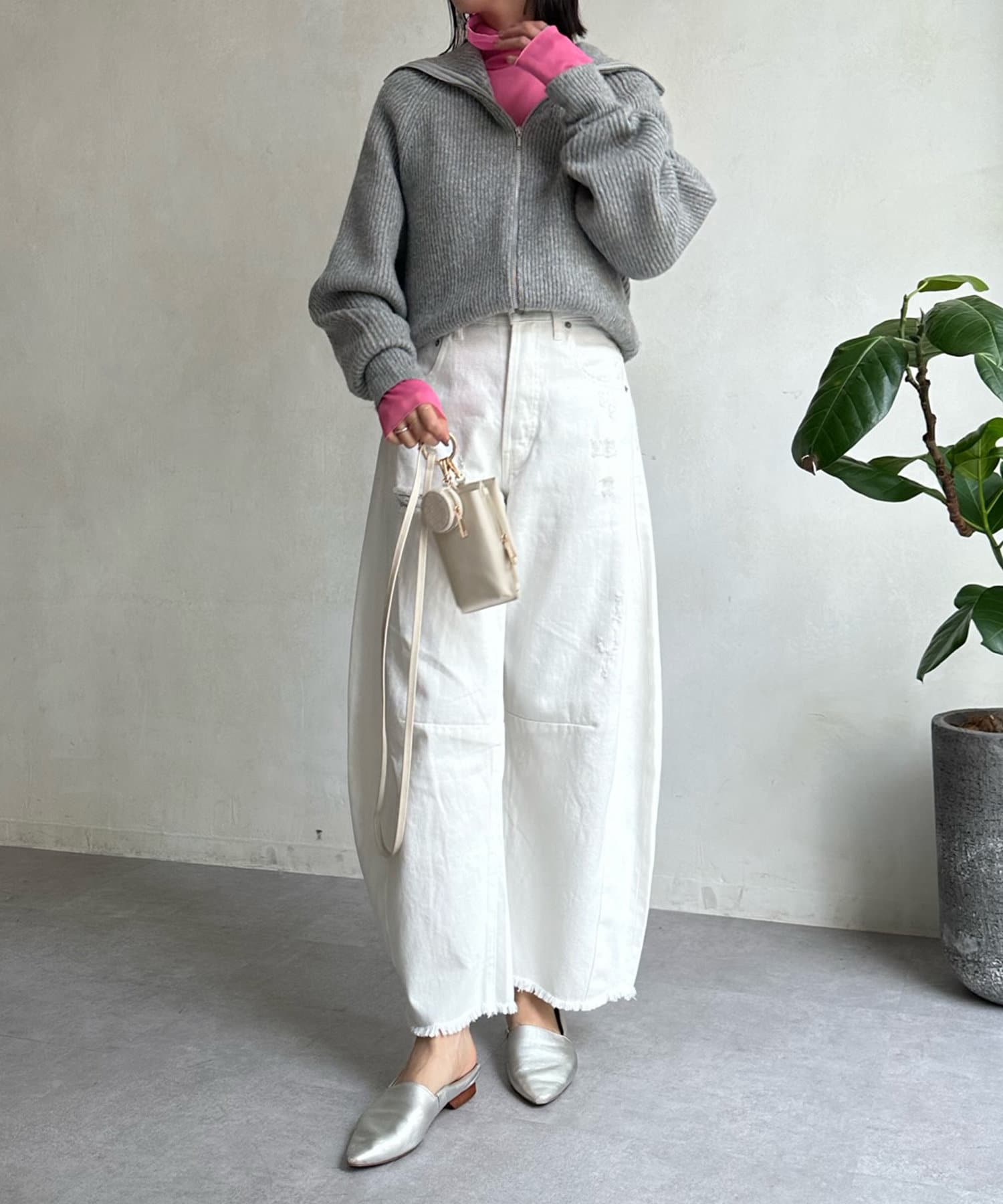 程よい抜け感のある素材がコーディネートのアクセントになってくれ、大人の抜け感をプラスします。